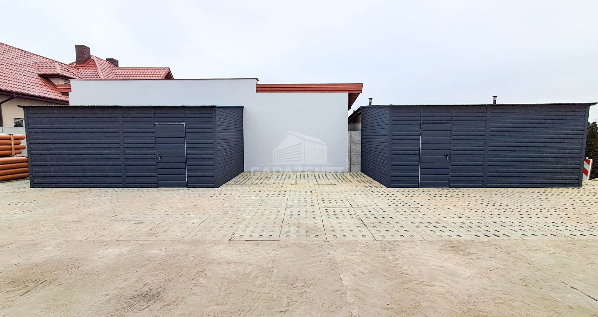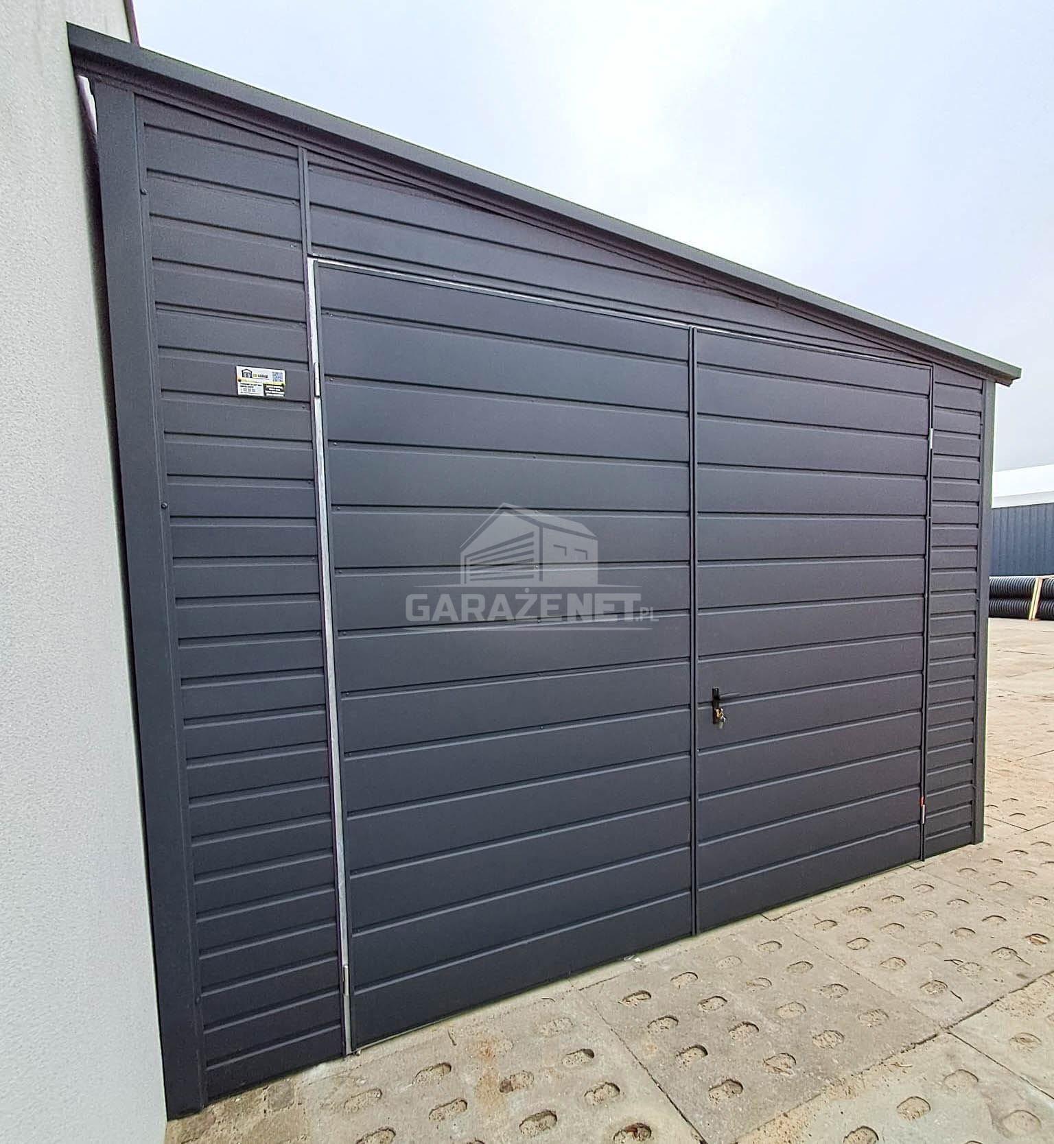 GARAŻ BLASZANY 3X7M - BRAMA DWUSKRZYDŁOWA - DRZWI - ANTRACYT - DACH SPAD W BOK TS1049