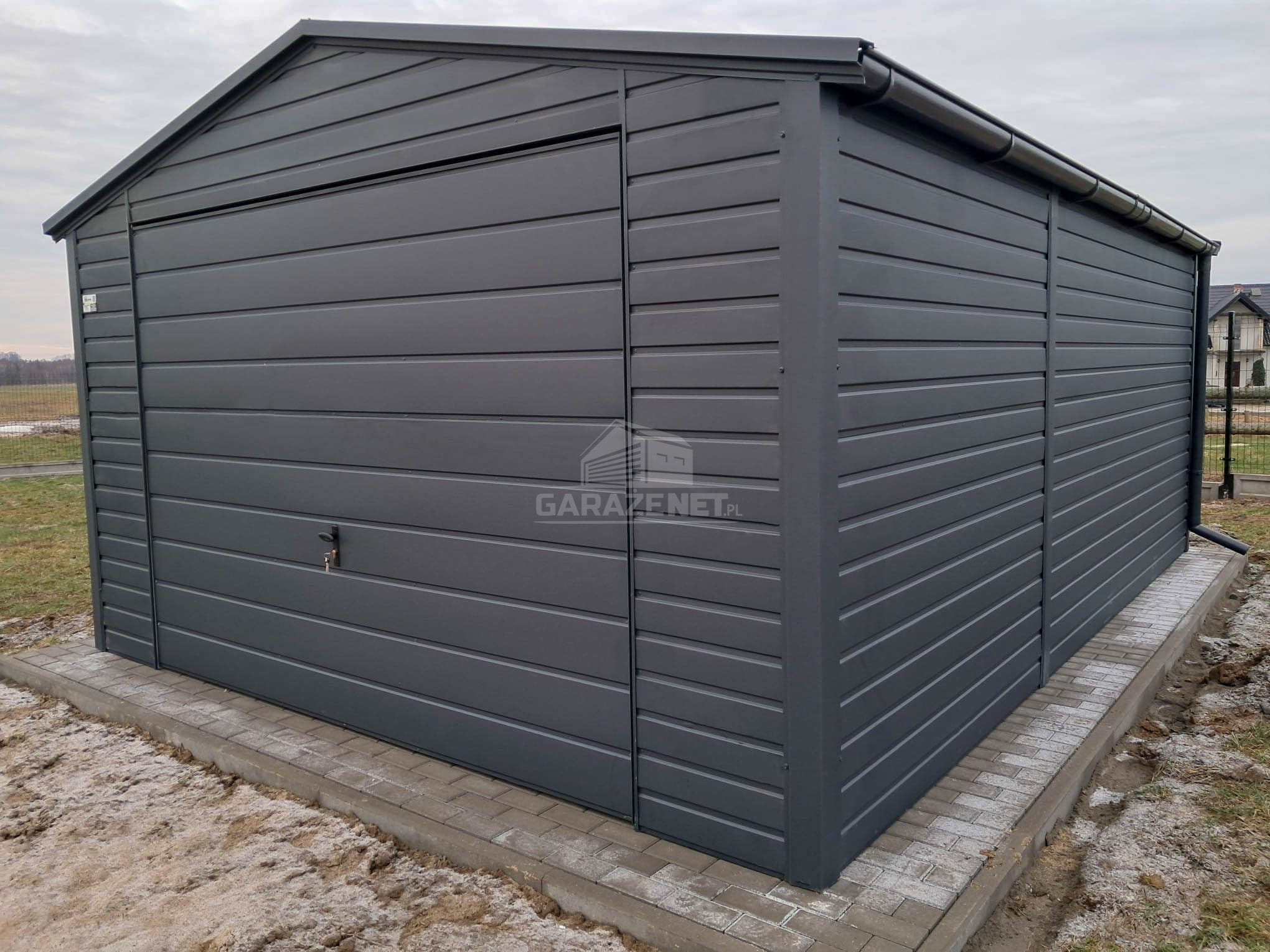 GARAŻ BLASZANY 4X7M - BRAMA UCHYLNA - OKNO - ANTRACYT - RYNNY - DACH DWUSPADOWY TS1067