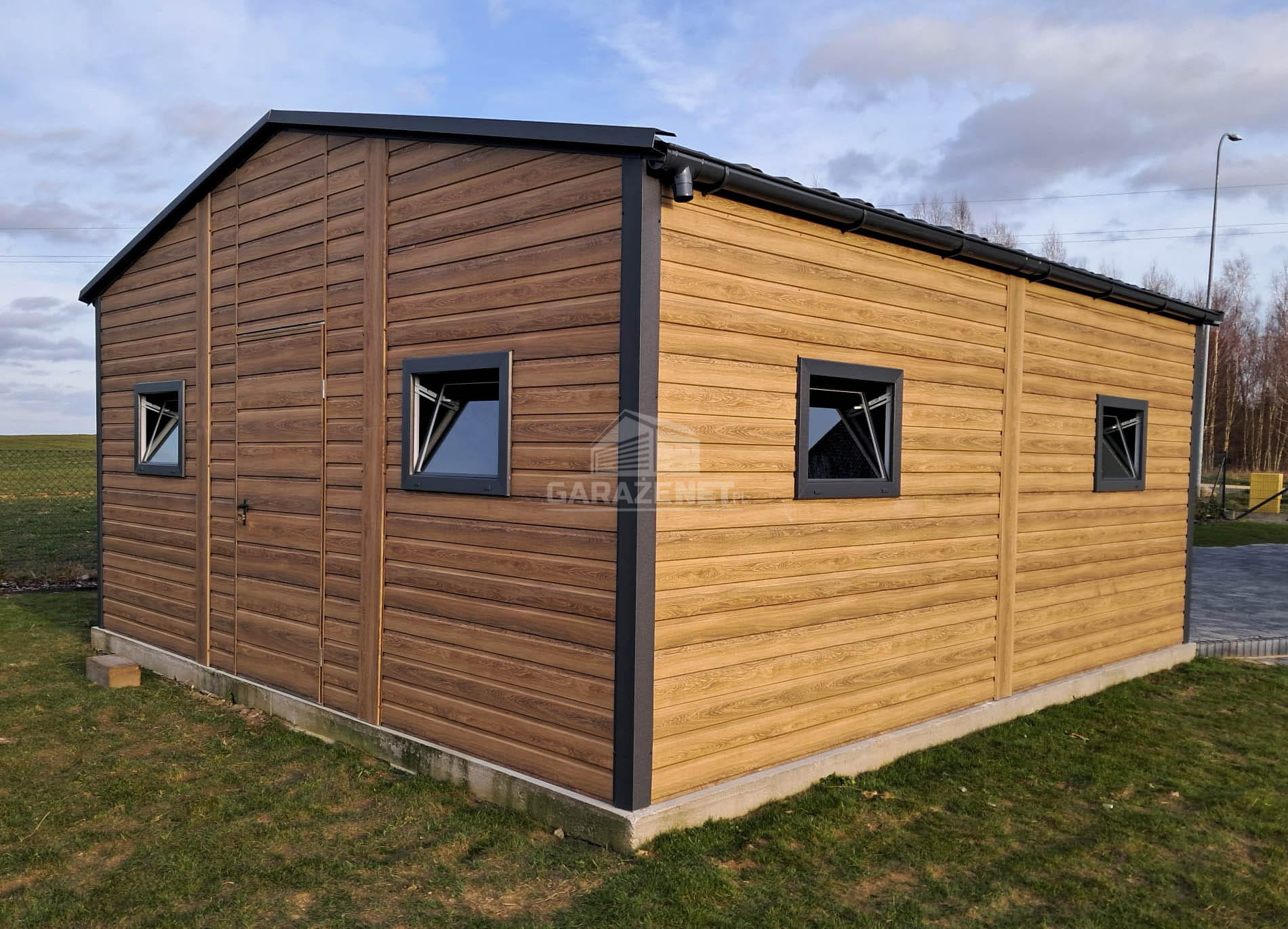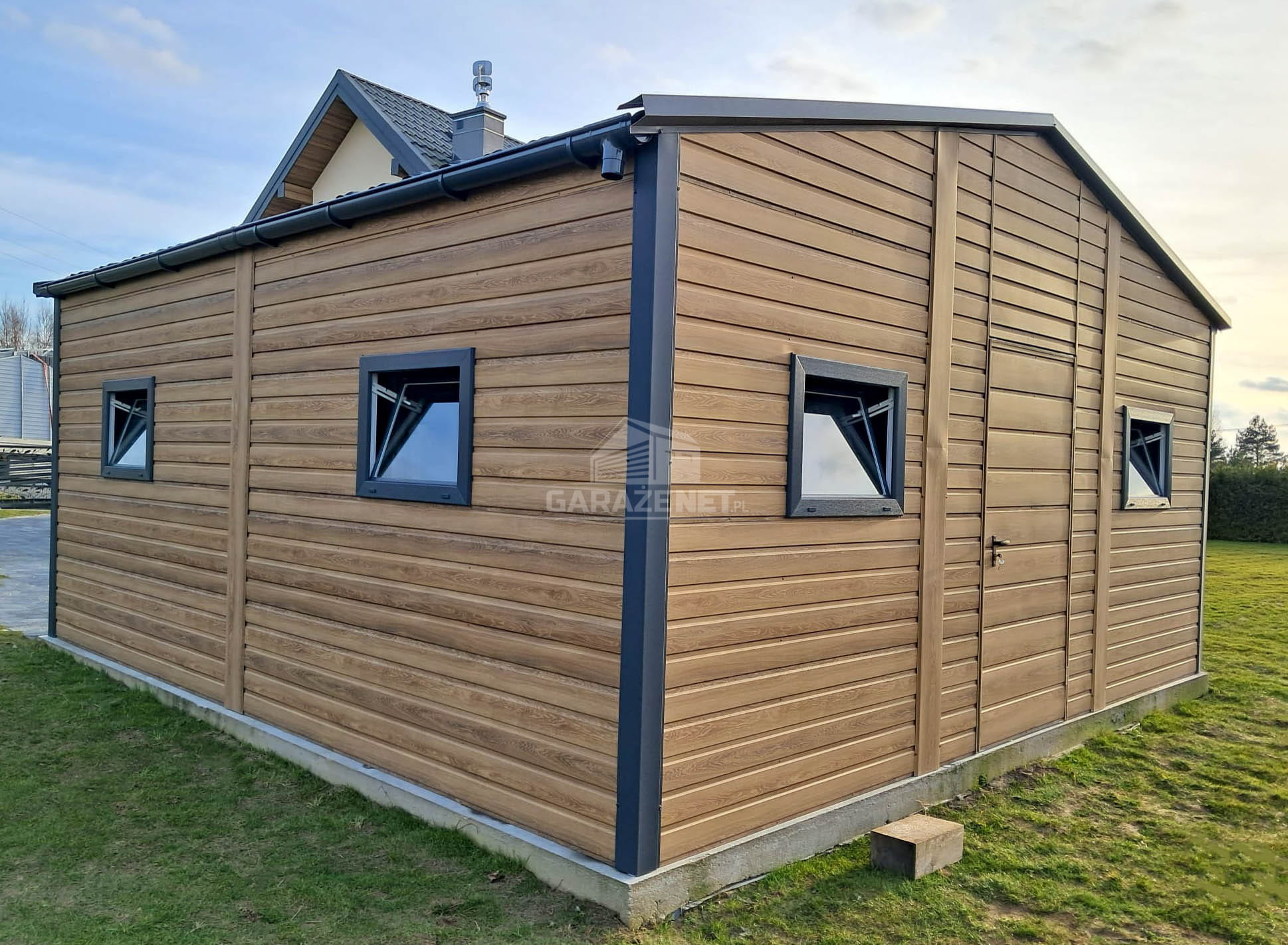 GARAŻ BLASZANY 6X5,8 - 2X BRAMA UCHYLNA - 6X OKNO PCV - 2X DRZWI - RYNNY DACHOWE - BLACHODACHÓWKA - WINCHESTER - DREWNOPODOBNY - DACH DWUSPADOWY TS1066