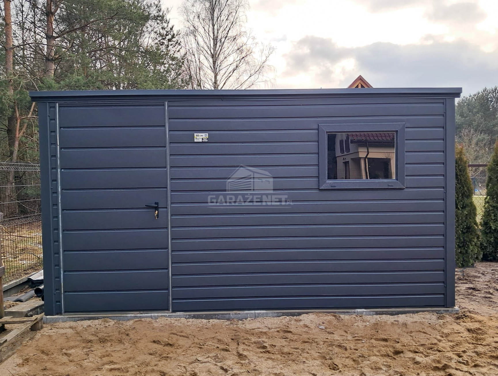 SCHOWEK - DOMEK OGRODOWY 3,5X2,5M - DRZWI - OKNO - ANTYRACYT - DACH SPAD W TYŁ TS1053