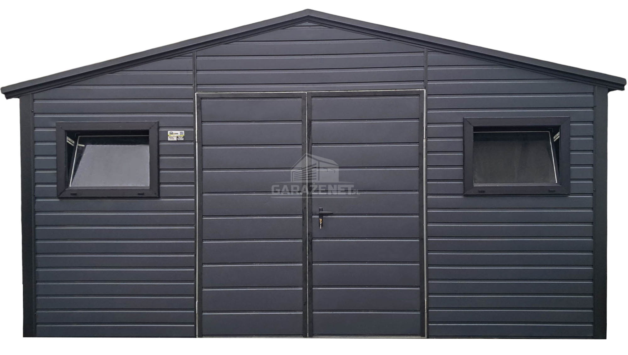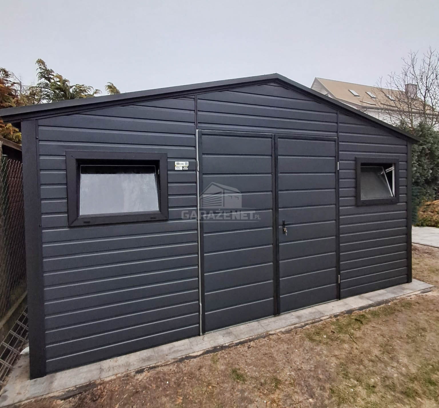 SCHOWEK - DOMEK OGRODOWY 4,5X3M - BRAMA DWUSKRZYDŁOWA - 2X OKNO - ANTRACYT - CZARNY - DACH DWUSPADOWY TS1058