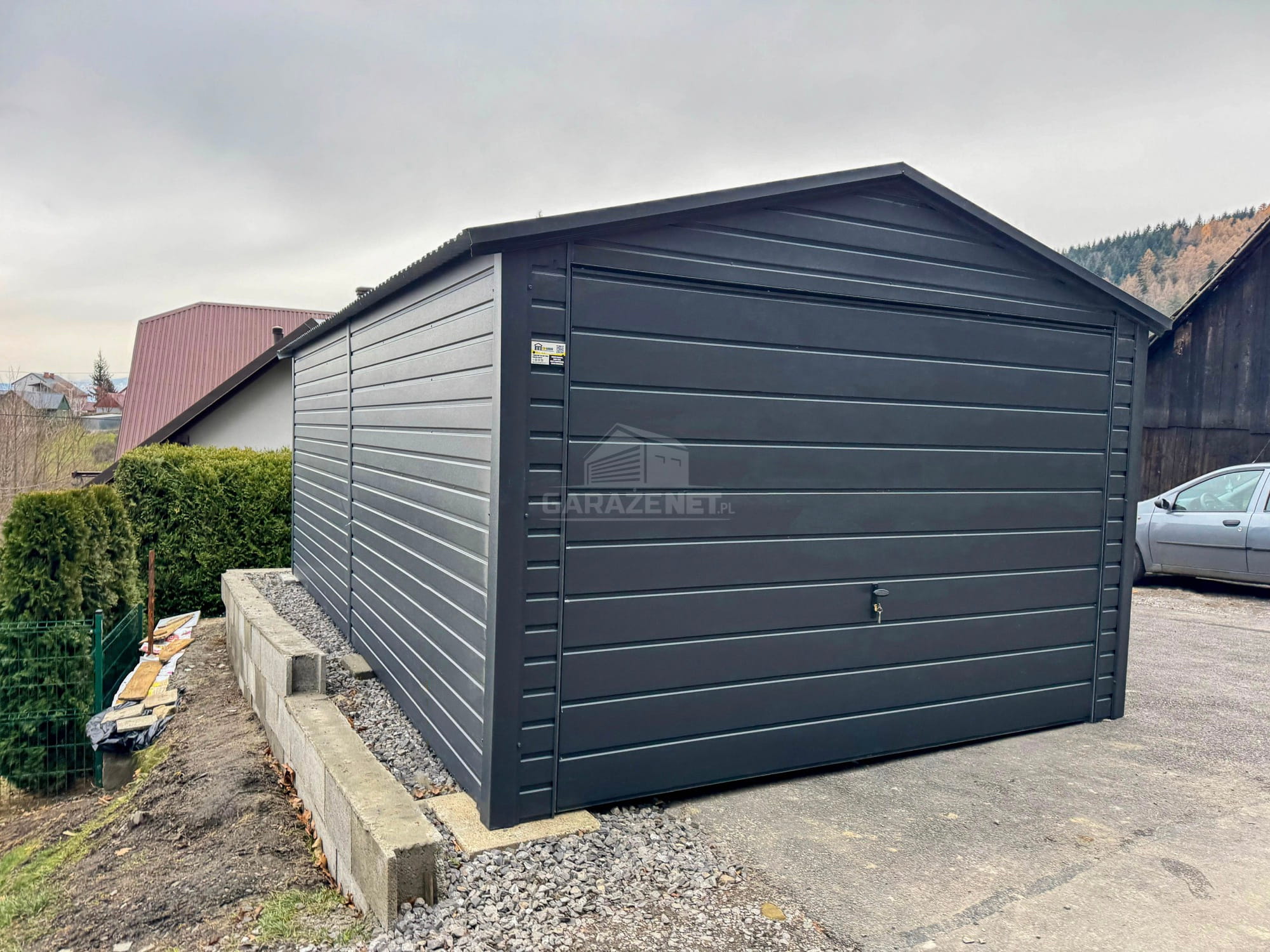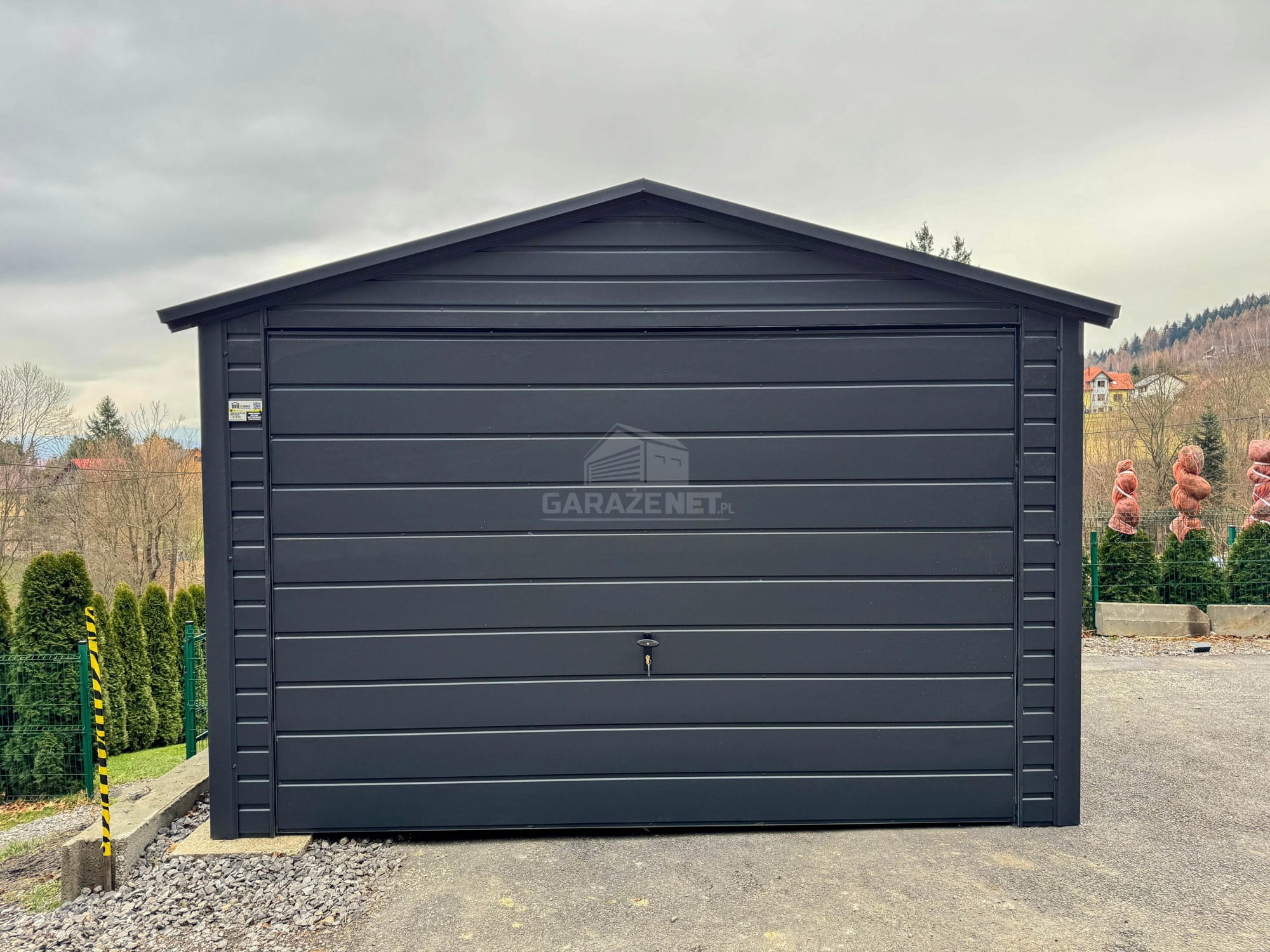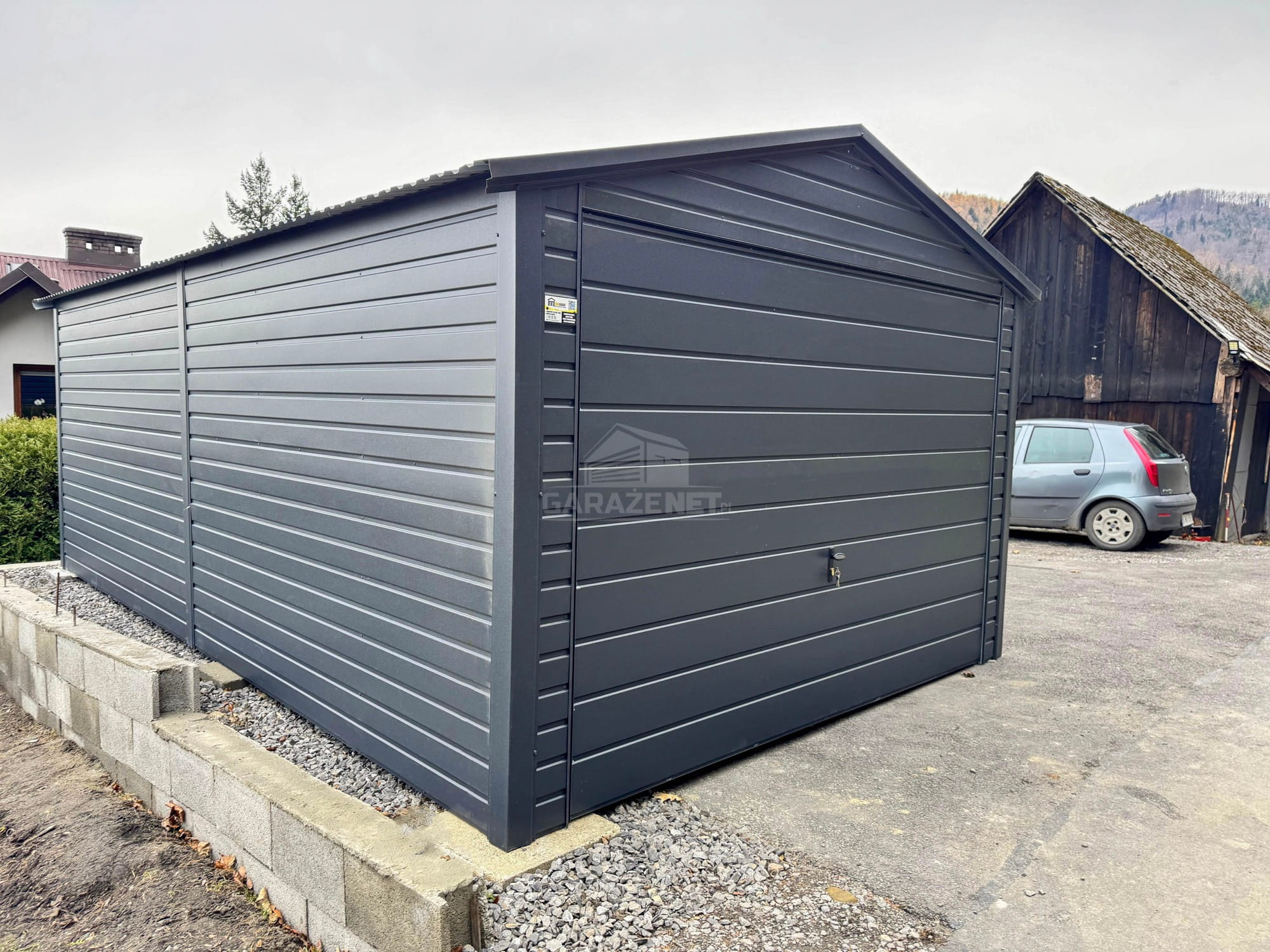 GARAŻ BLASZANY 3,5X6M - BRAMA UCHYLNA - ANTRACYT - DACH DWUSPADOWY TS973