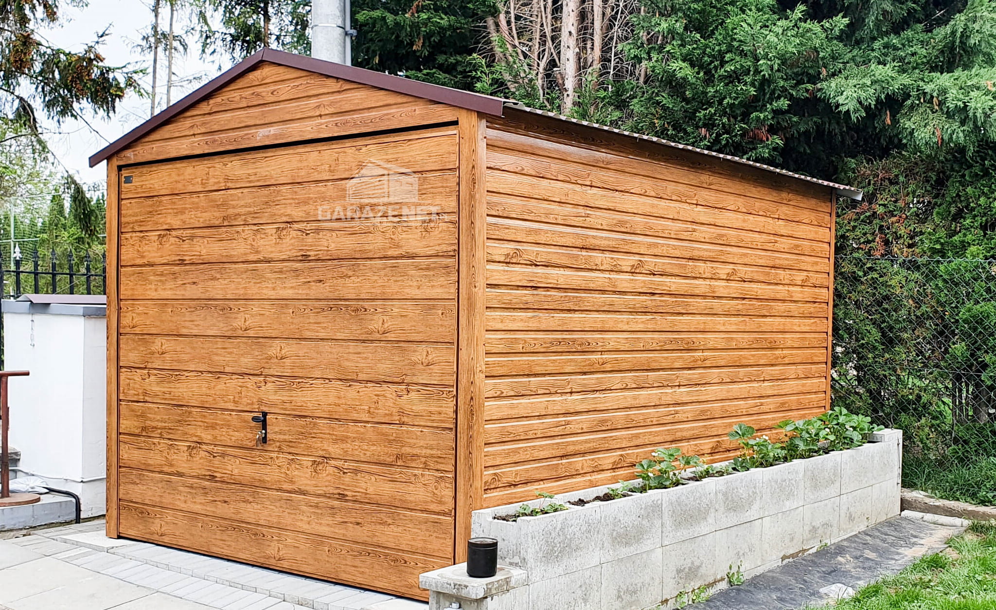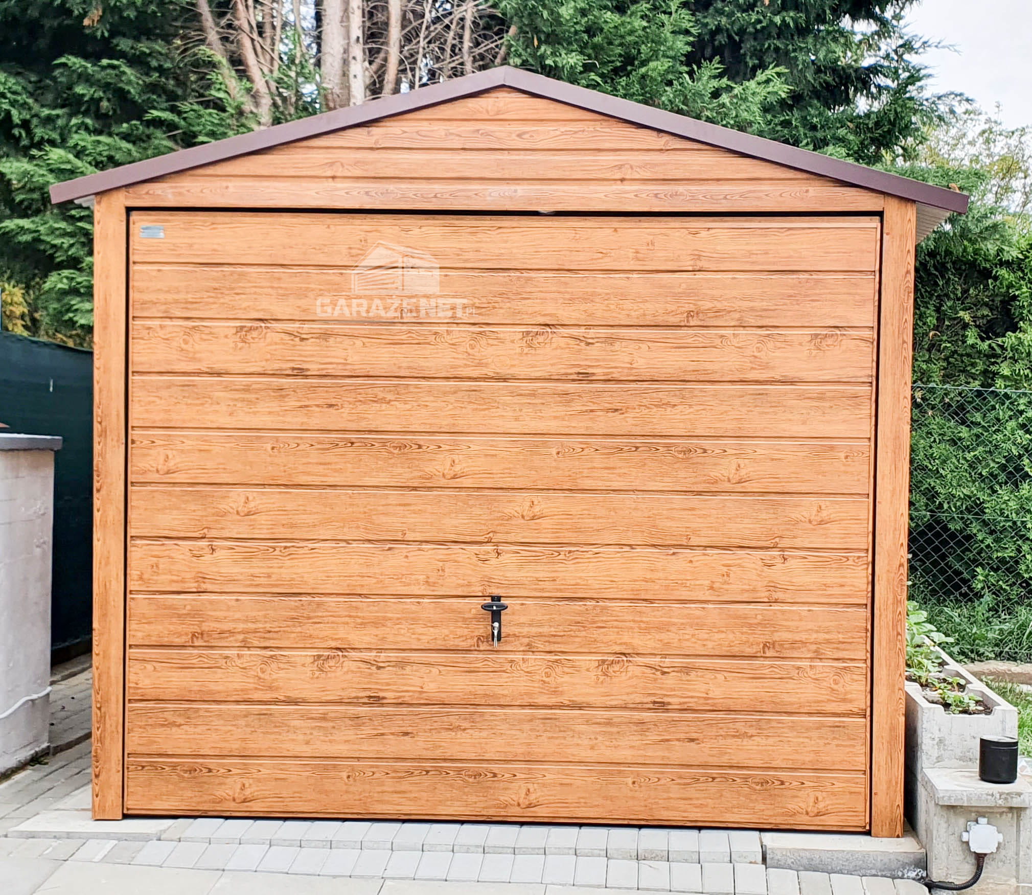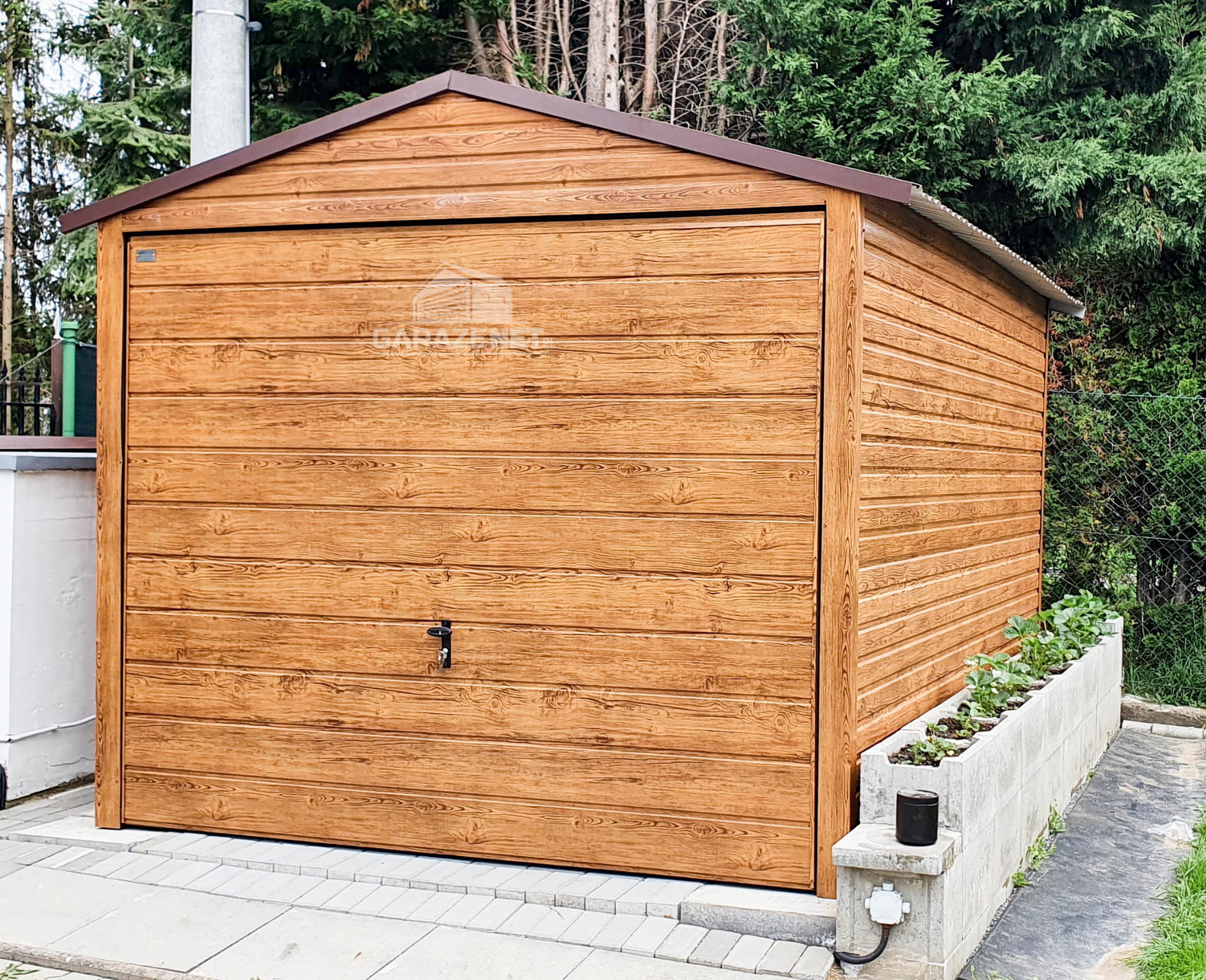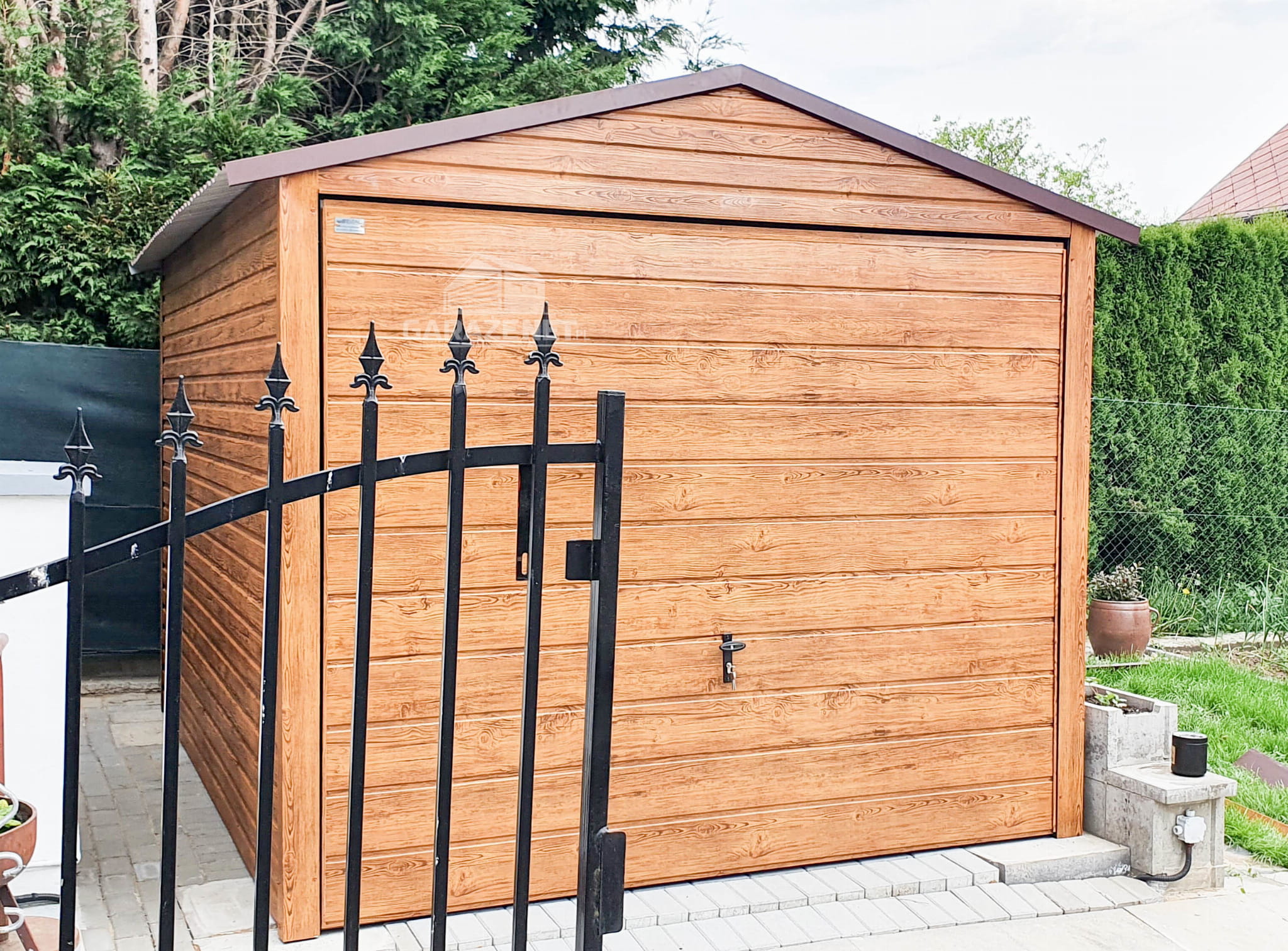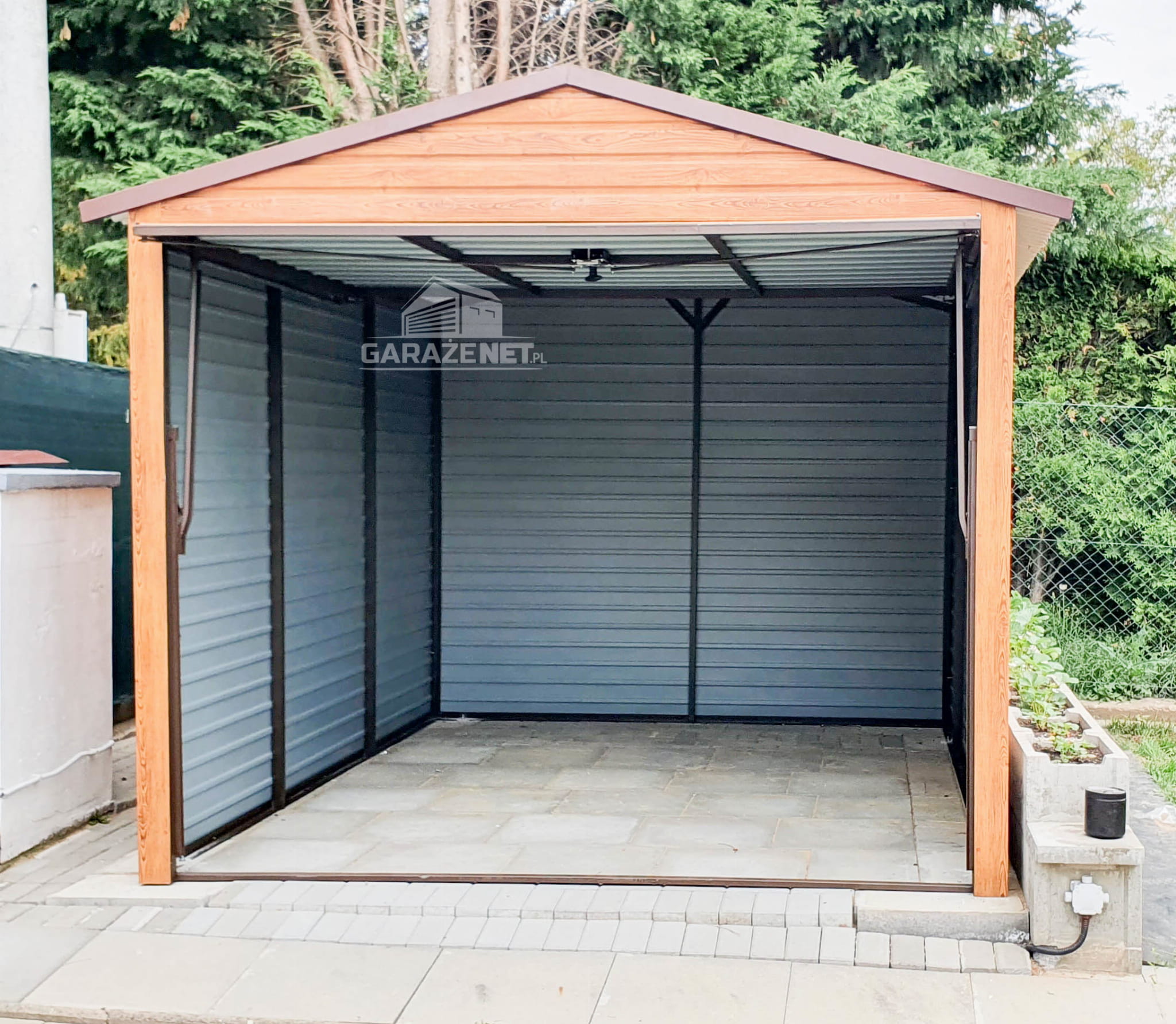 GARAŻ BLASZANY 3M X 6M POZIOM - DWUSPAD BRAMA UCHYLNA - DREWNOPODOBNY 3X6 GB212