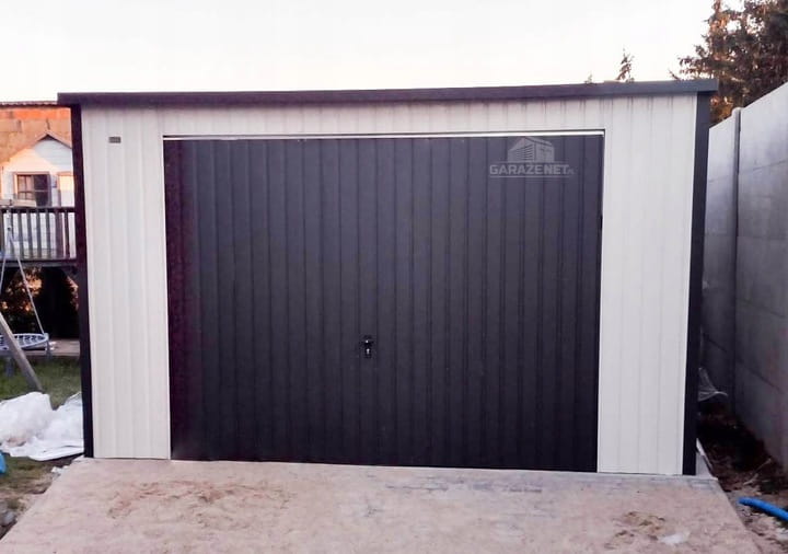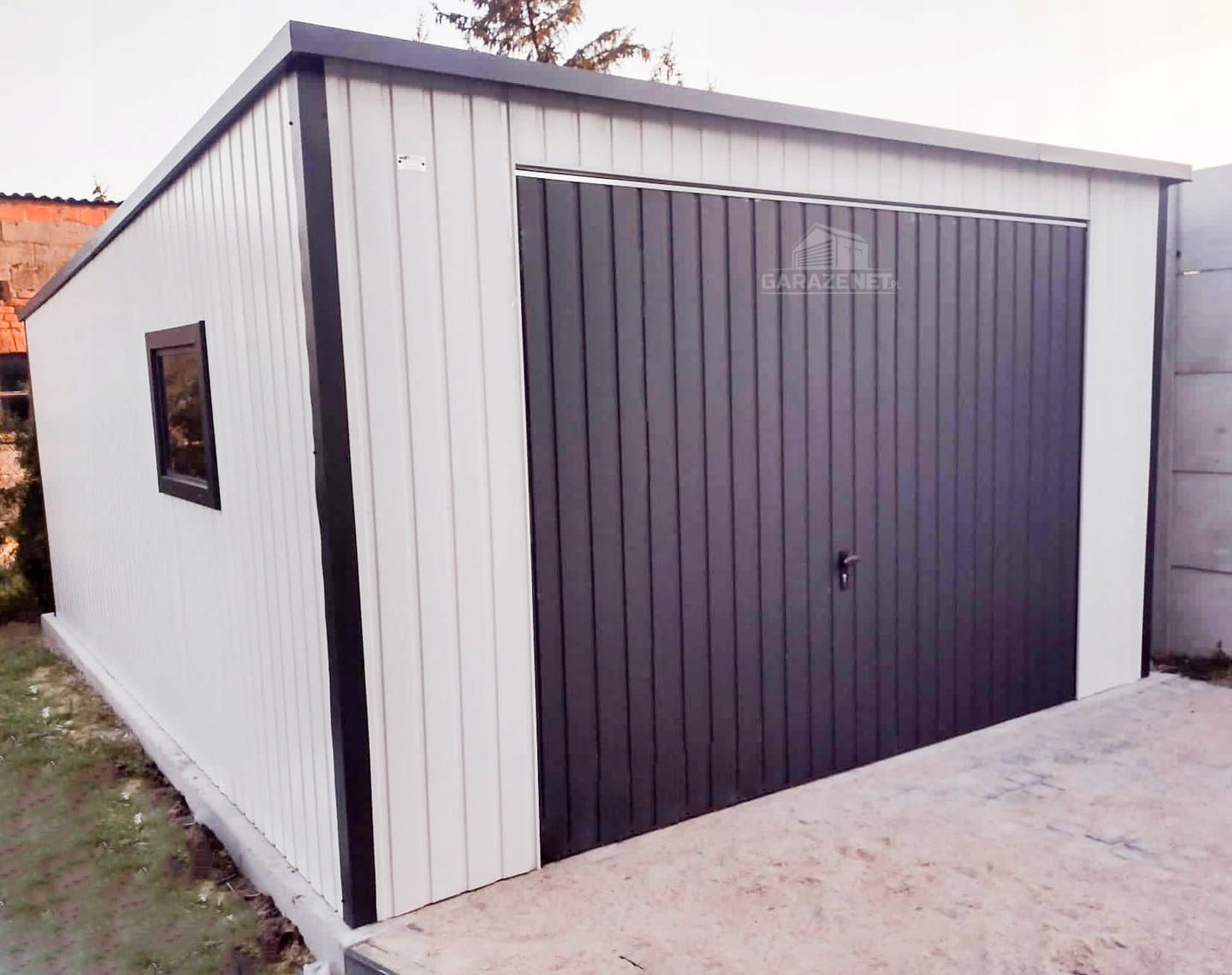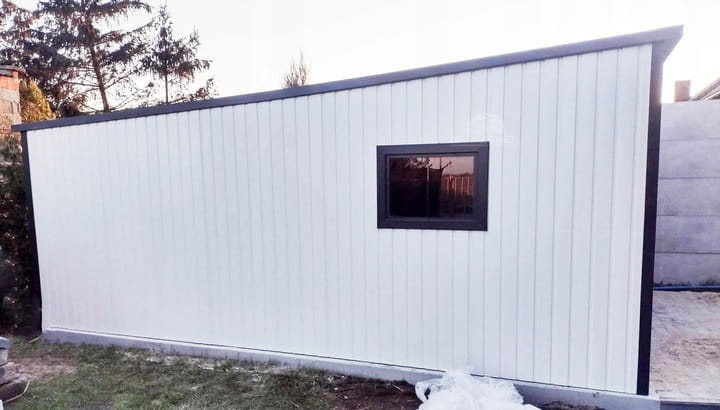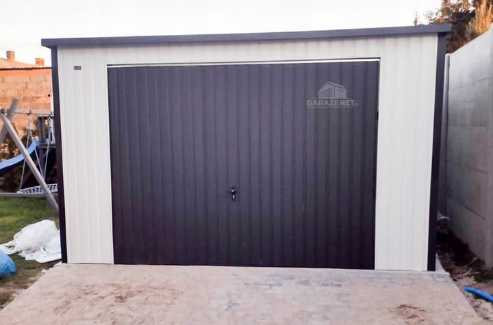 GARAŻ BLASZANY 4M X 5M PION - SPAD TYŁ - BRAMA UCHYLNA + OKNO - BIAŁY + ANTRACYT GB283