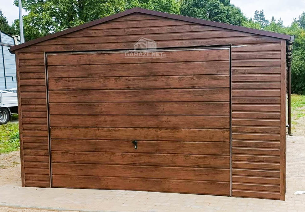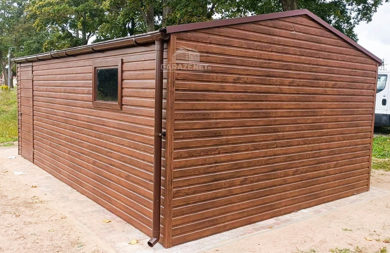 GARAŻ BLASZANY 4M X 6M - DREWNOPODOBNY BRAMA UCHYLNA - DODATKOWE DRZWI + OKNO PCV 4X6 GB194