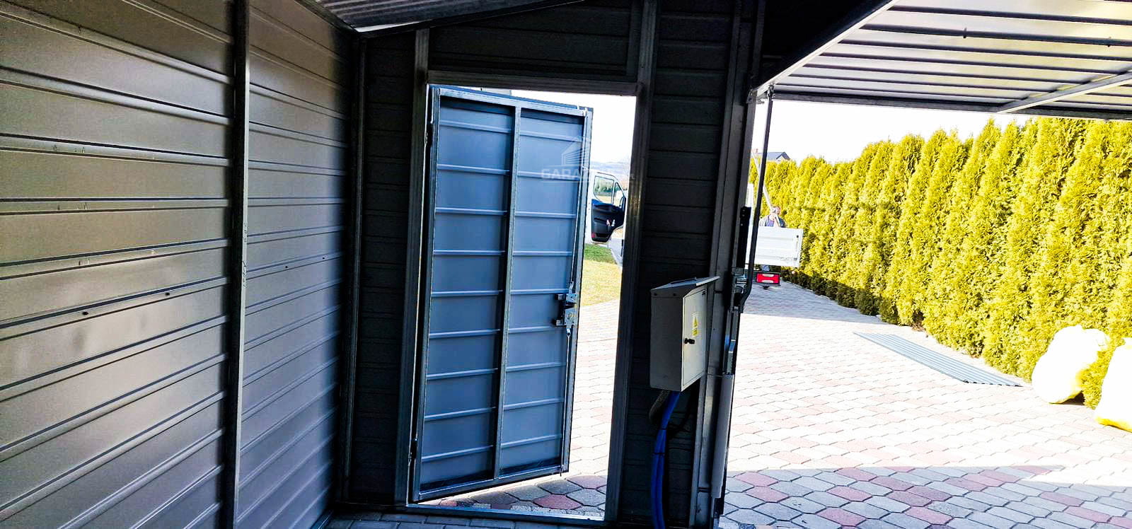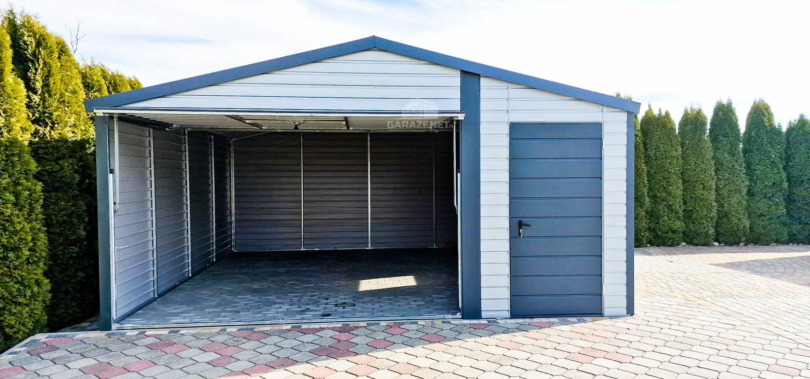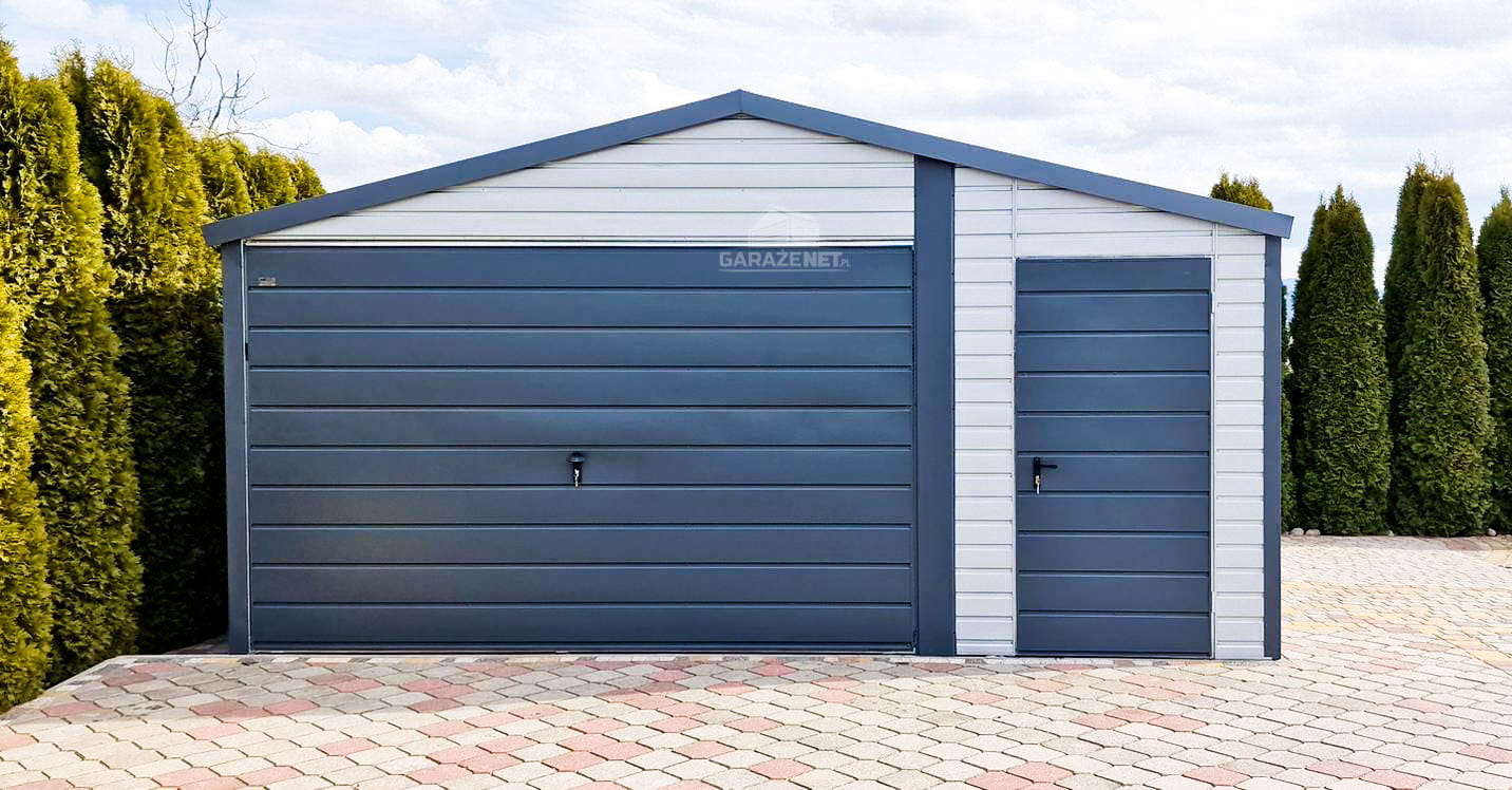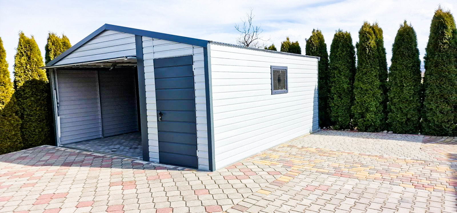 GARAŻ BLASZANY 5M X 6M POZIOM - BRAMA + DRZWI + OKNO - ANTRACYT + BIAŁY 5X6 GB289