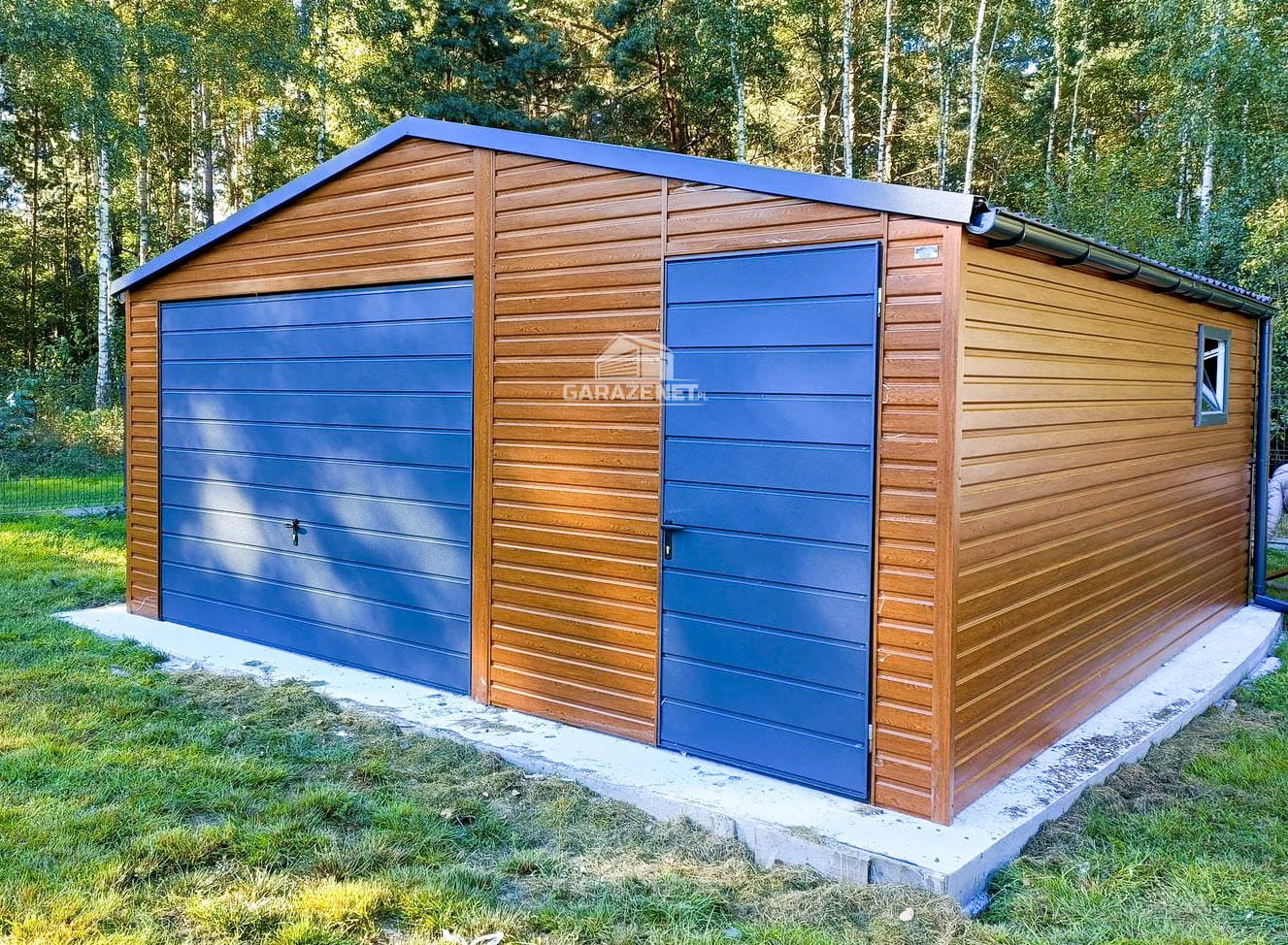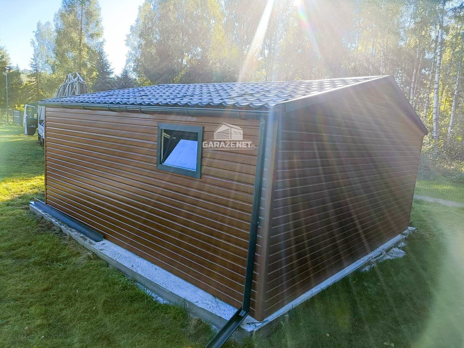 GARAŻ BLASZANY 5M X 6M POZIOM - DWUSPAD - BRAMA + DRZWI + OKNO - BLACHODACHÓWKA - DREWNOPODOBNY + ANTRACYT 5X6 GB290