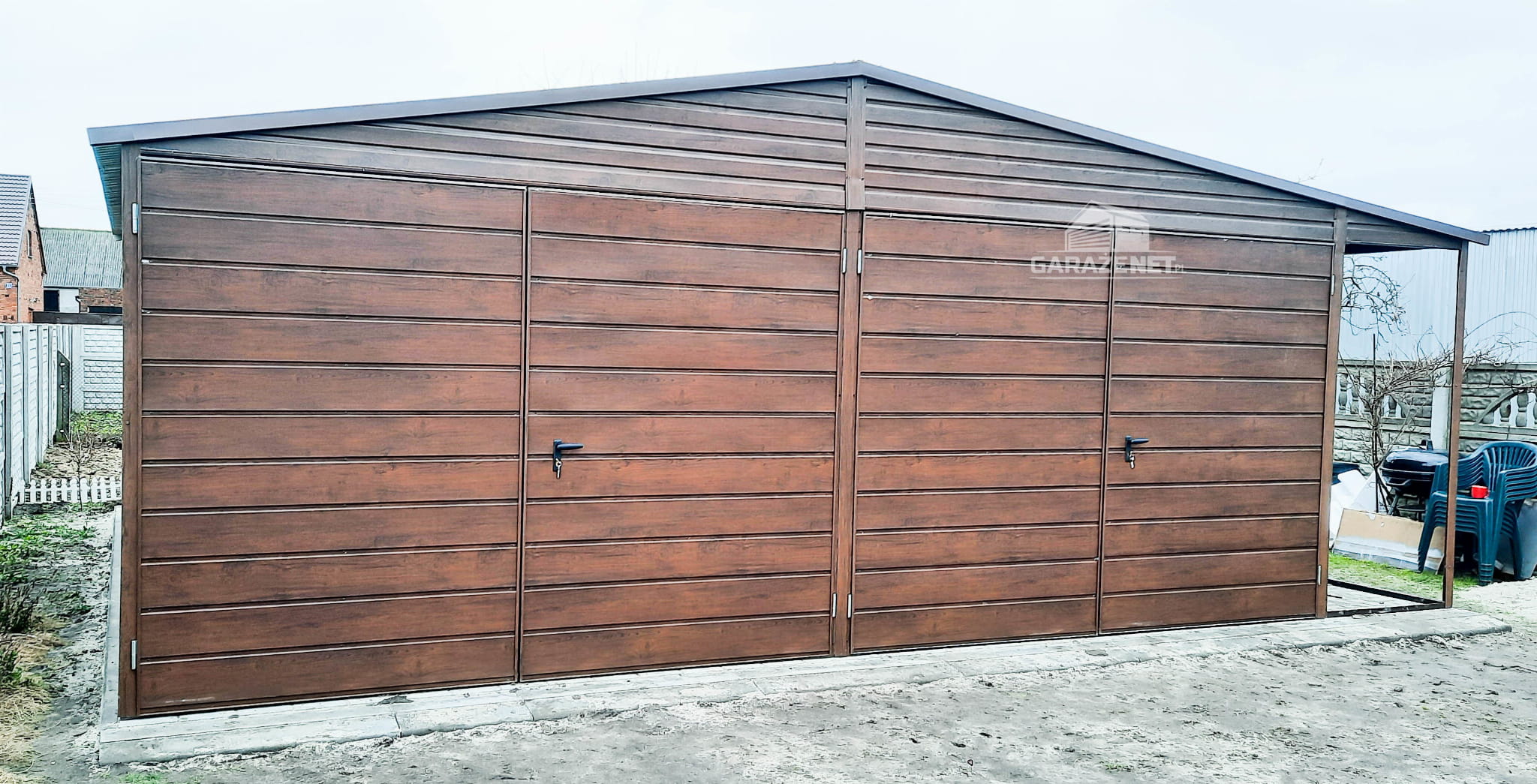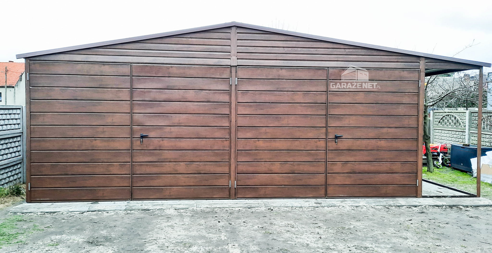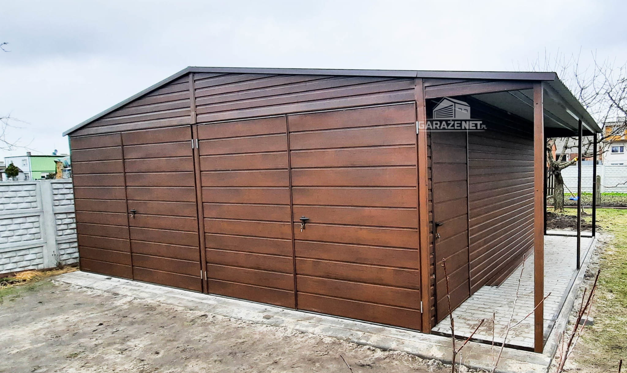 GARAŻ BLASZANY 6M X 5,8M POZIOM + WIATA - DWUSPAD - 2X BRAMA + DRZWI - DREWNOPODOBNY 6X5,8 GB252