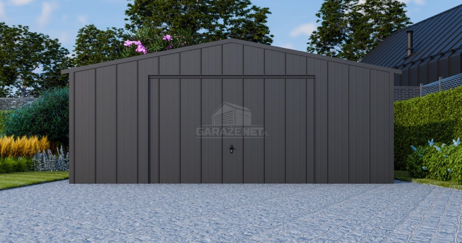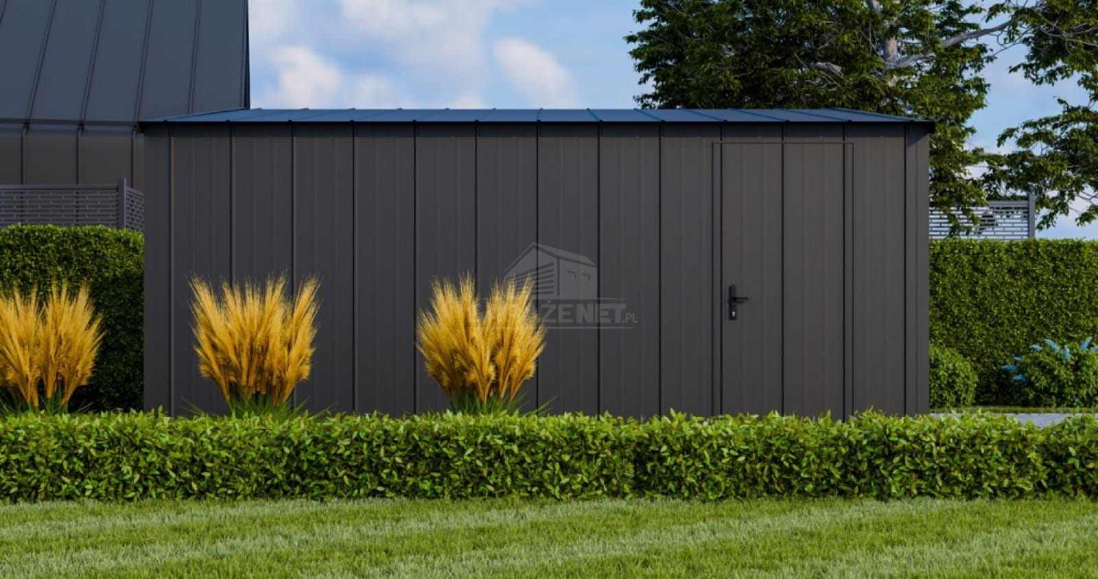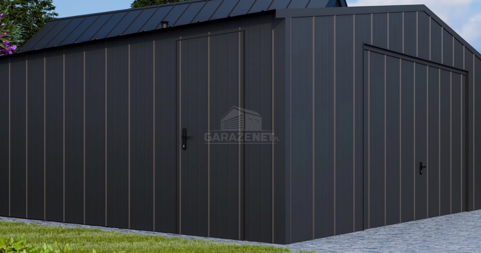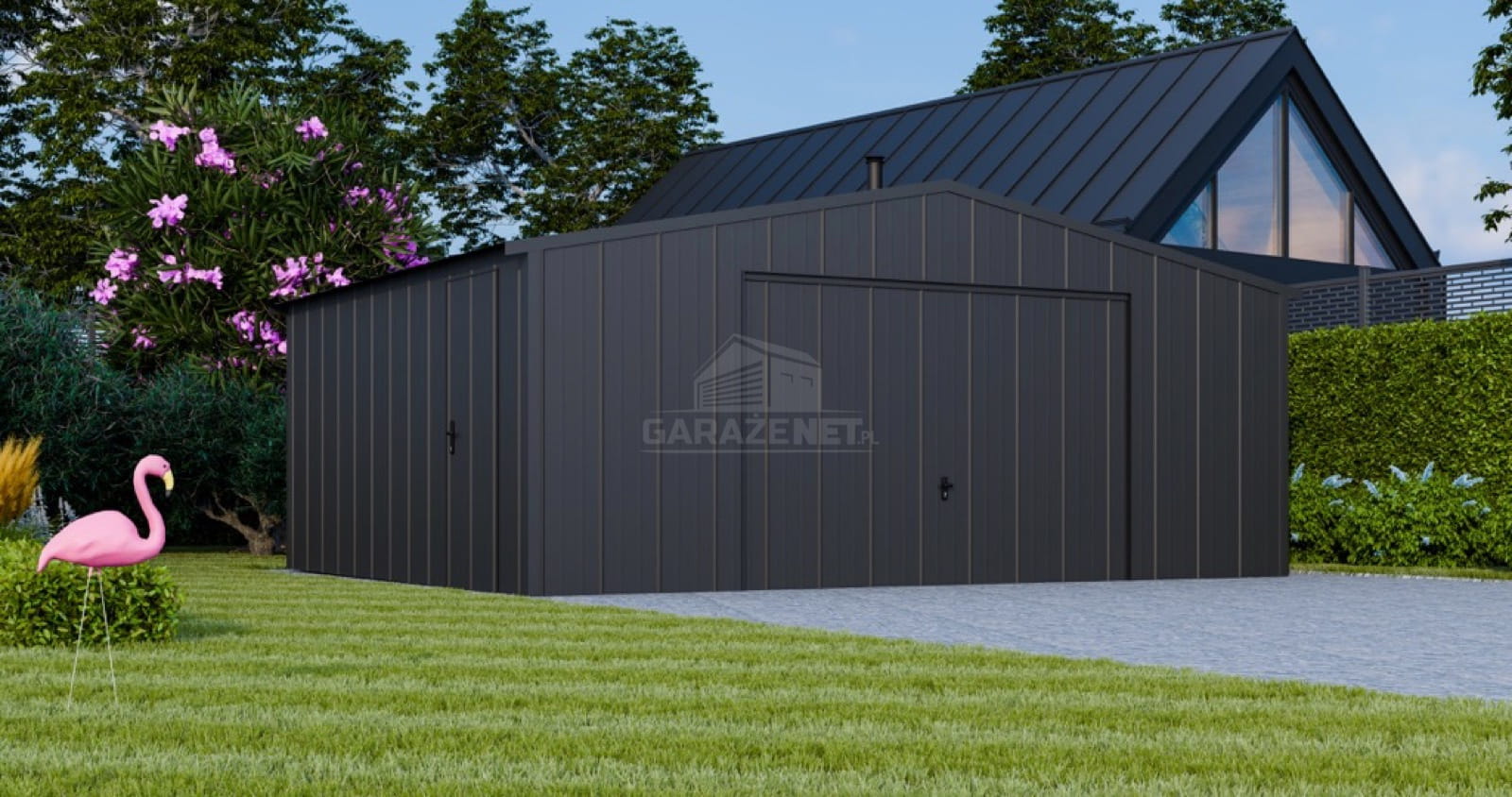 • dach: dwuspadowy, pokryty blachą na rąbek, kolor: antracyt mat 7016