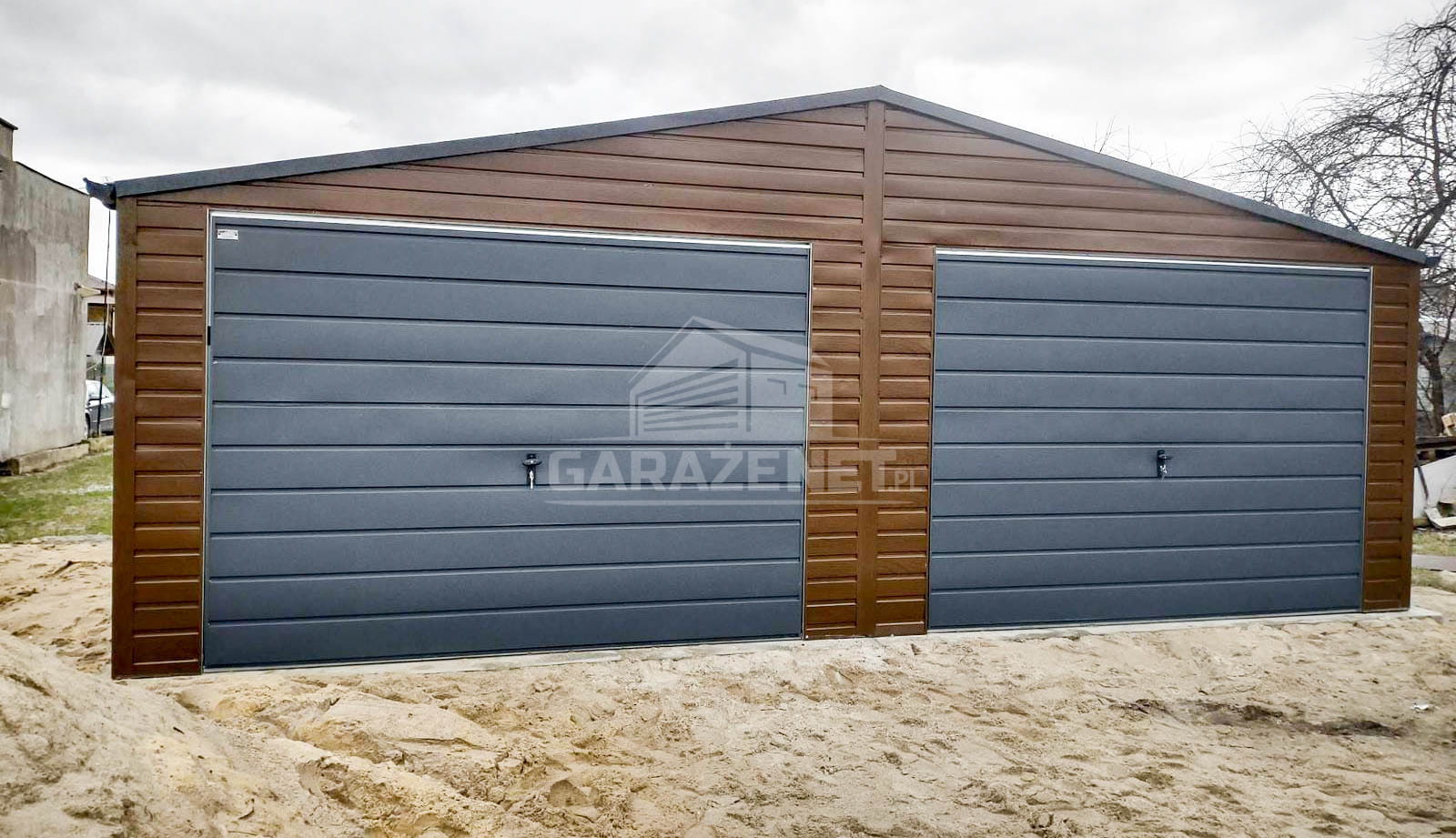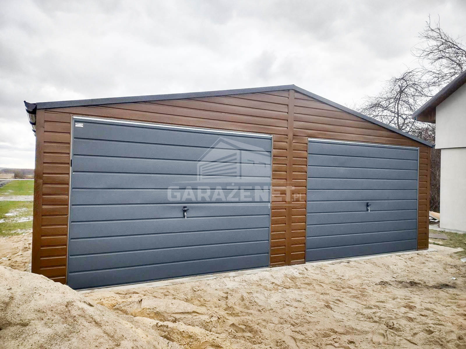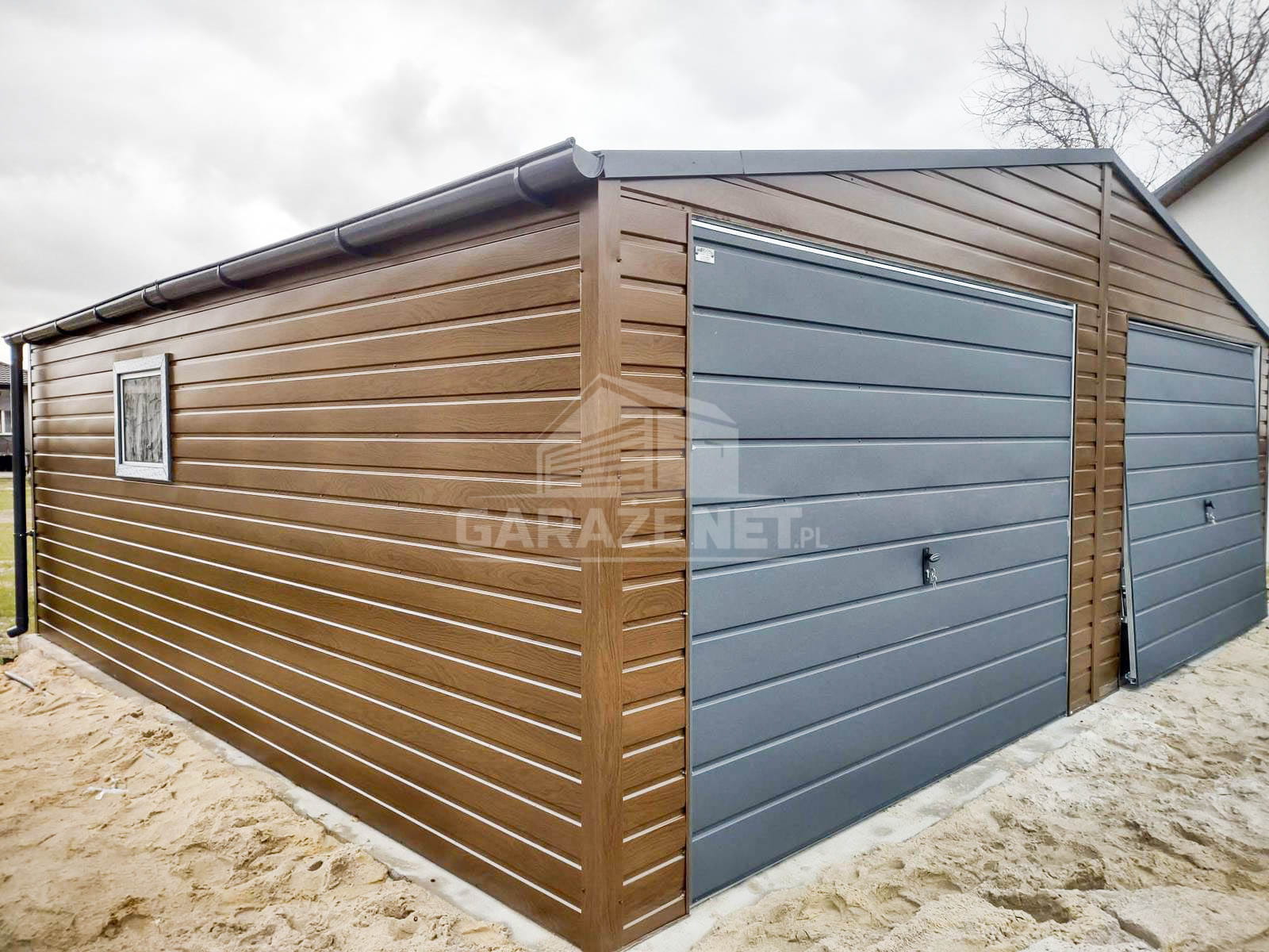 GARAŻ BLASZANY 7M X 6M POZIOM - DWUSPAD - 2X BRAMA + DRZWI + 2X OKNO - DREWNOPODOBNY + ANTRACYT GB291