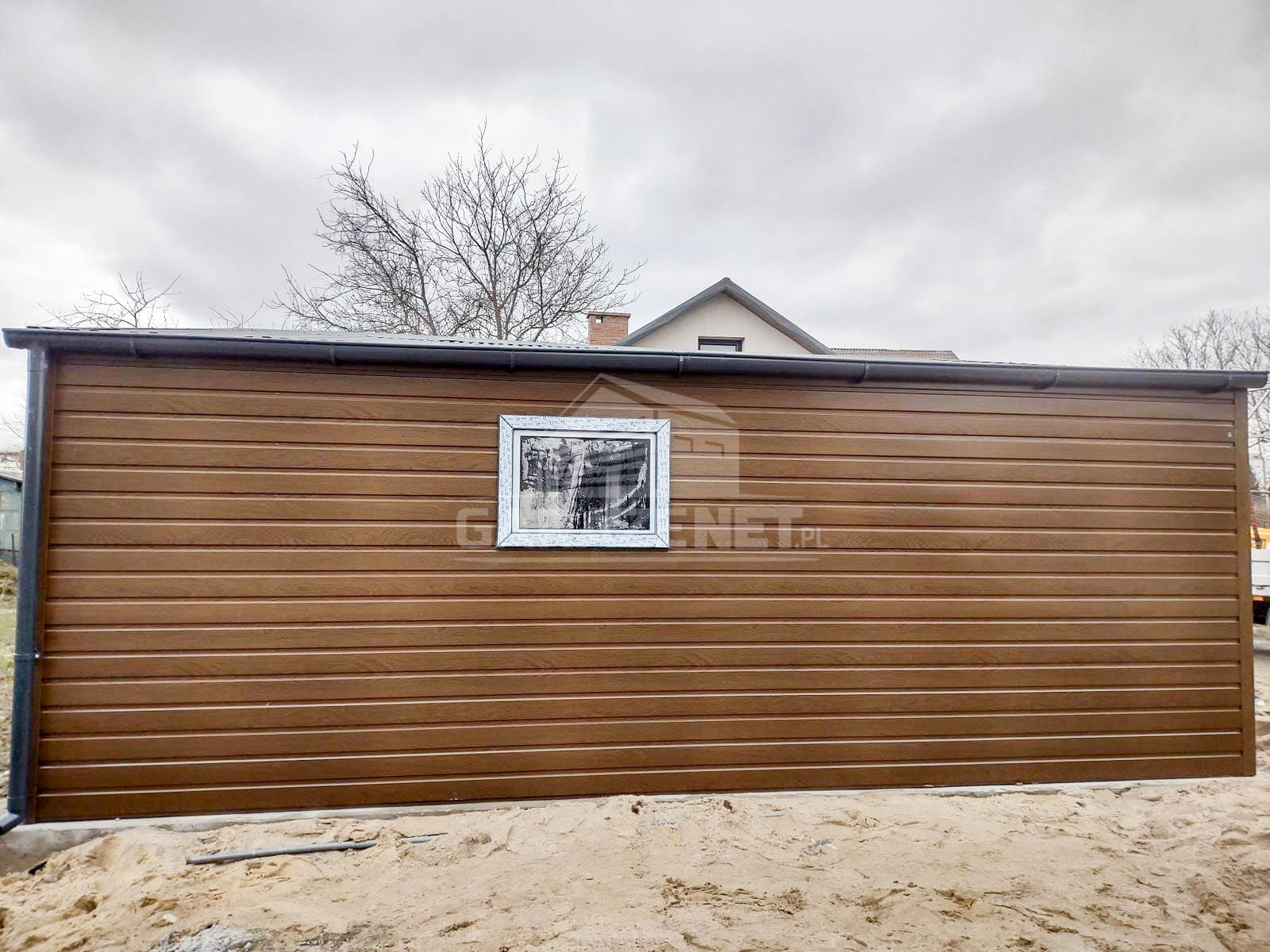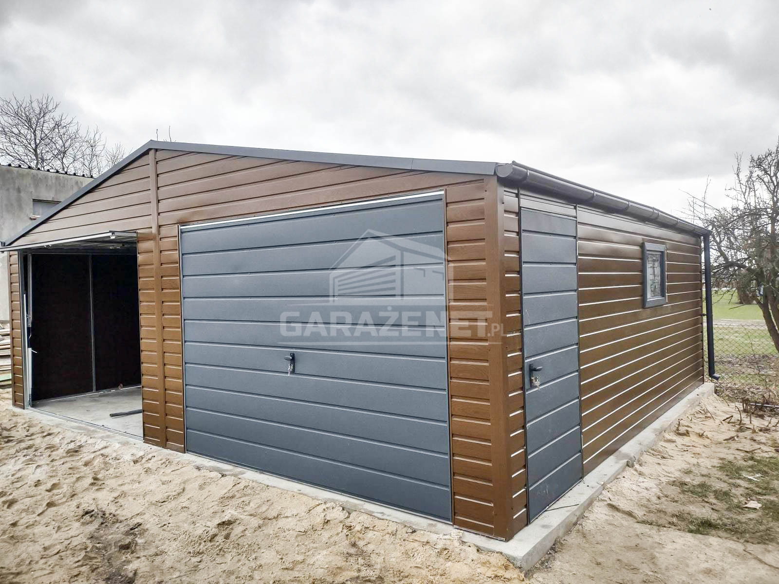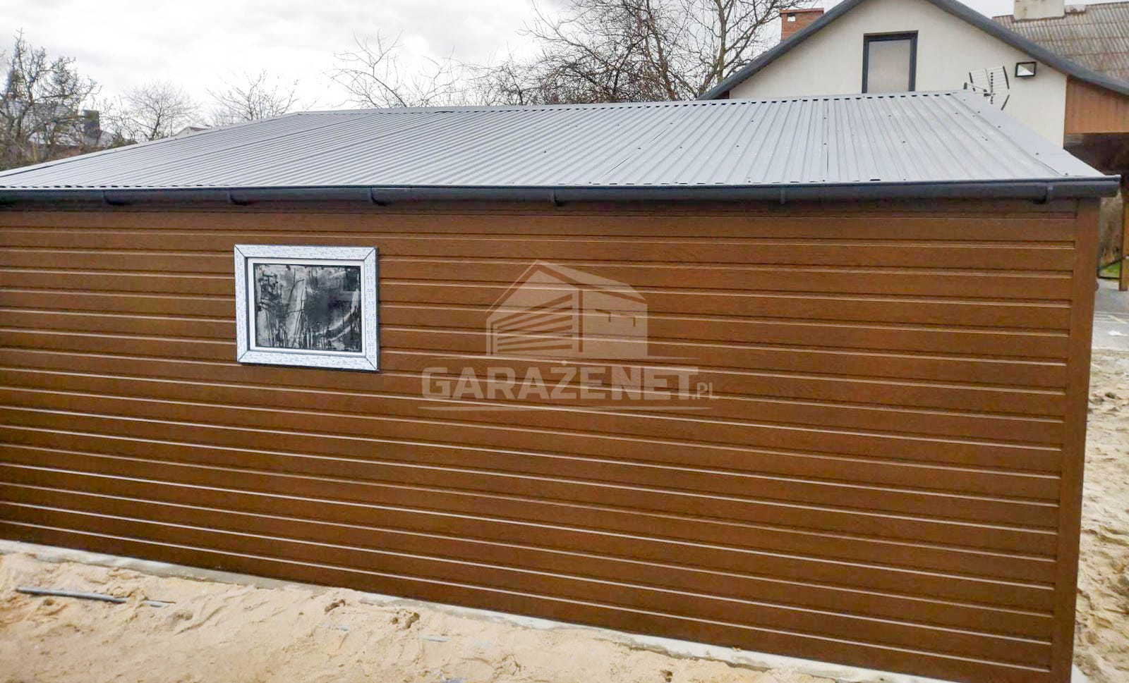 GARAŻ BLASZANY 7M X 6M POZIOM - DWUSPAD - 2X BRAMA + DRZWI + 2X OKNO - DREWNOPODOBNY + ANTRACYT GB291