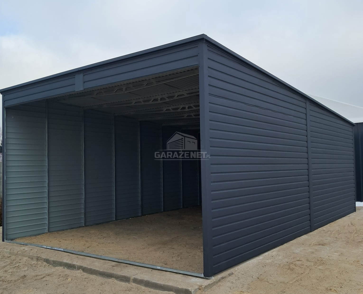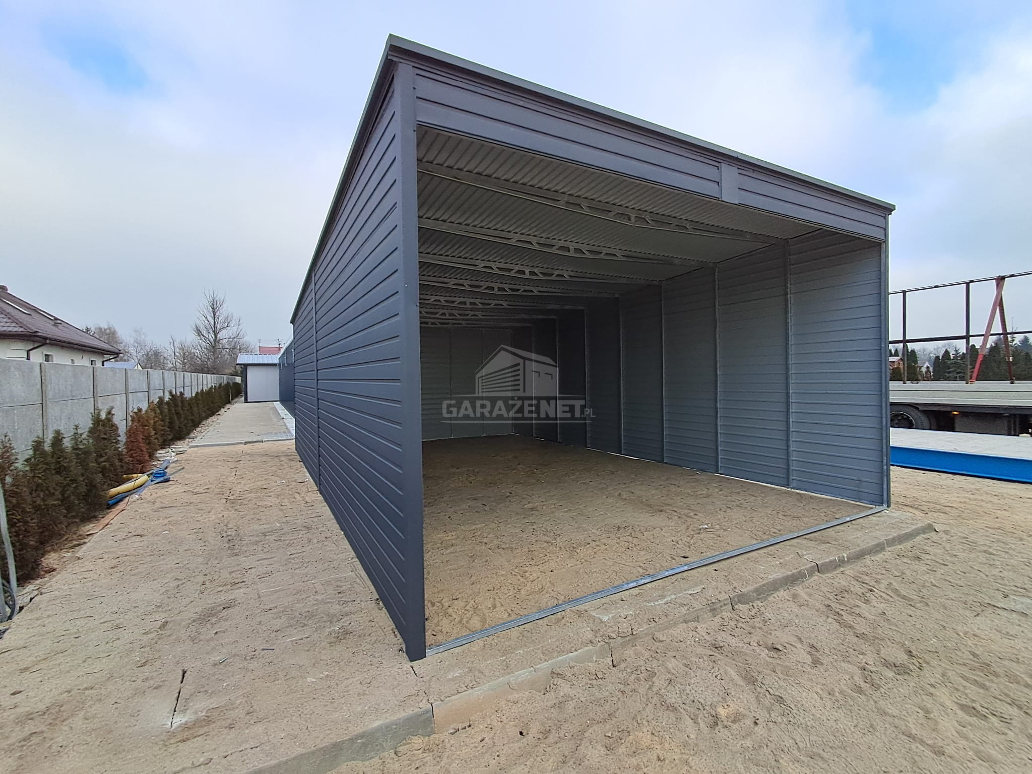 GARAŻ BLASZANY - CARPORT 6X8M - ANTRACYT - DACH SPAD W TYŁ TS1059