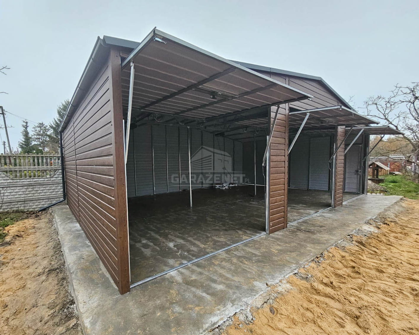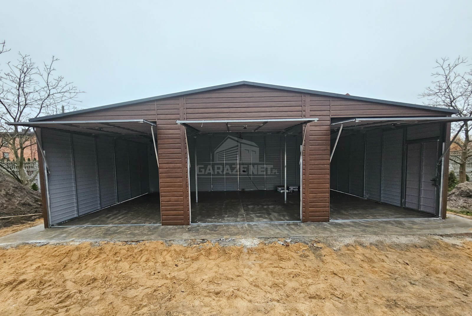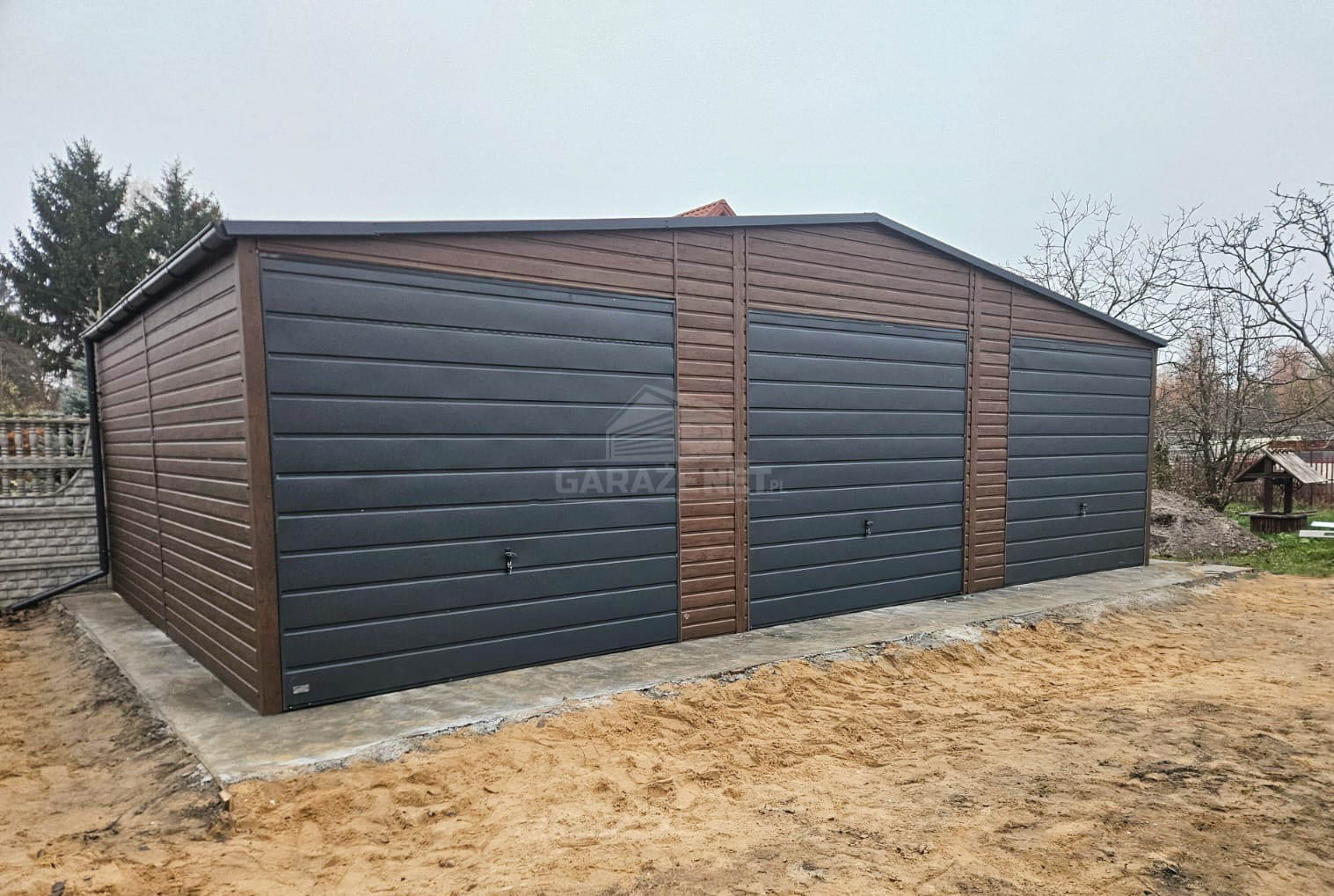 GARAŻ BLASZNY 10,5XM6 - 3X BRAMA UCHYLNA - DRZWI - CIEMNY ORZECH - DREWNOPODOBNY - ANTRACYT - RYNNY - DACH DWUSPADOWY TS877