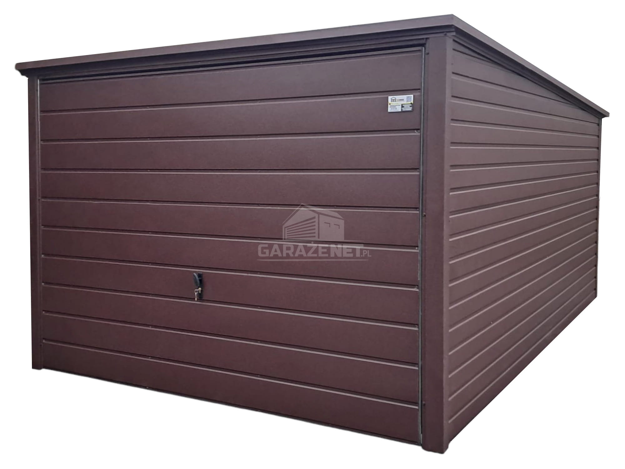 GARAŻ BLASZNY 3X5M - BRAMA UCHYLNA - CIEMNY BRĄZ - DACH SPAD W TYŁ TS975
