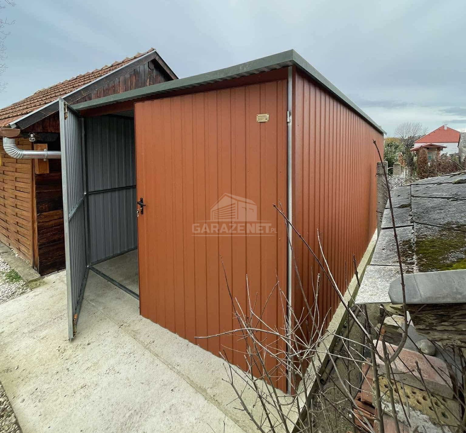 GARAŻ BLASZNY 3X6M - BRAMA DWUSKRZYDŁOWA - JASNY BRĄZ ( CEGLASTY ) - DACH SPAD W TYŁ TS1008