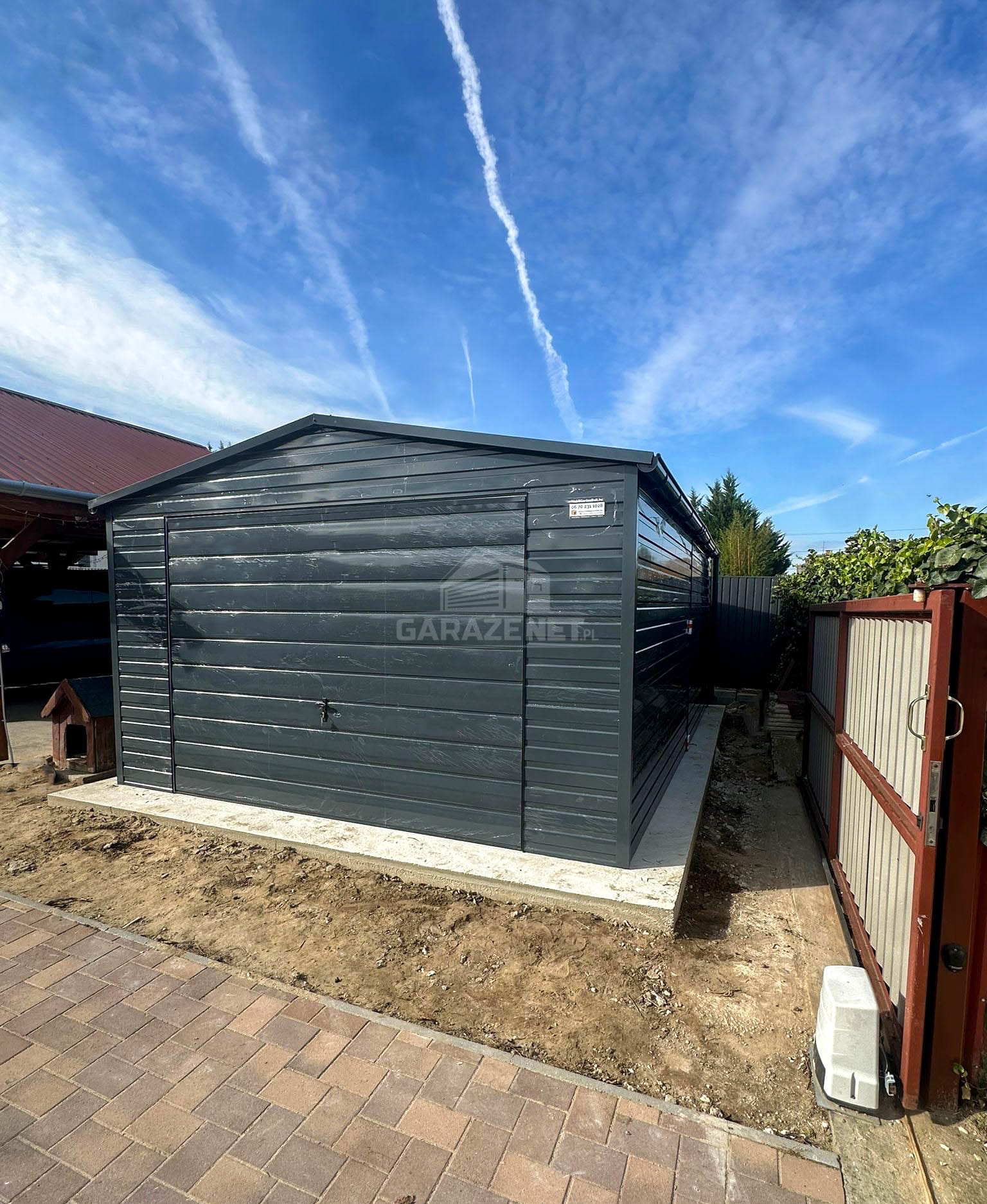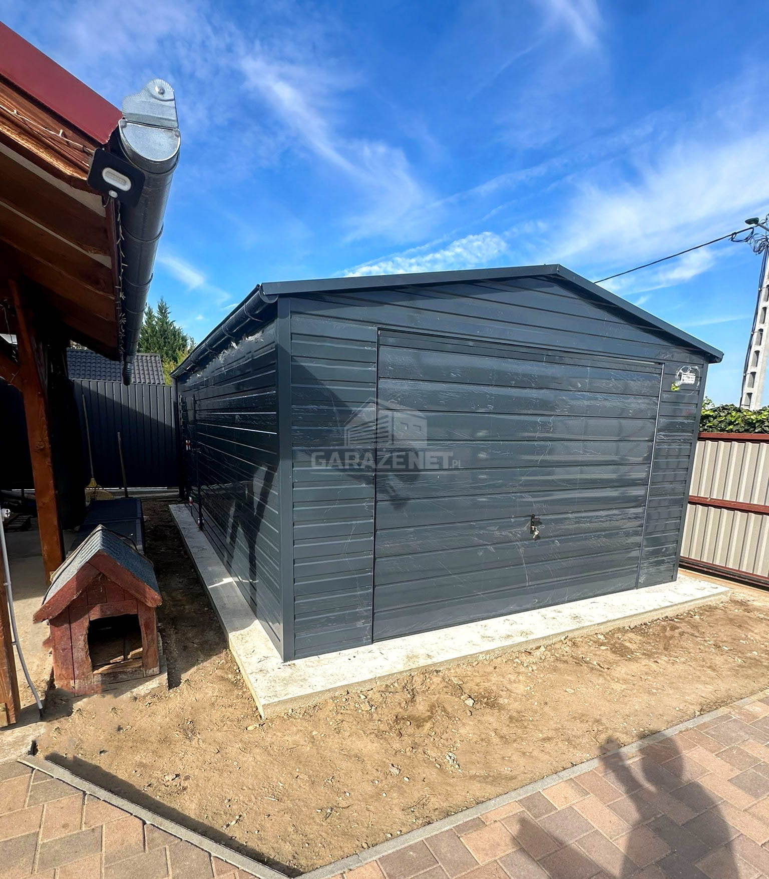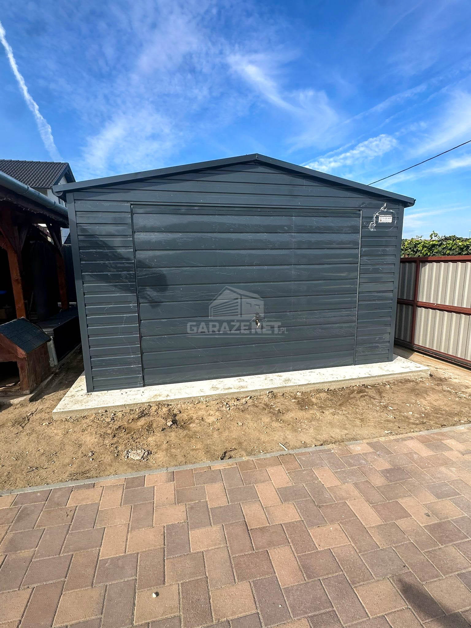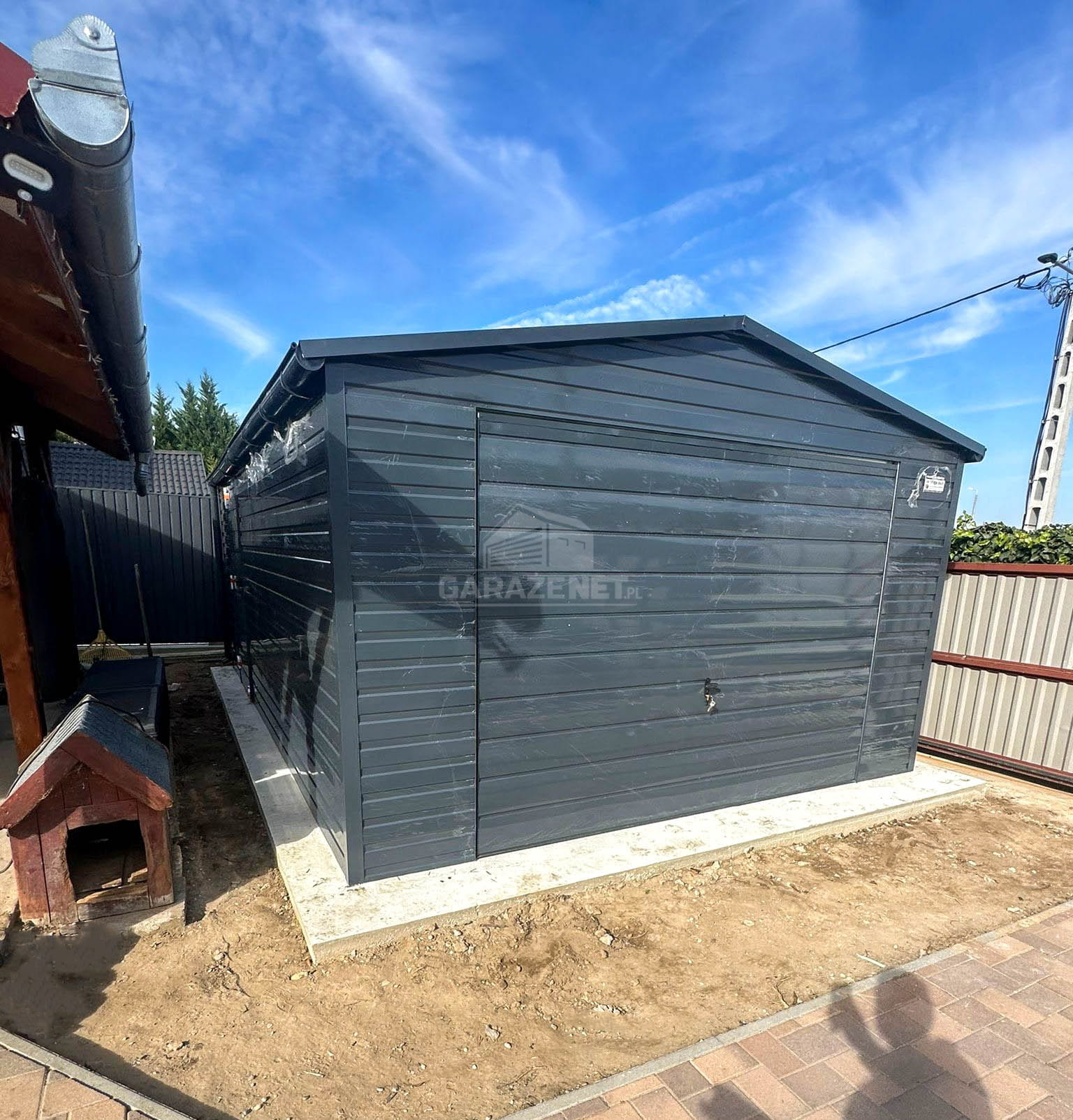GARAŻ BLASZNY 4,5X6M - BRAMA UCHYLNA - ANTRACYT - RYNNY - DACH DWUSPADOWY TS854