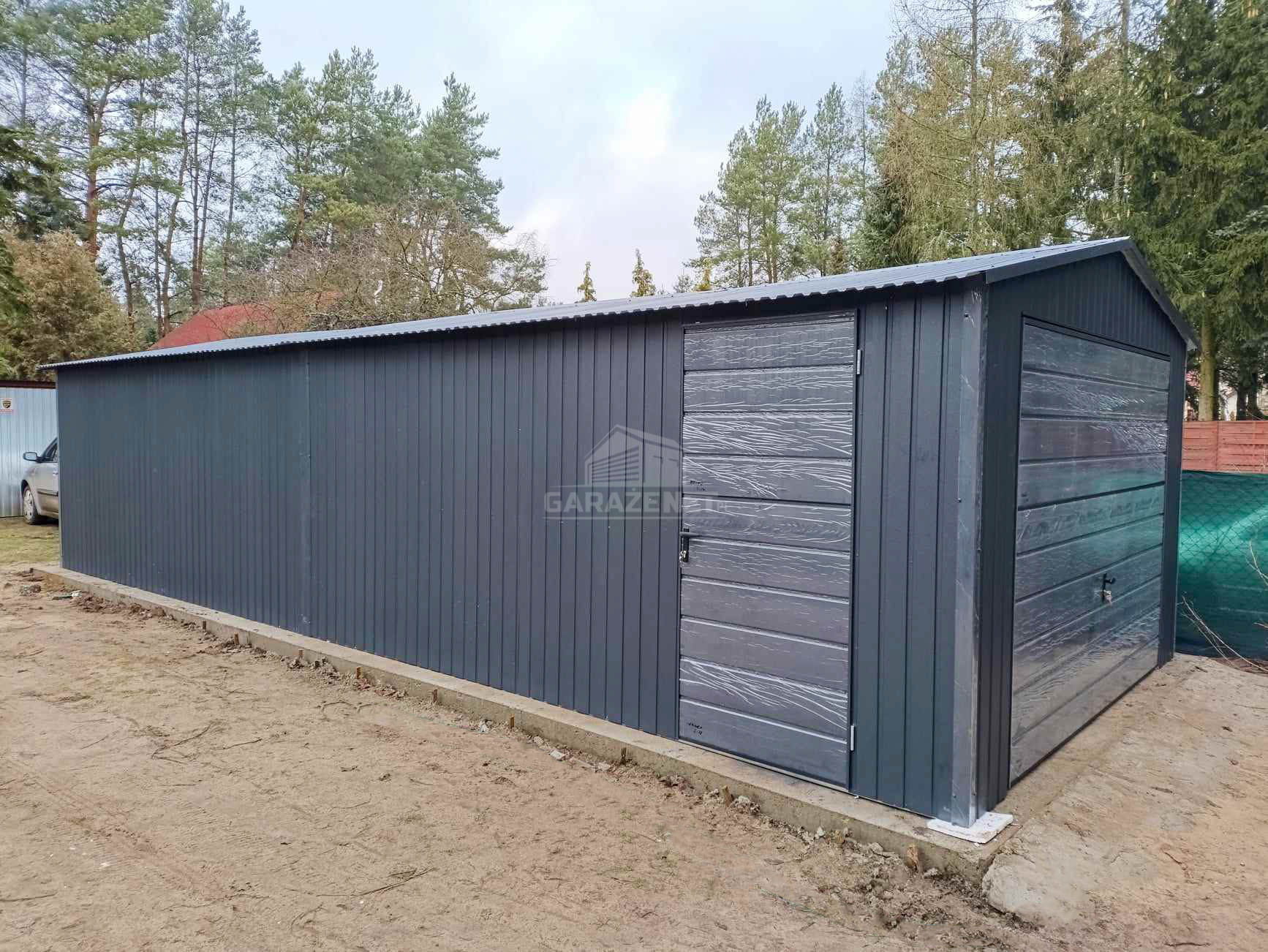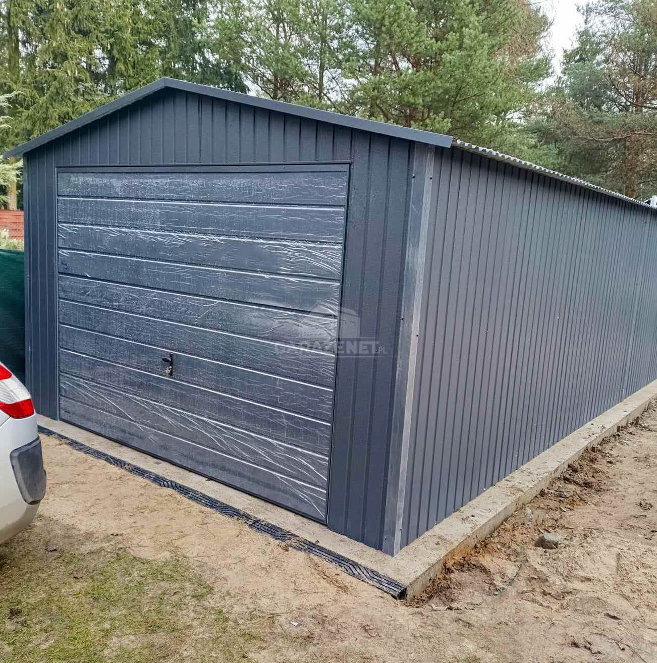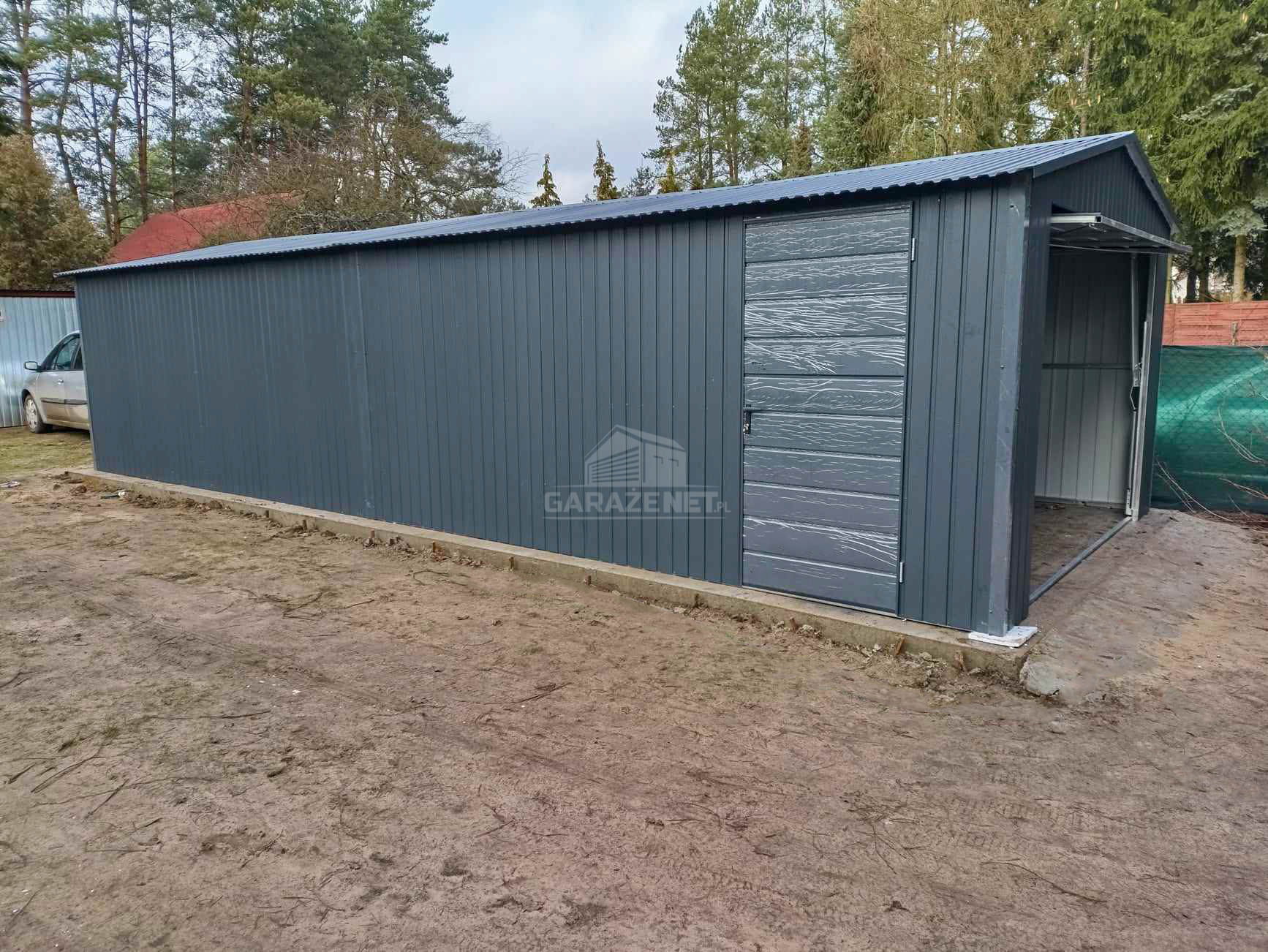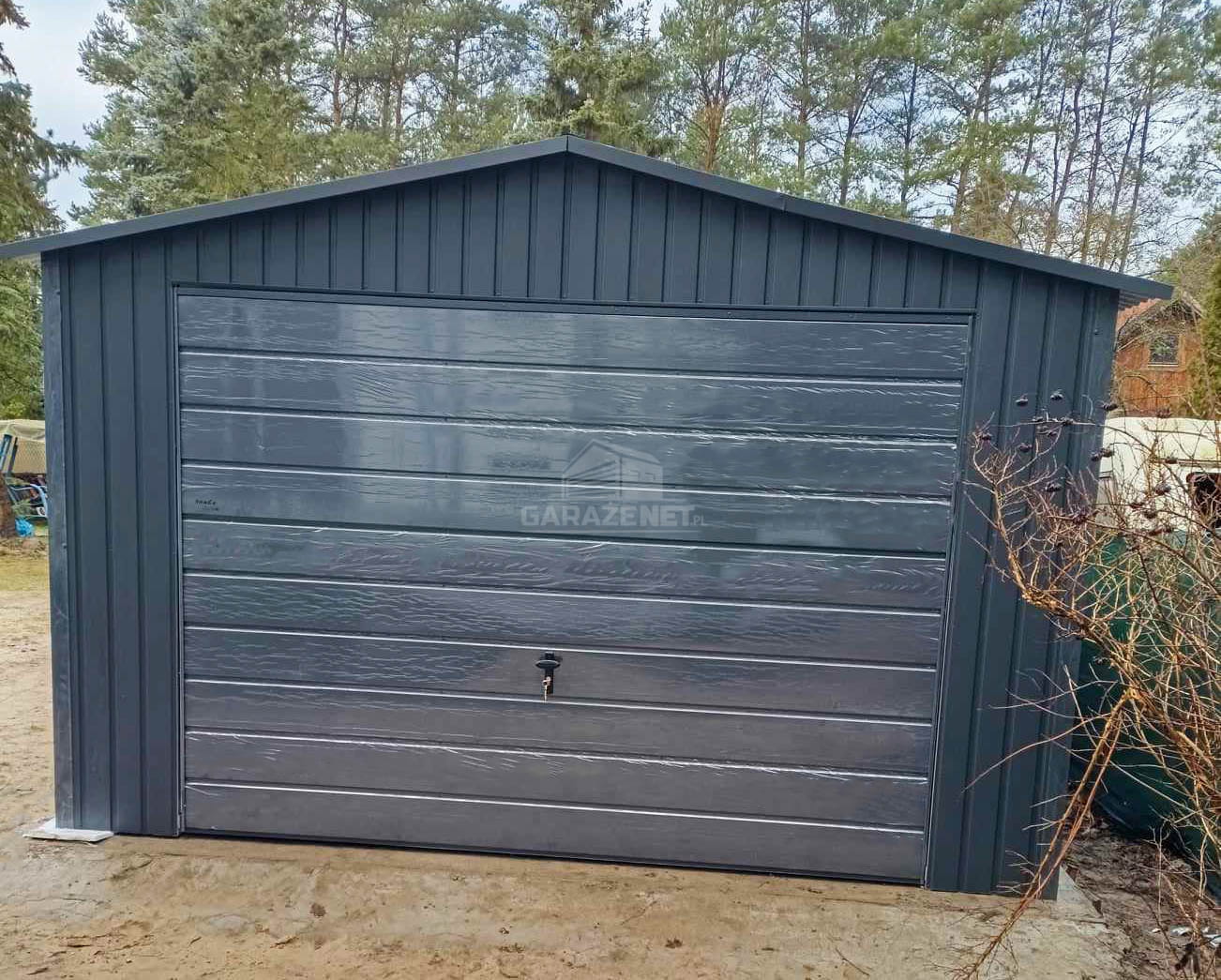 GARAŻ BLASZNY 4X9M - BRAMA UCHYLNA - 2X DRZWI - ANTRACYT - DACH DWUSPADOWY TS986