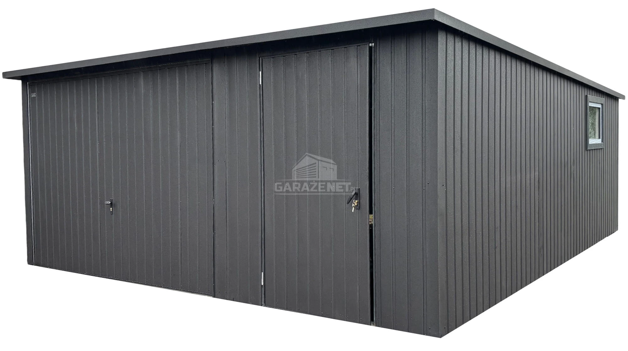 GARAŻ BLASZNY 5X6M – BRAMA UCHYLNA – DRZWI – OKNO – ANTRACYT – DACH SPAD W TYŁ TS1144