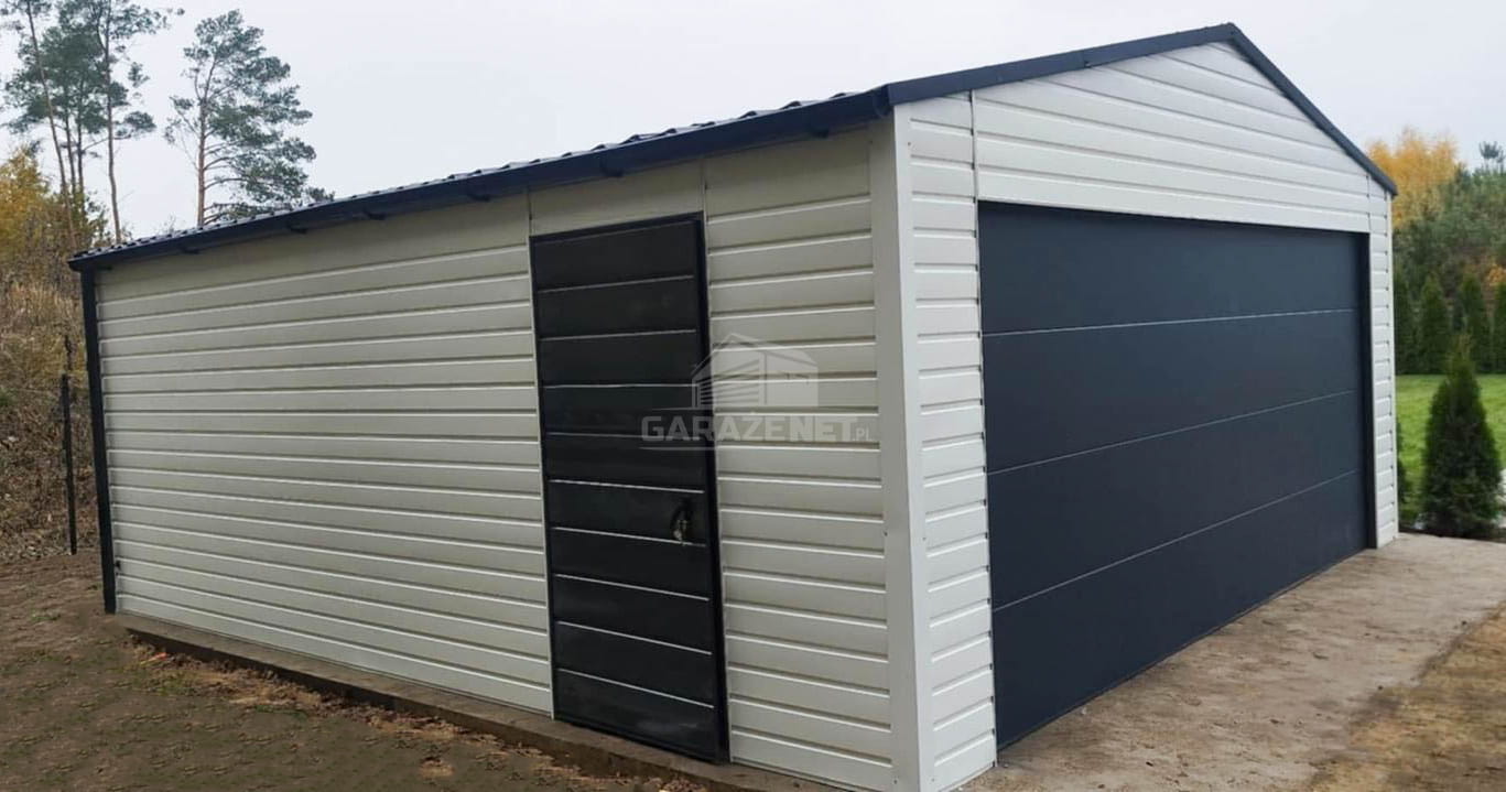 GARAŻ BLASZNY 6X5,8M - BRAMA SEGMENTOWA - DRZWI - BIAŁY - ANTRACYT - RYNNY - DACH DWUSPADOWY TS872