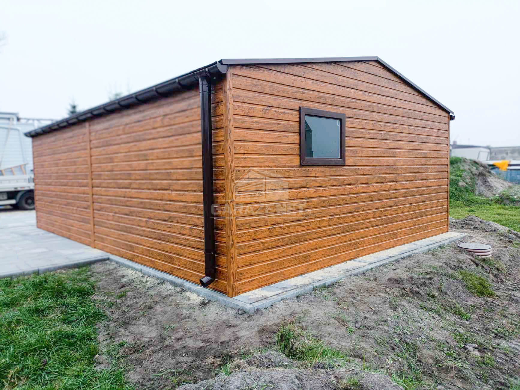 GARAŻ BLASZNY 6X6M - BRAMA UCHYLNA - DRZWI- 2X OKNO - JASNY ORZECH - DREWNOPODOBNY - RYNNY - DACH DWUSPADOWY TS896