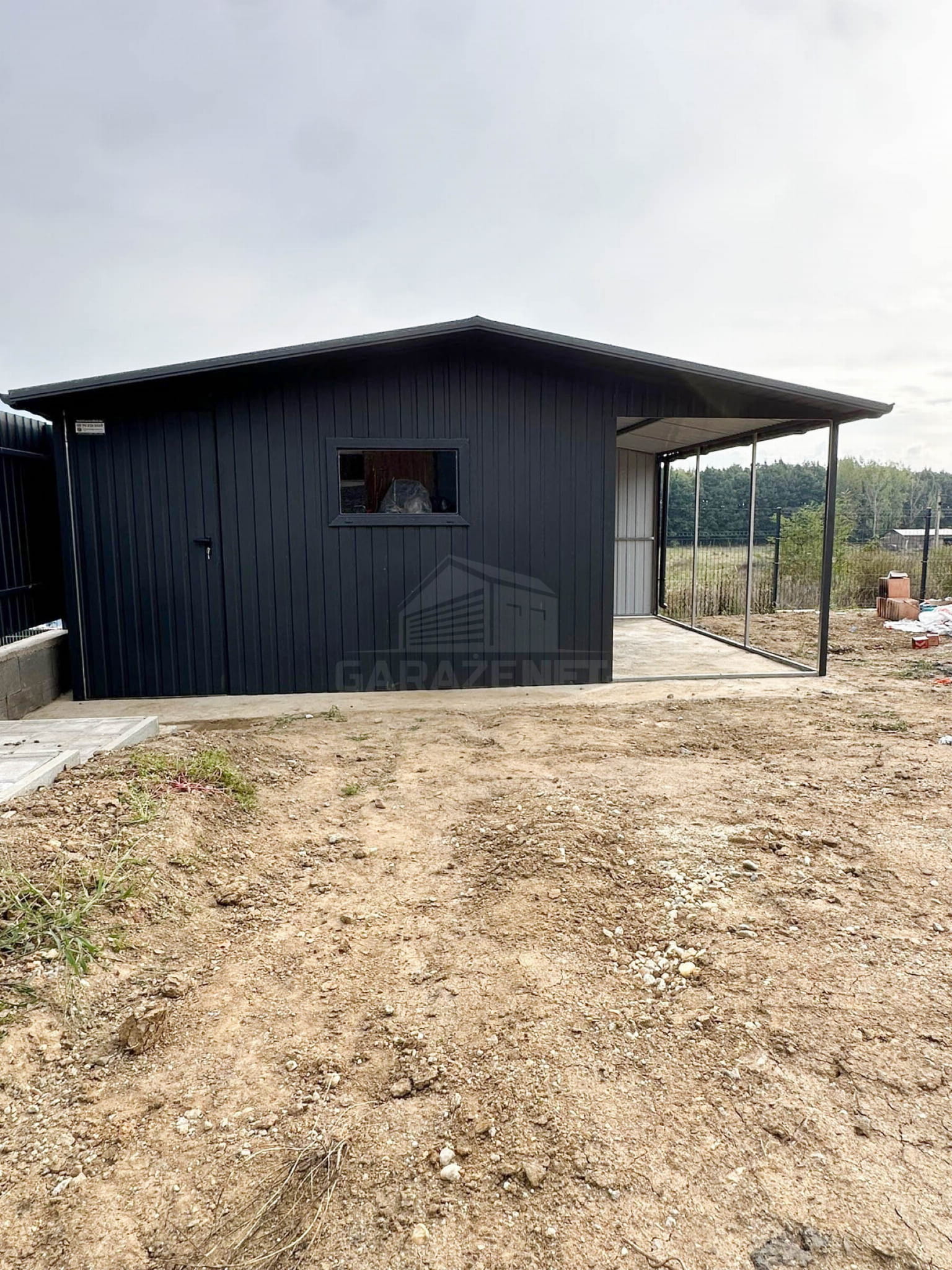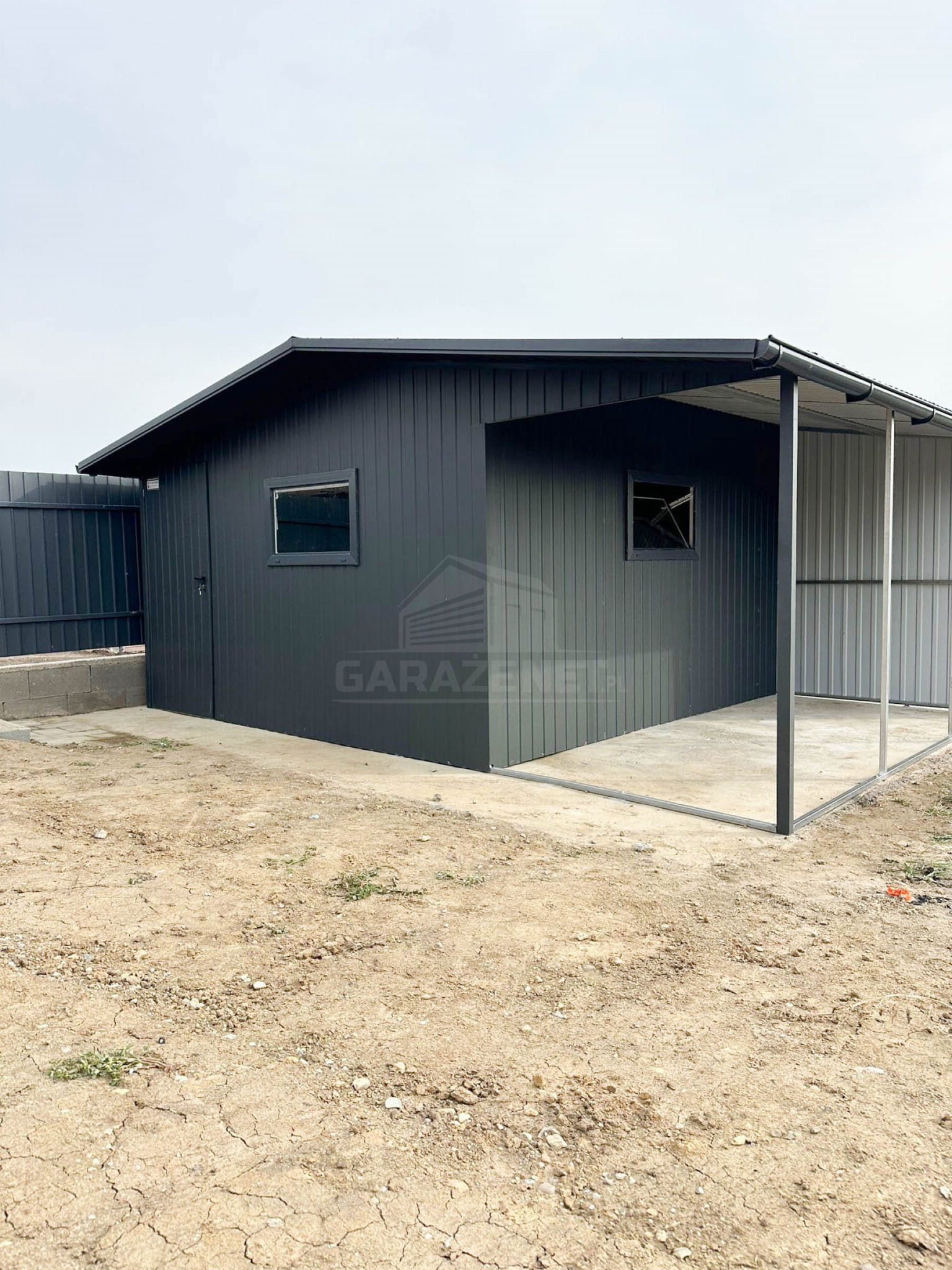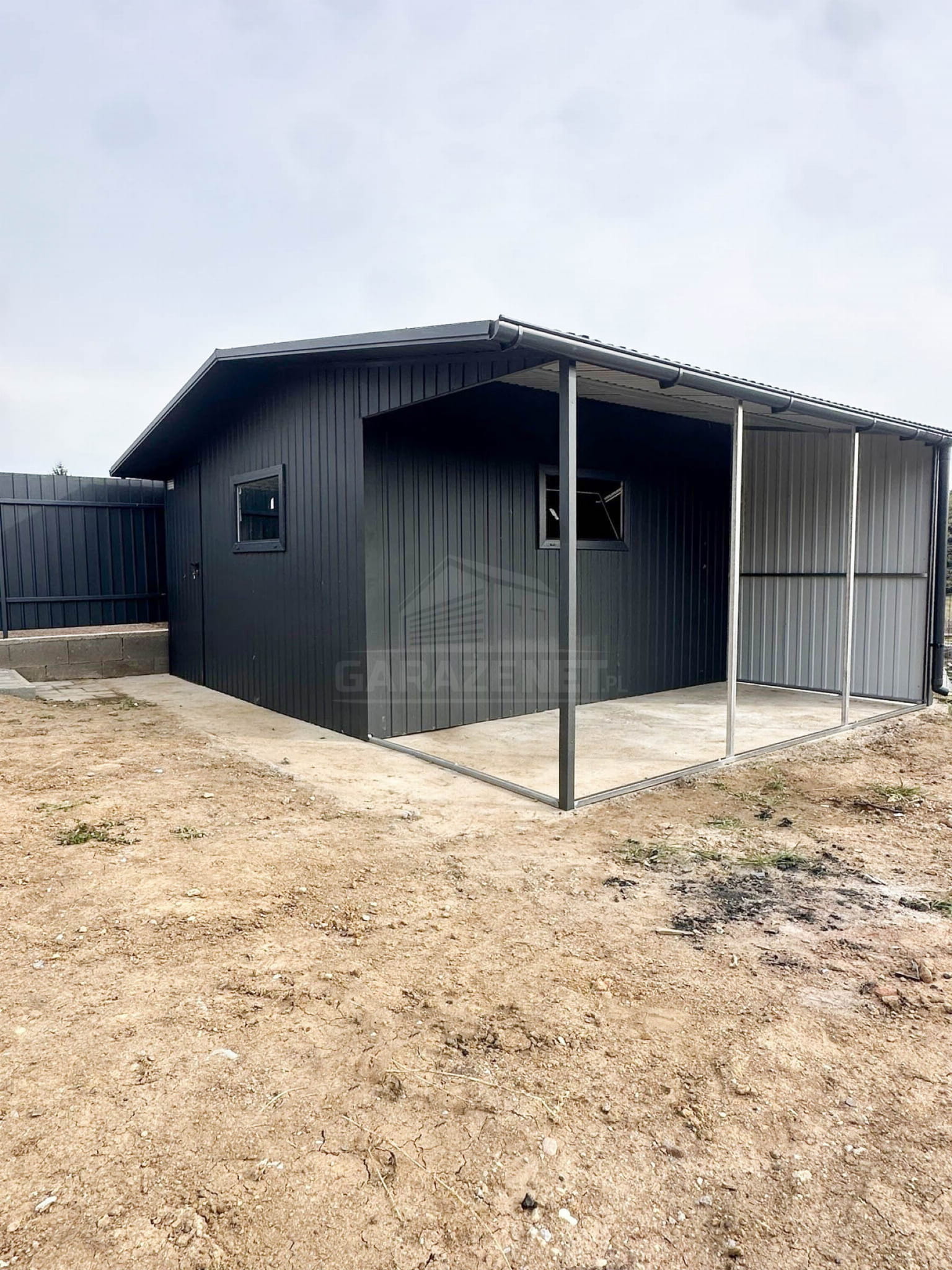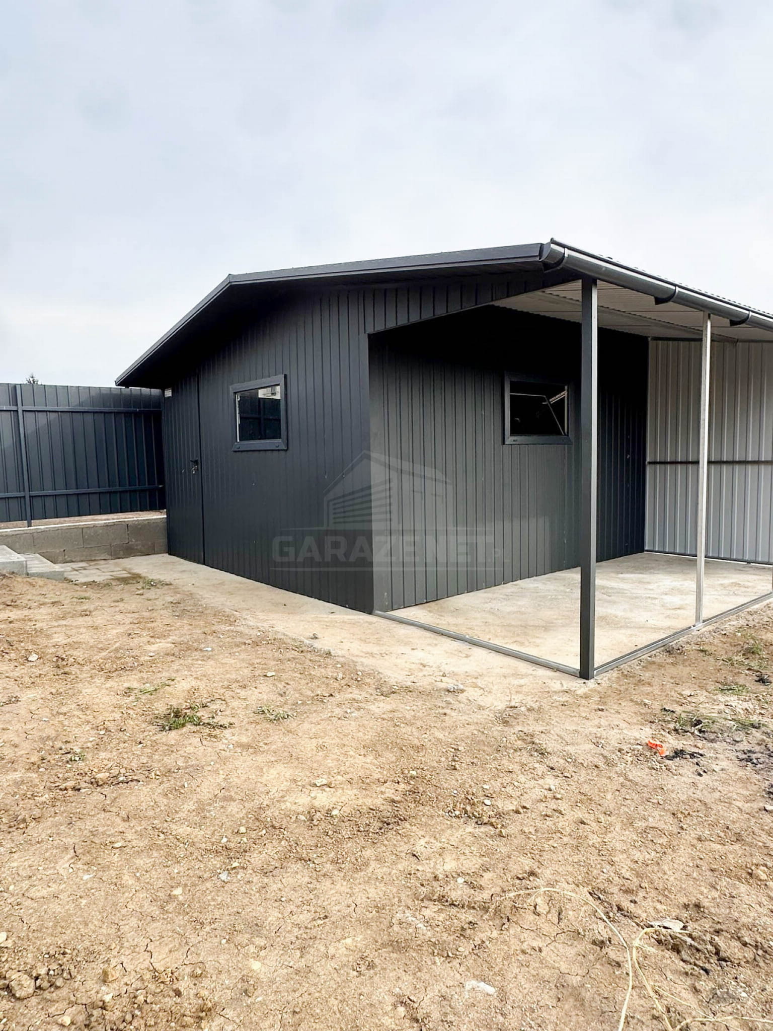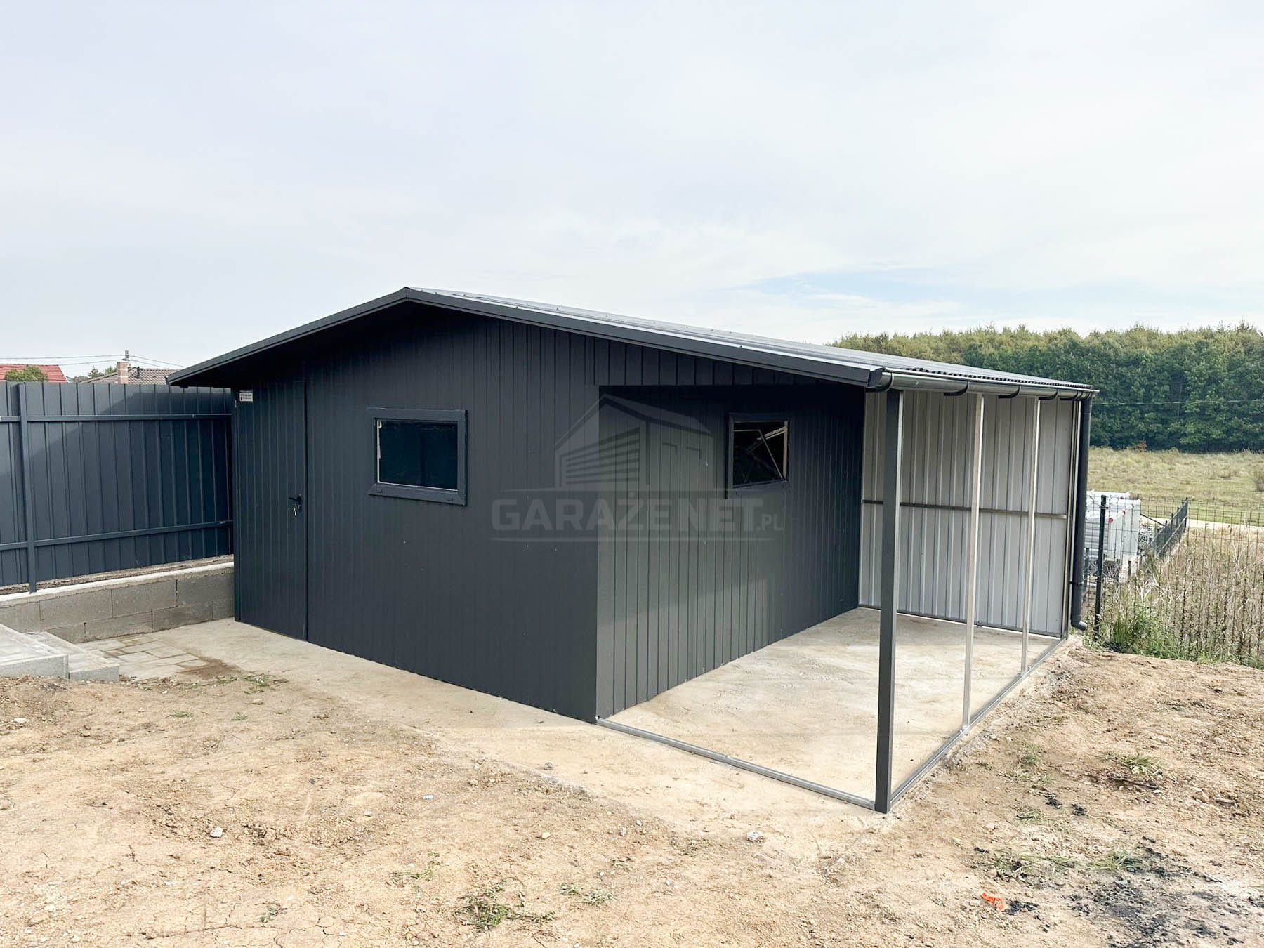 GARAŻ BLASZNY - DOMEK OGRODOWY - SCHOWEK 4X6M + WIATA 2X6M - DRZWI - 2X OKNO - ANTRACYT - RYNNY - DACH DWUSPADOWY TS1005