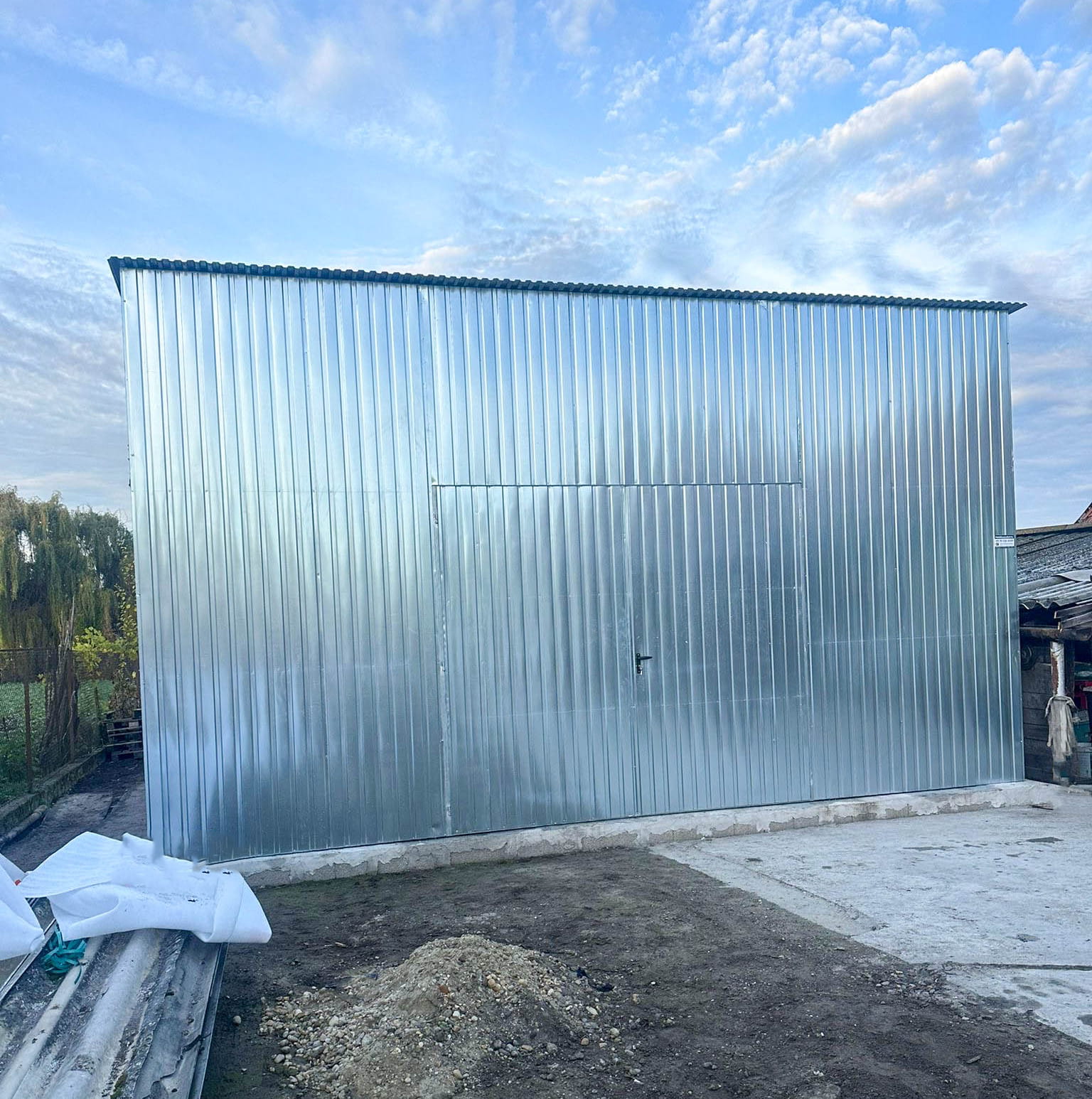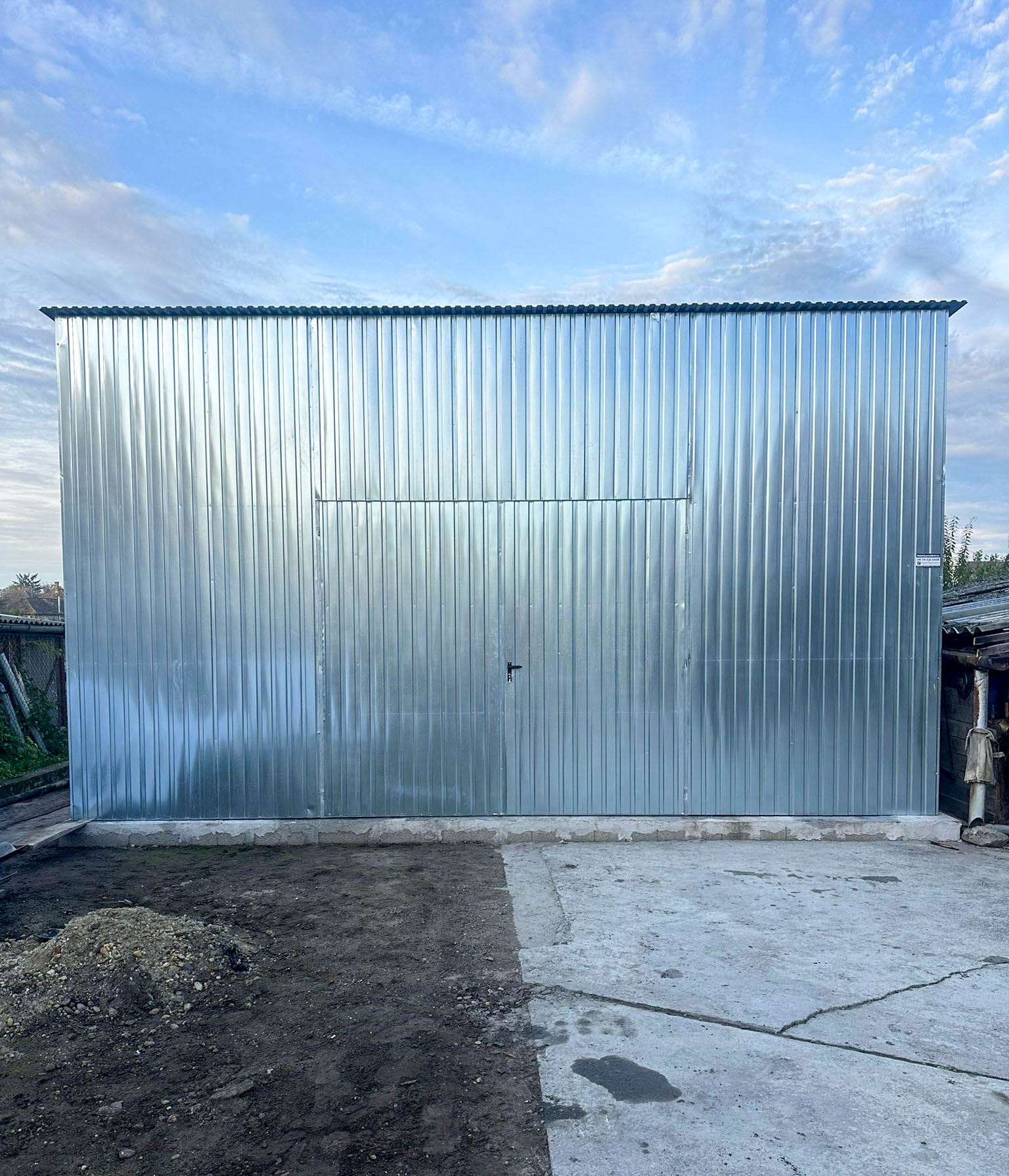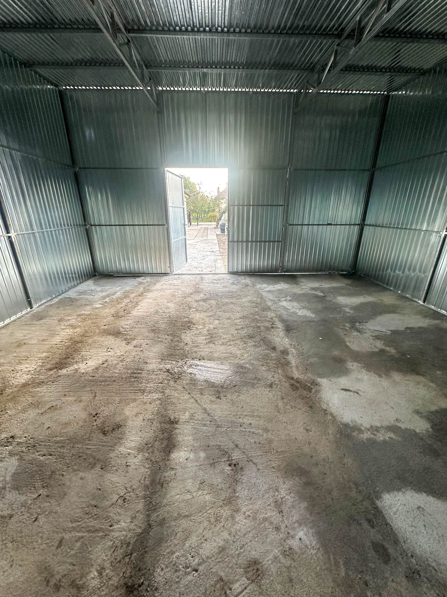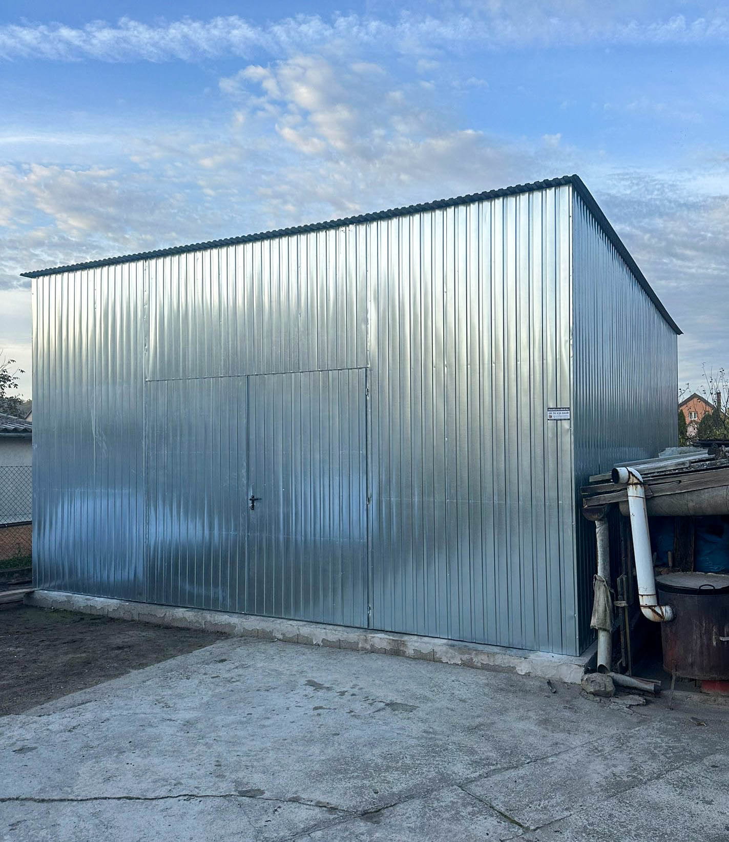 GARAŻ BLASZNY - HALA - 7X8M - BRAMA DWUSKRZYDŁOWA - OCYNK - DACH SPAD W PRZÓD TS853