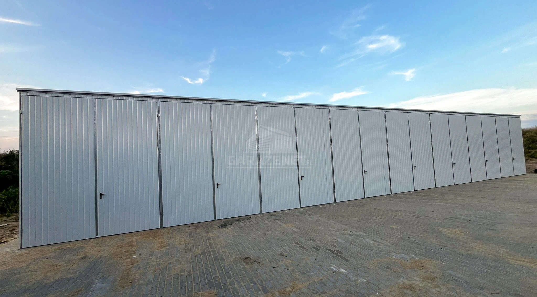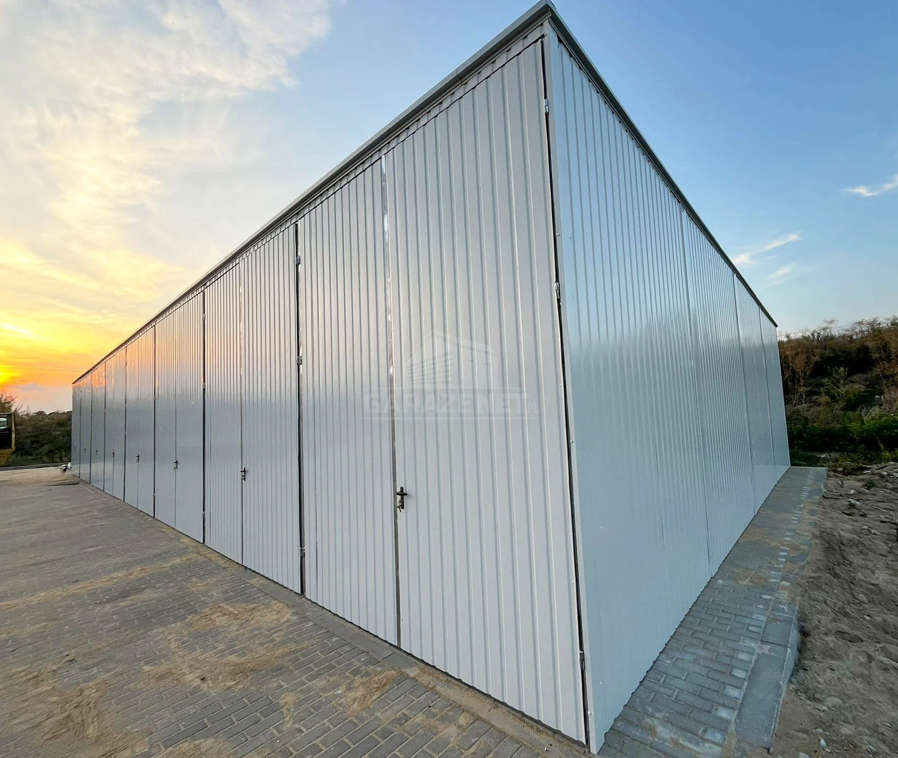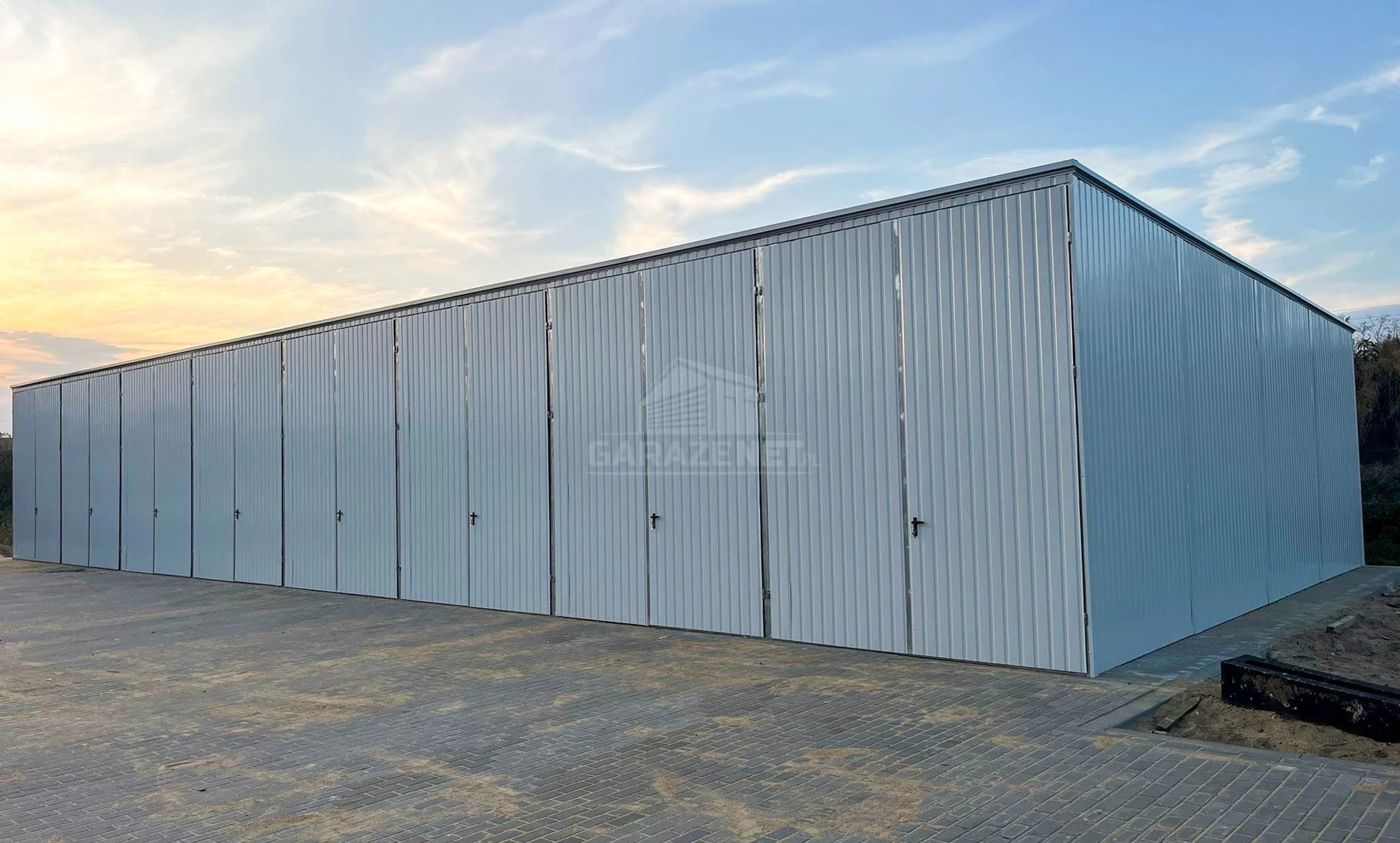 HALA BLASZANA 24X8M – 8X BRAMA DWUSKRZYDŁOWA – BIAŁY – DACH SPAD W TYŁ TS1180