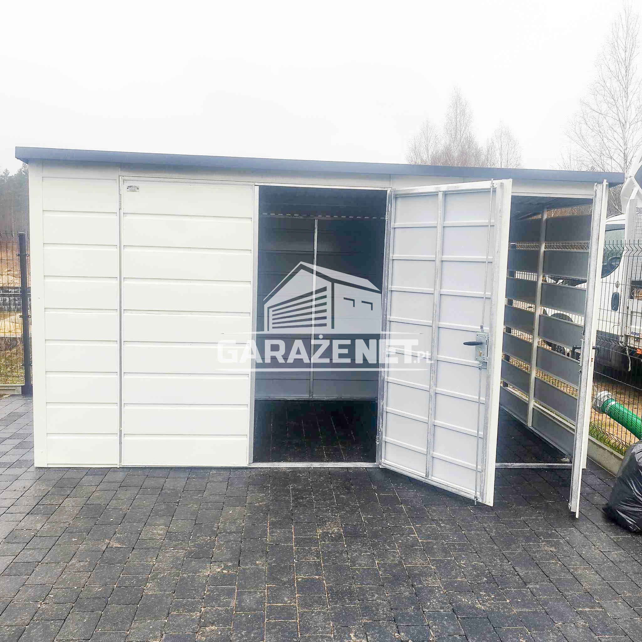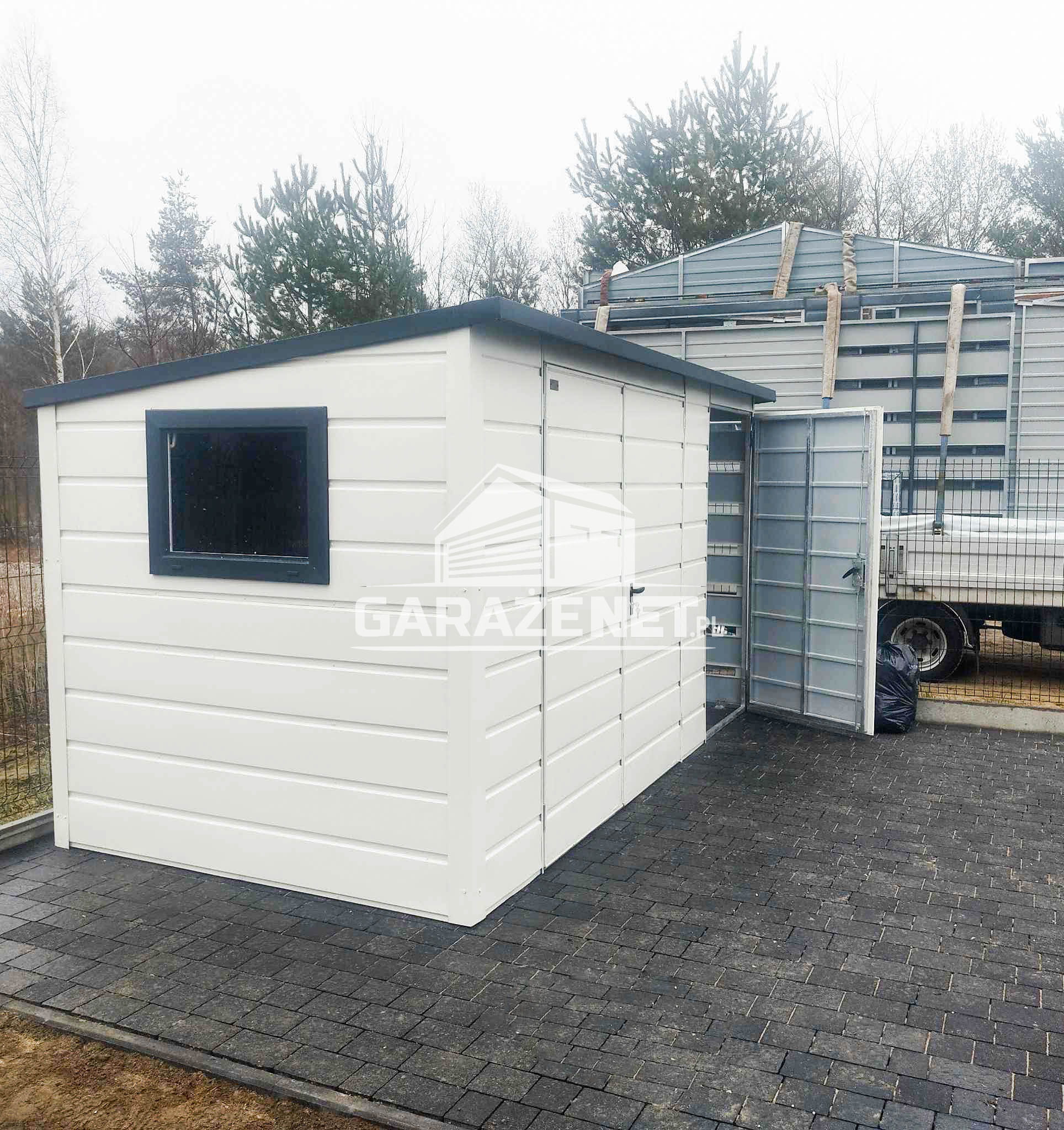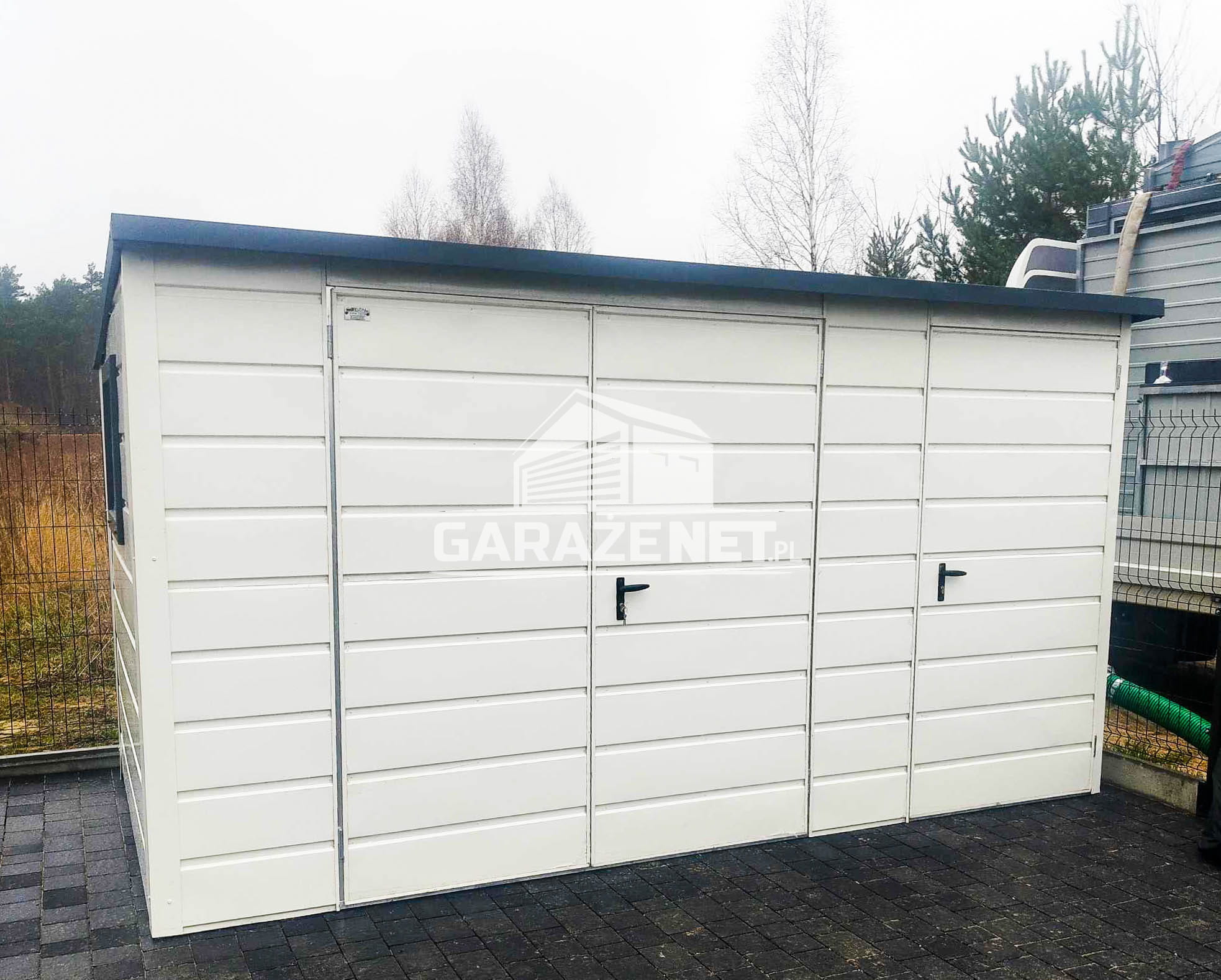 SCHOWEK - DOMEK OGRODOWY 2,5X2 M + WIATA 1X2 M - BRAMA DWUSKRZYDŁOWA - OKNO - DRZWI - SPAD W TYŁ - BIAŁY DG419