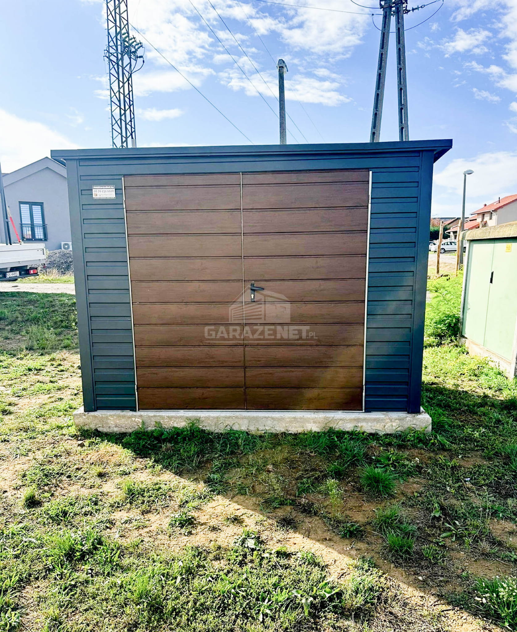 SCHOWEK - DOMEK OGRODOWY 2,5X2M - BRAMA DWUSKRZYDŁOWA - OKNO - ANTRACYT - CIEMNY ORZECH - DREWNOPODOBNY - DACH SPAD W TYŁ TS864