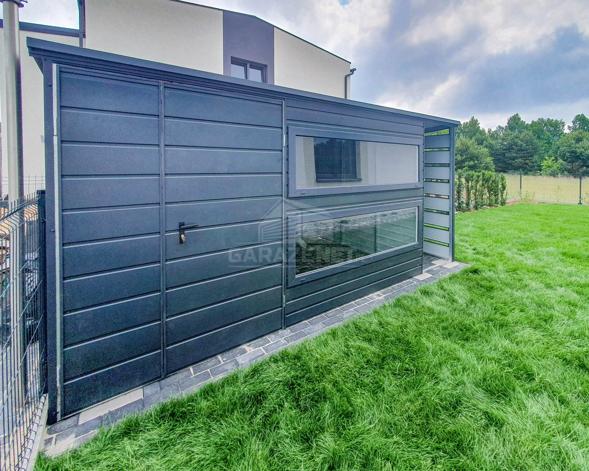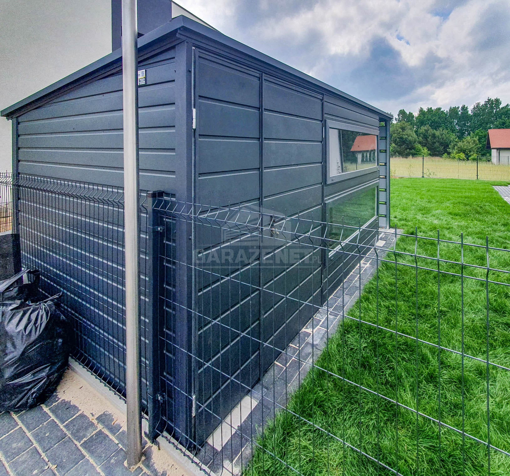 SCHOWEK - DOMEK OGRODOWY 3,5X2M + WIATA 1M - 2X OKNO - DRZWI - ANTRACYT - DACH SPAD W TYŁ TS716