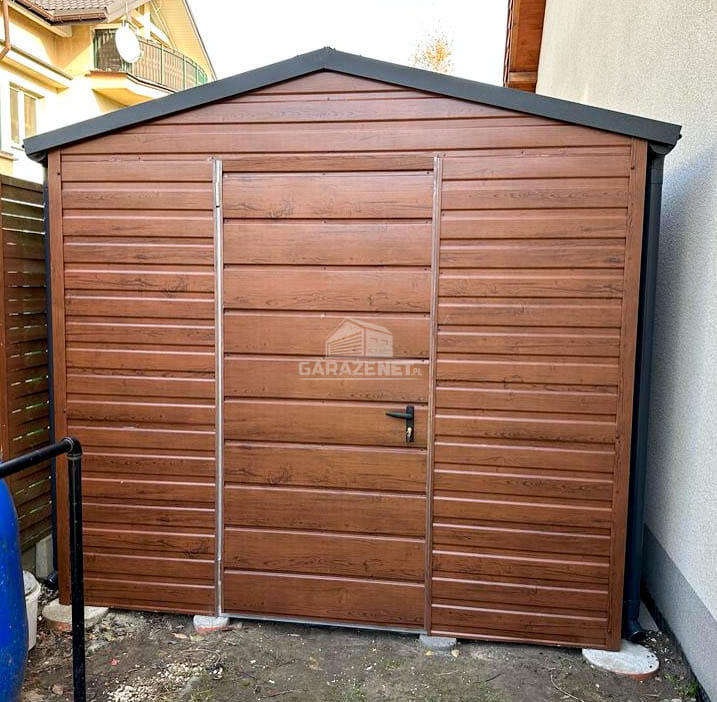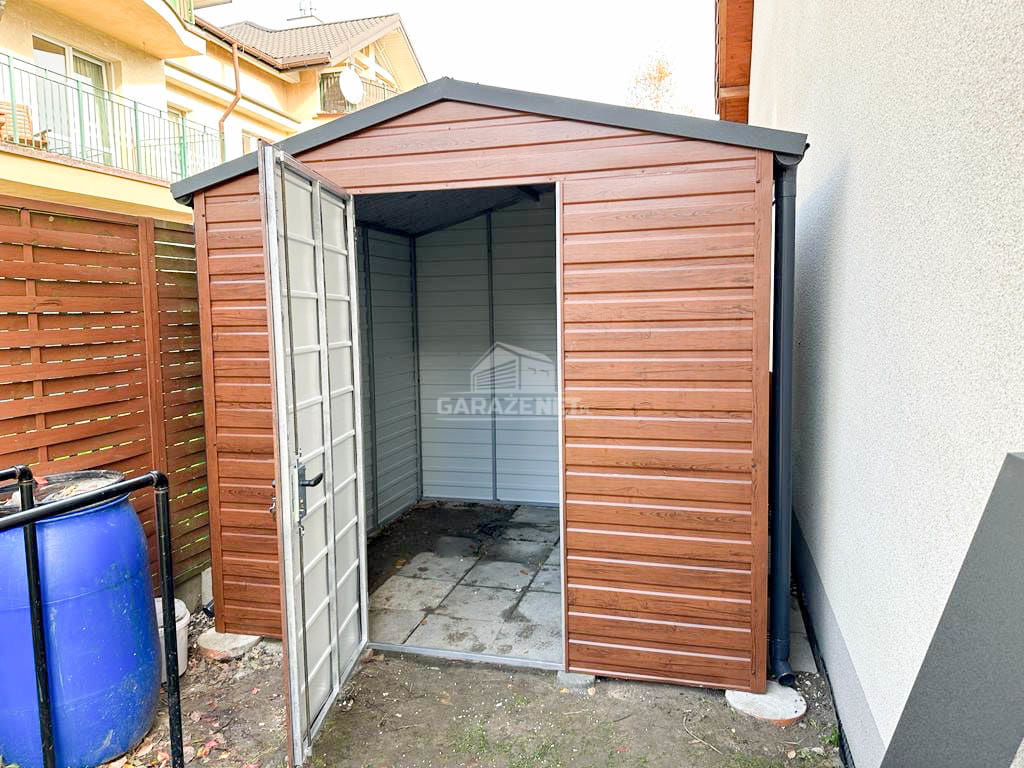 SCHOWEK - DOMEK OGRODOWY 3M X 2M DWUSPAD - DRZWI -RYNNY - DREWNOPODOBNY JASNY ORZECH 3X2 GB344