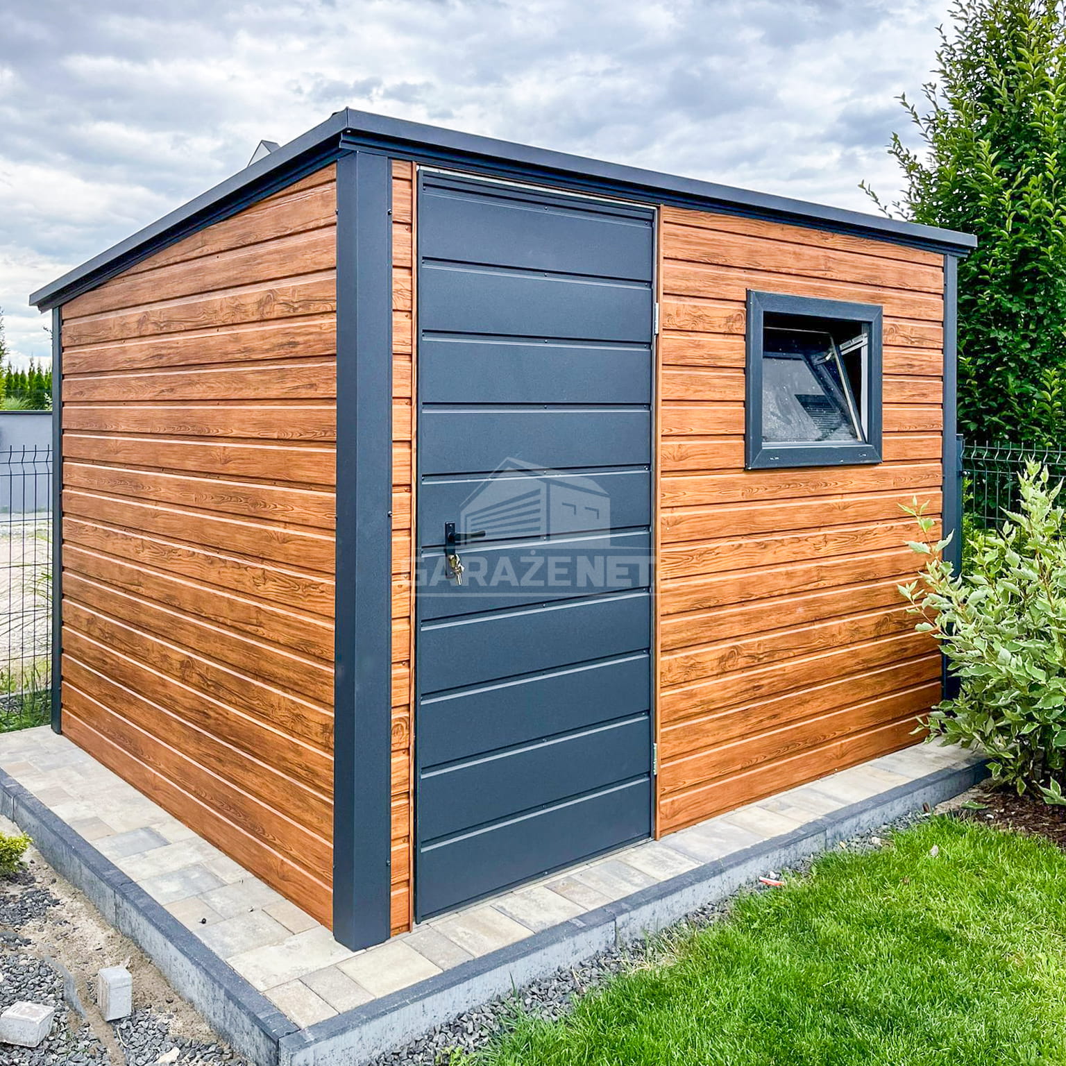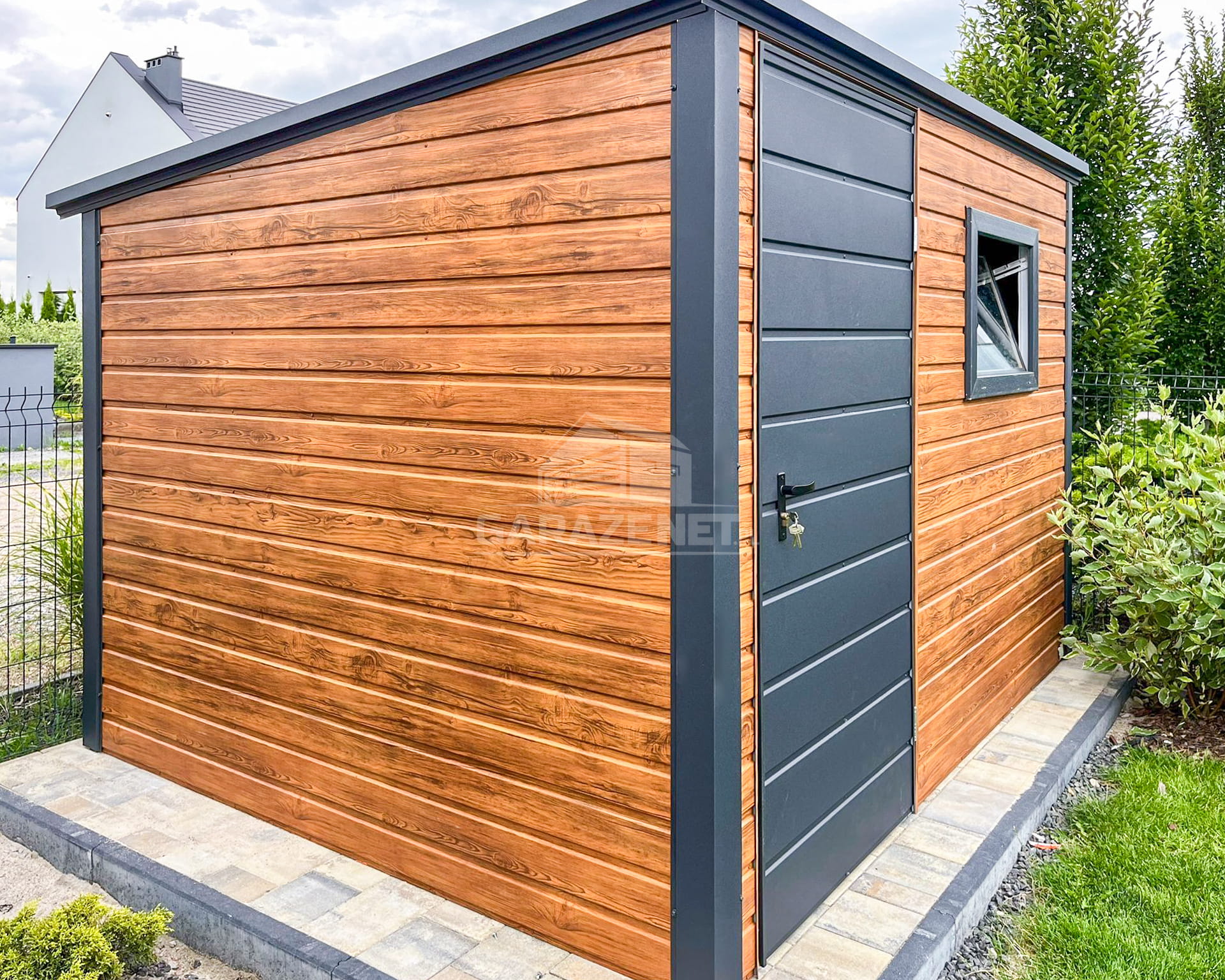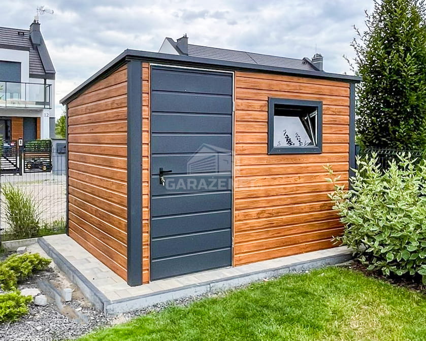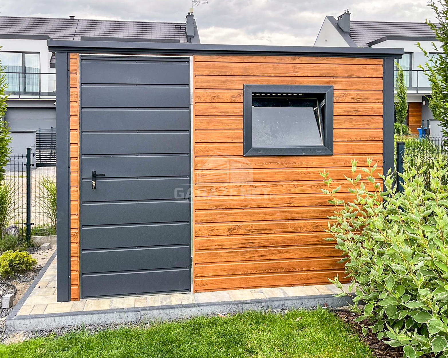 SCHOWEK - DOMEK OGRODOWY 3X2,5M DRZWI - OKNO - JASNY ORZECH - ANTRACYT - DACH SPAD W TYŁ TS884