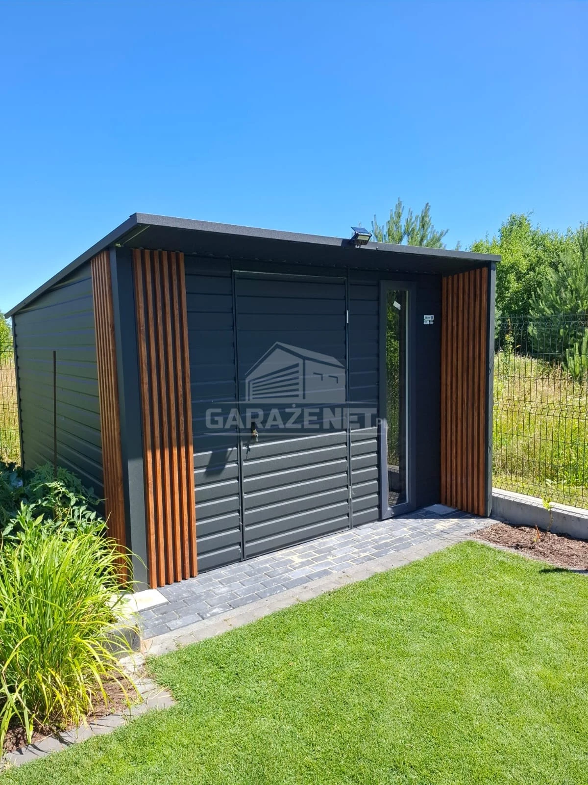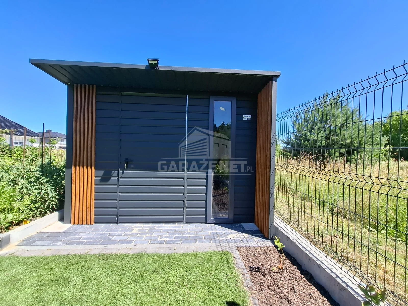 SCHOWEK – DOMEK OGRODOWY 3X3M – DRZWI – OKNO – DEKOR Z LAMELI – DACH SPAD W TYŁ TS1100