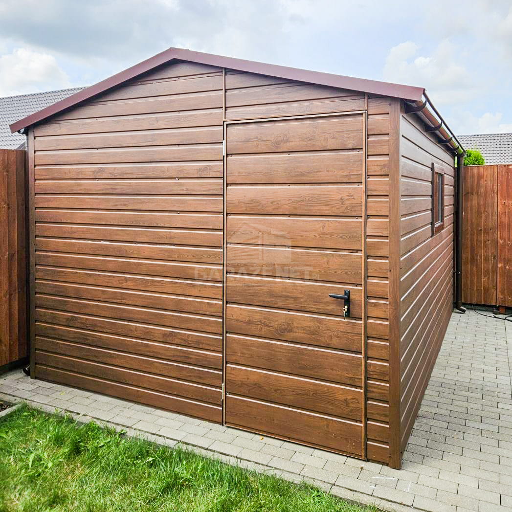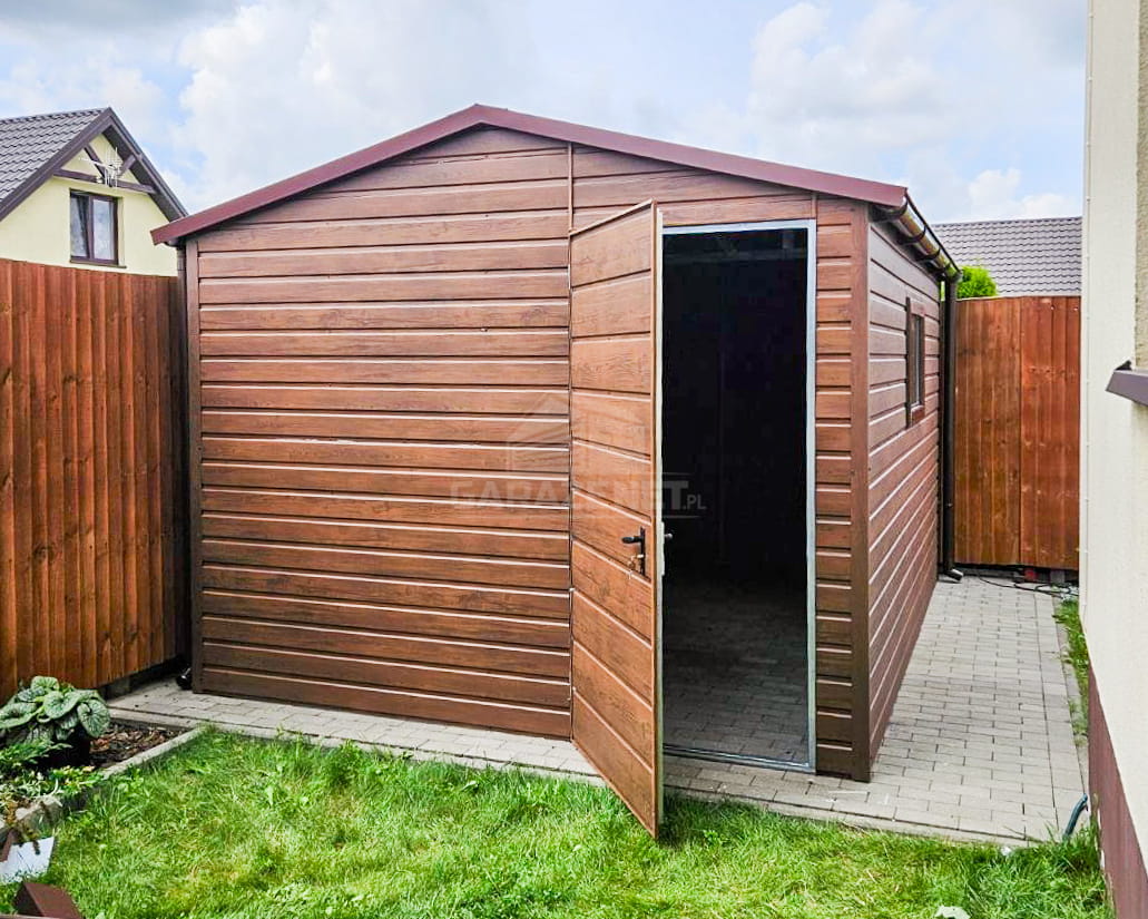 SCHOWEK - DOMEK OGRODOWY 3X4 M - DRZWI - OKNO - RYNNY - CIEMNY ORZECH - DREWNOPODOBNY - DACH DWUSPADOWY TS758