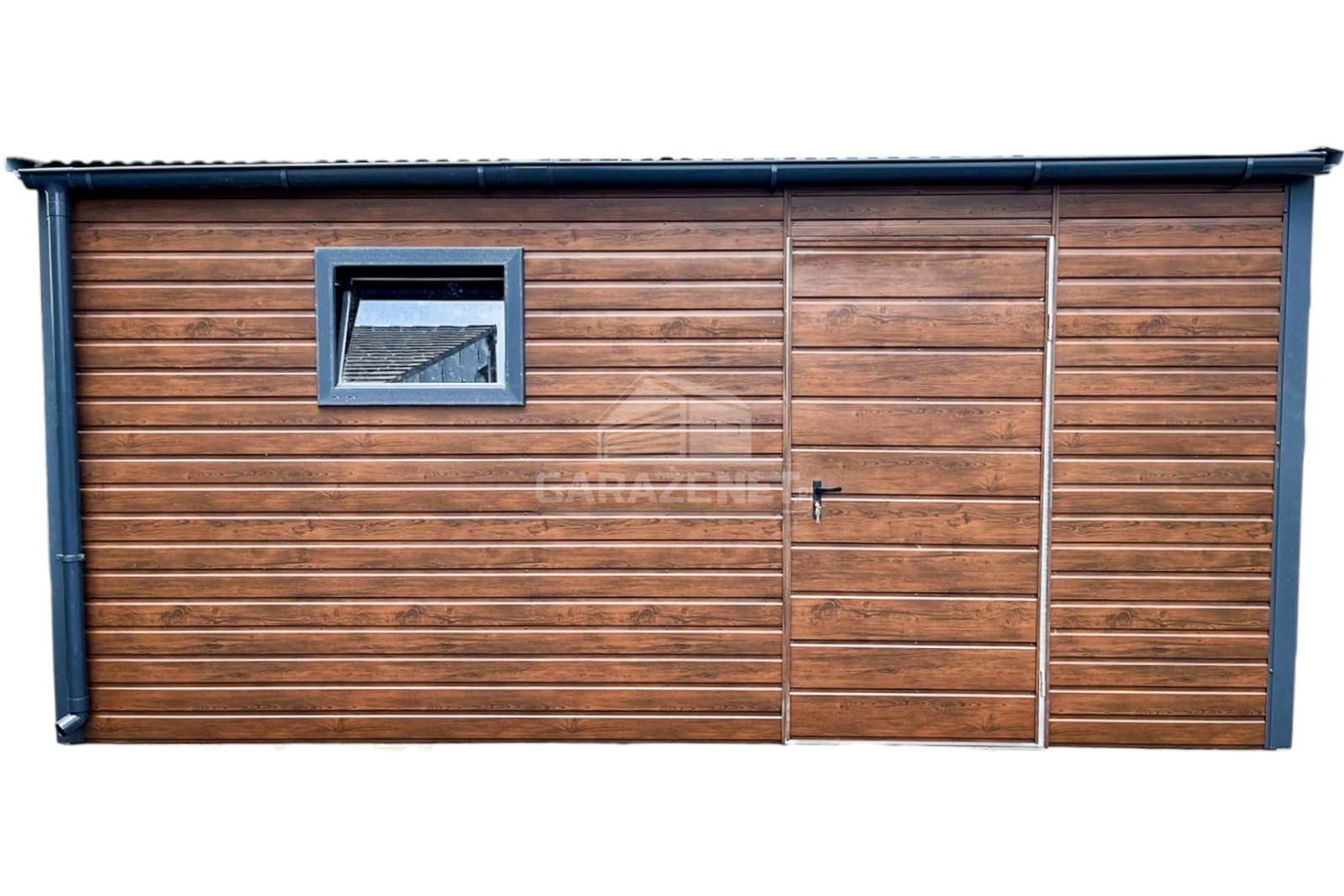 SCHOWEK - DOMEK OGRODOWY 4,5X2M DRZWI - OKNO - CIEMNY ORZECH - DREWNOPODOBNY - RYNNY - DACH SPAD W PRZÓD TS890