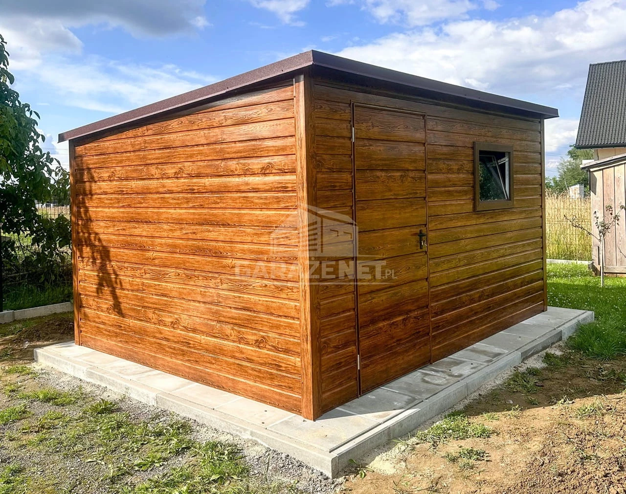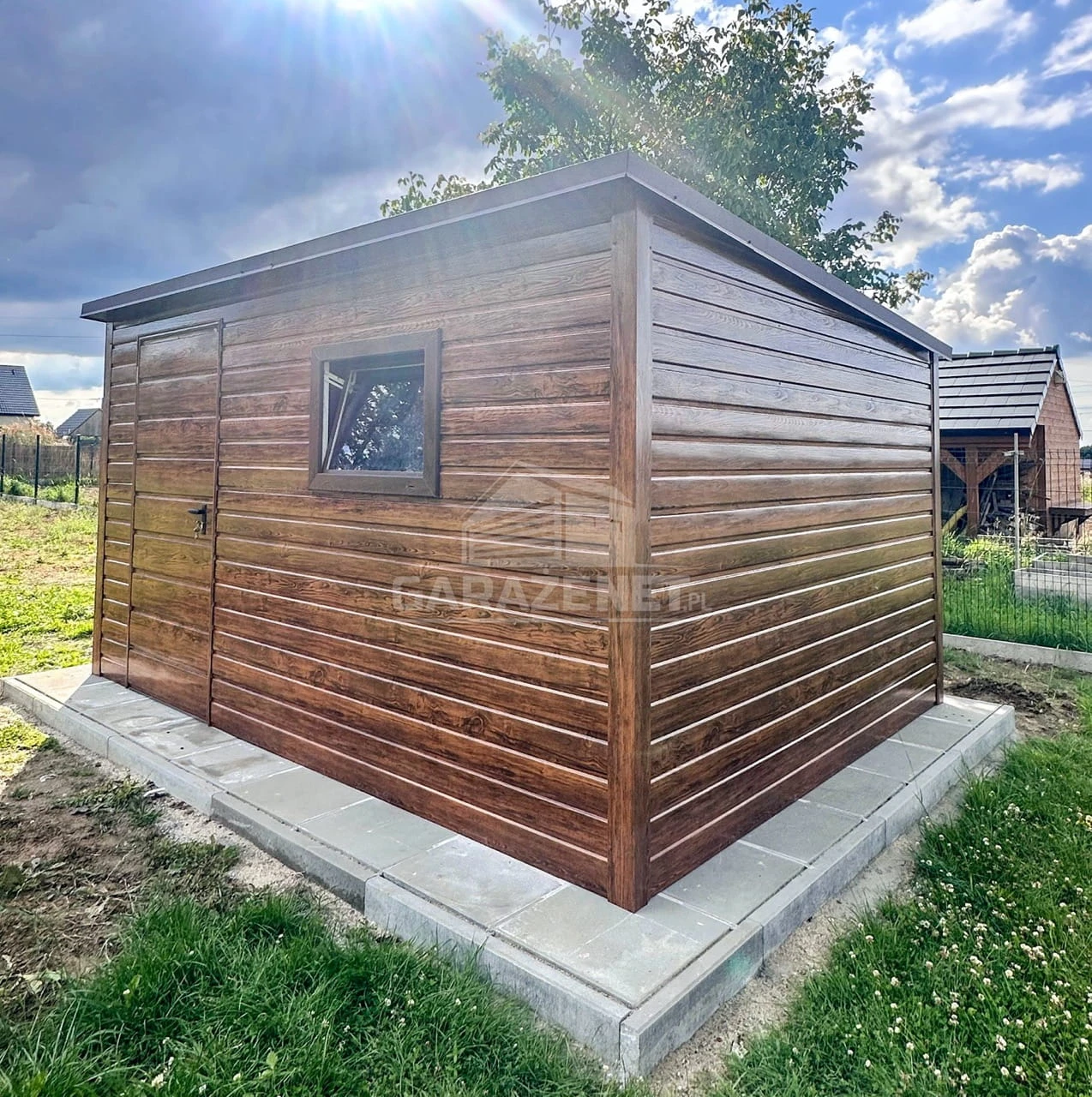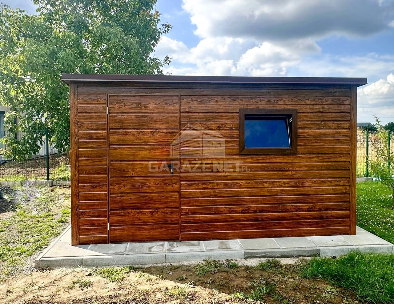 SCHOWEK – DOMEK OGRODOWY 4X2,5M – DRZWI – OKNO – JASNY ORZECH – DREWNOPODOBNY – DACH DWUSPADOWY TS1153