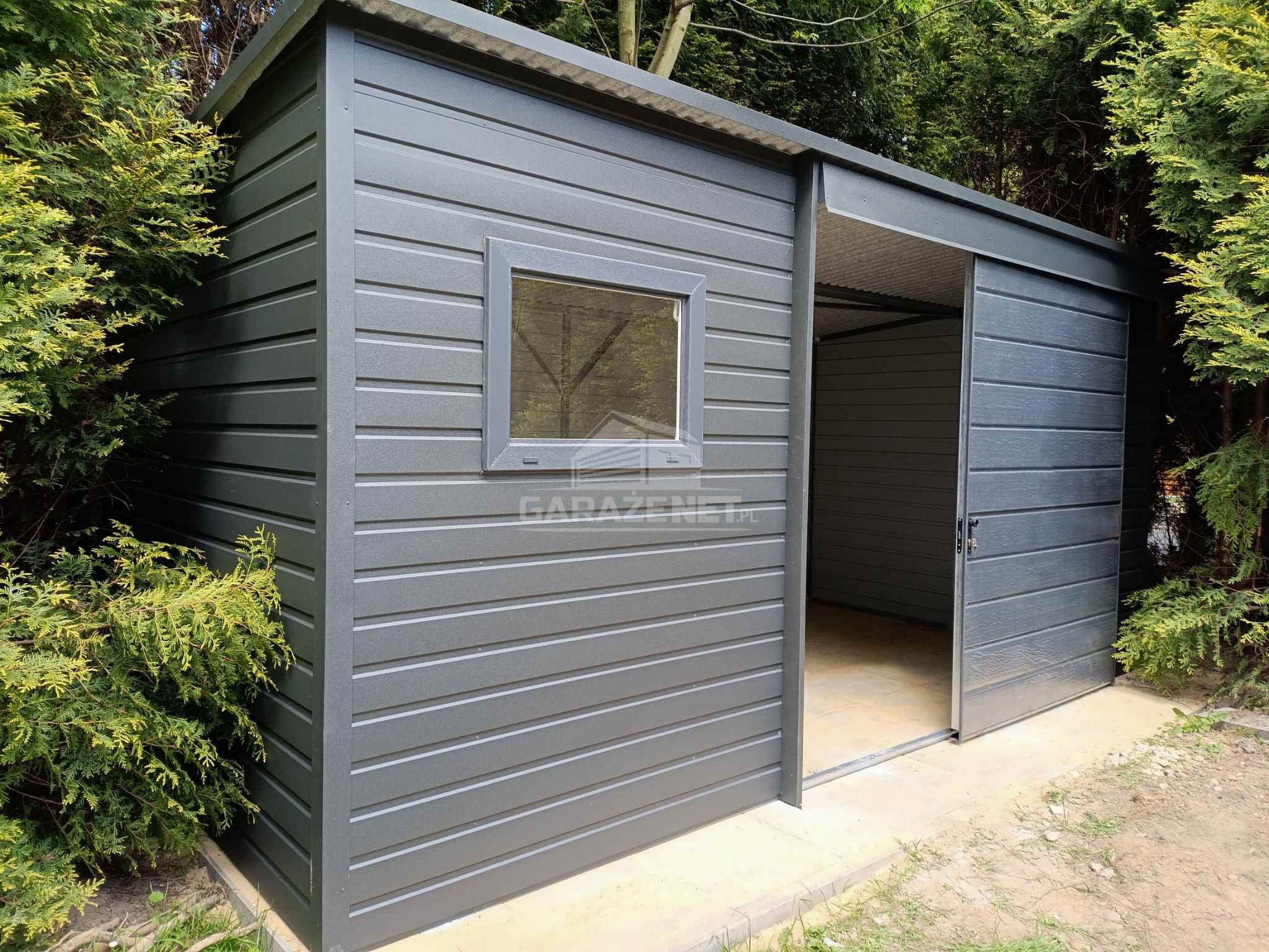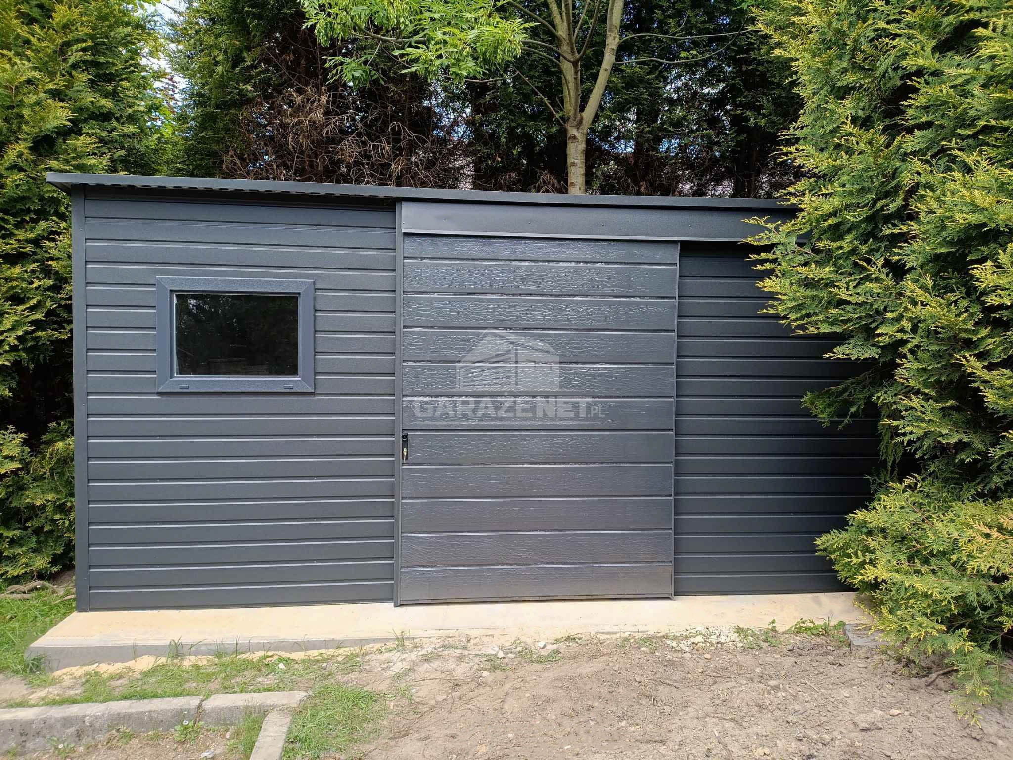 SCHOWEK – DOMEK OGRODOWY 4X2M – DRZWI PRZESUWNE – OKNO – ANTRACY – DACH SPAD W TYŁ TS1166