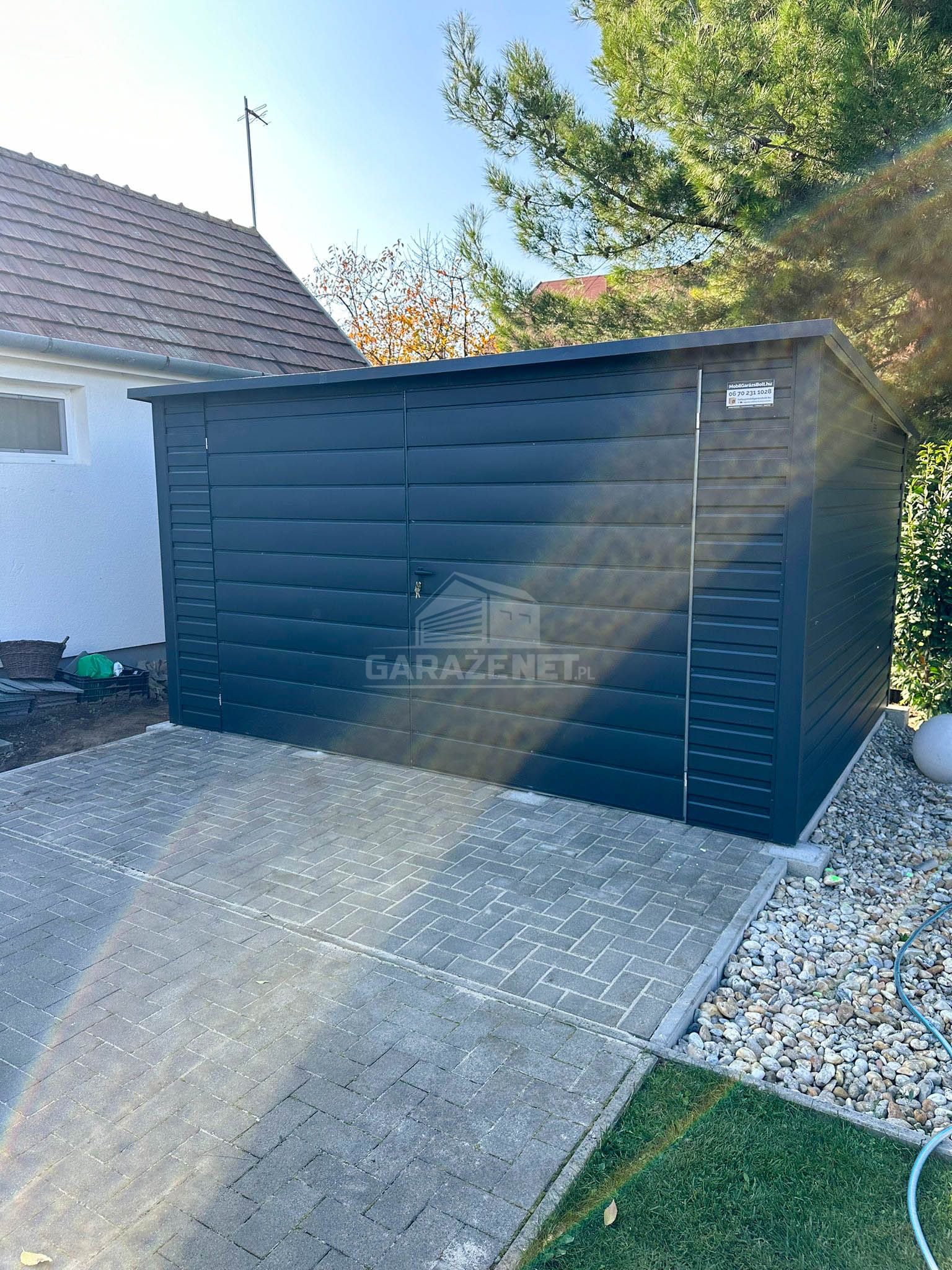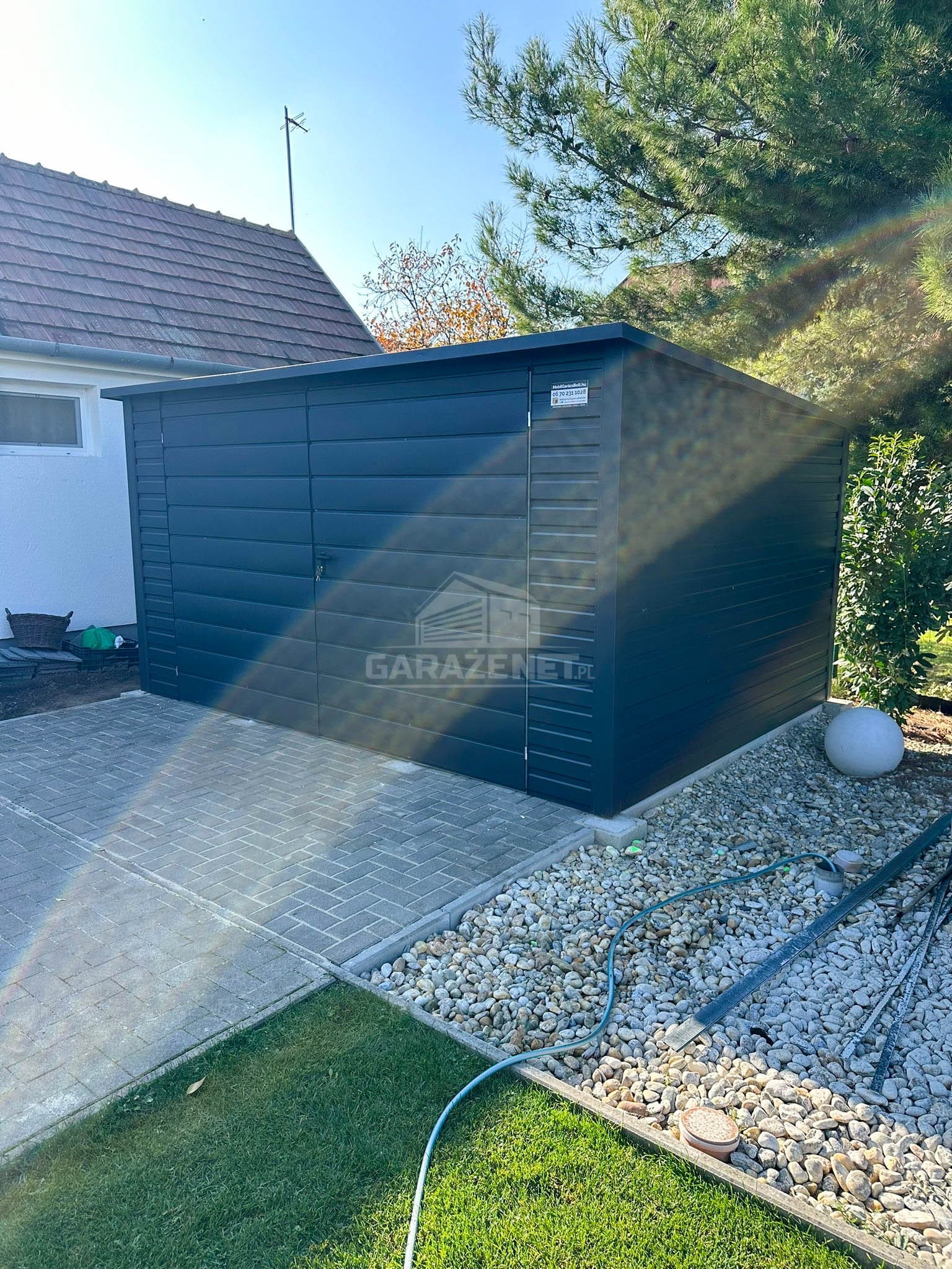 SCHOWEK - DOMEK OGRODOWY 4X3M - BRAMA DWUSKRZYDŁOWA - ANTRACYT - DACH SPAD W TYŁ TS868