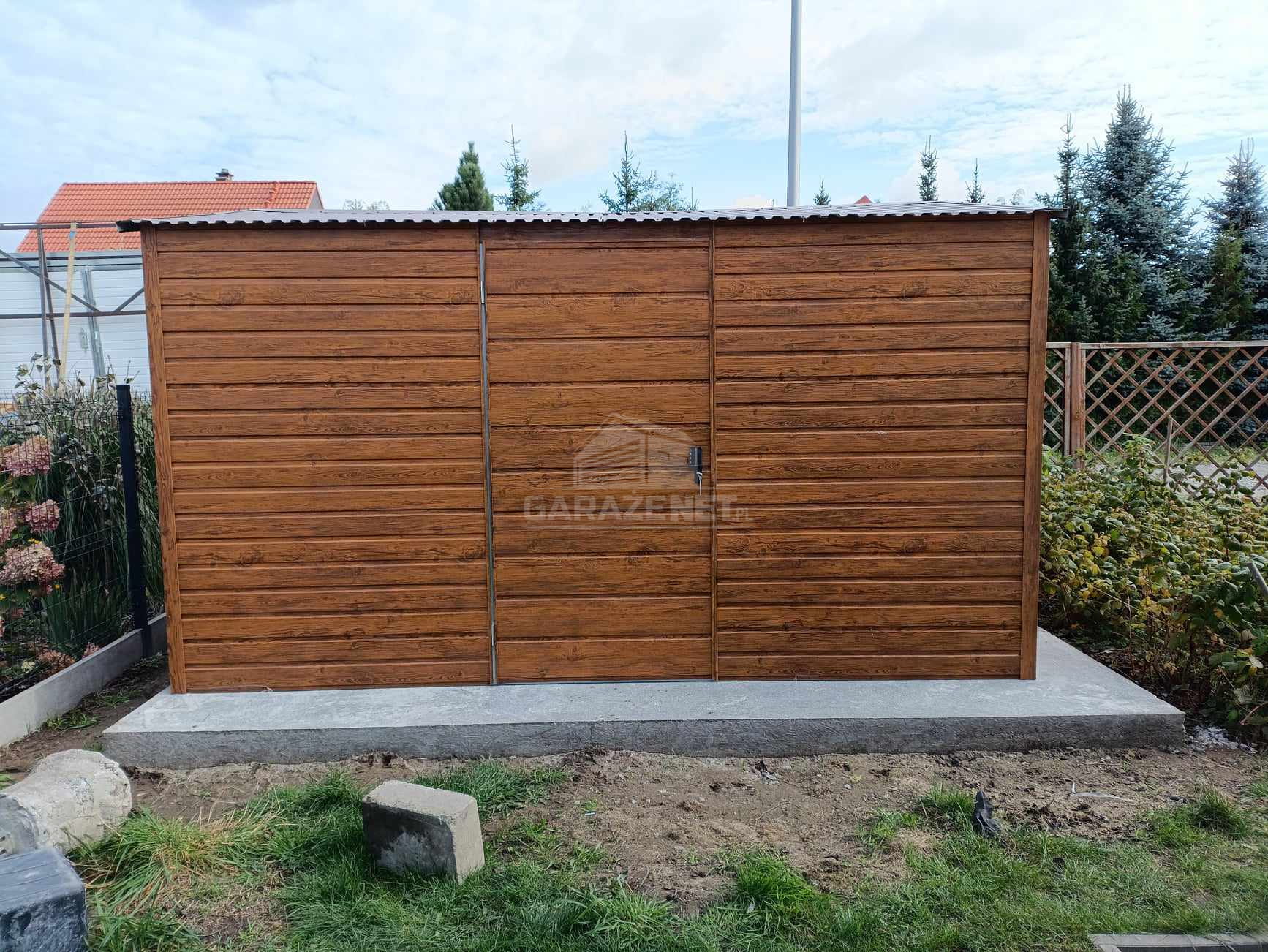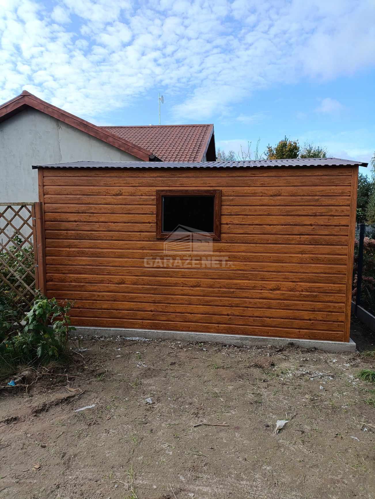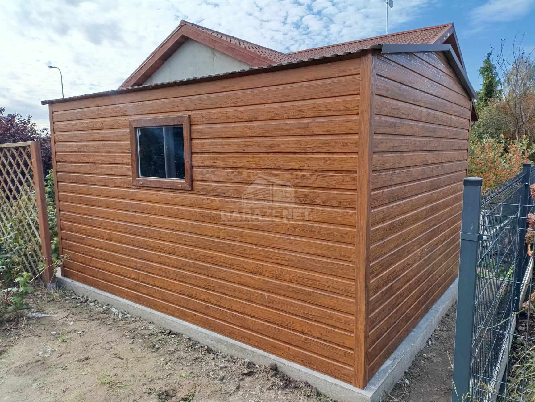 SCHOWEK - DOMEK OGRODOWY 4X3M DRZWI - OKNO - JASNY ORZECH - DREWNOPODOBNY - DACH SPAD W TYŁ TS762
