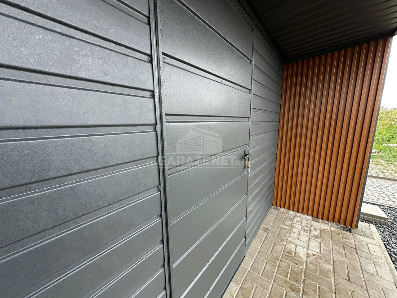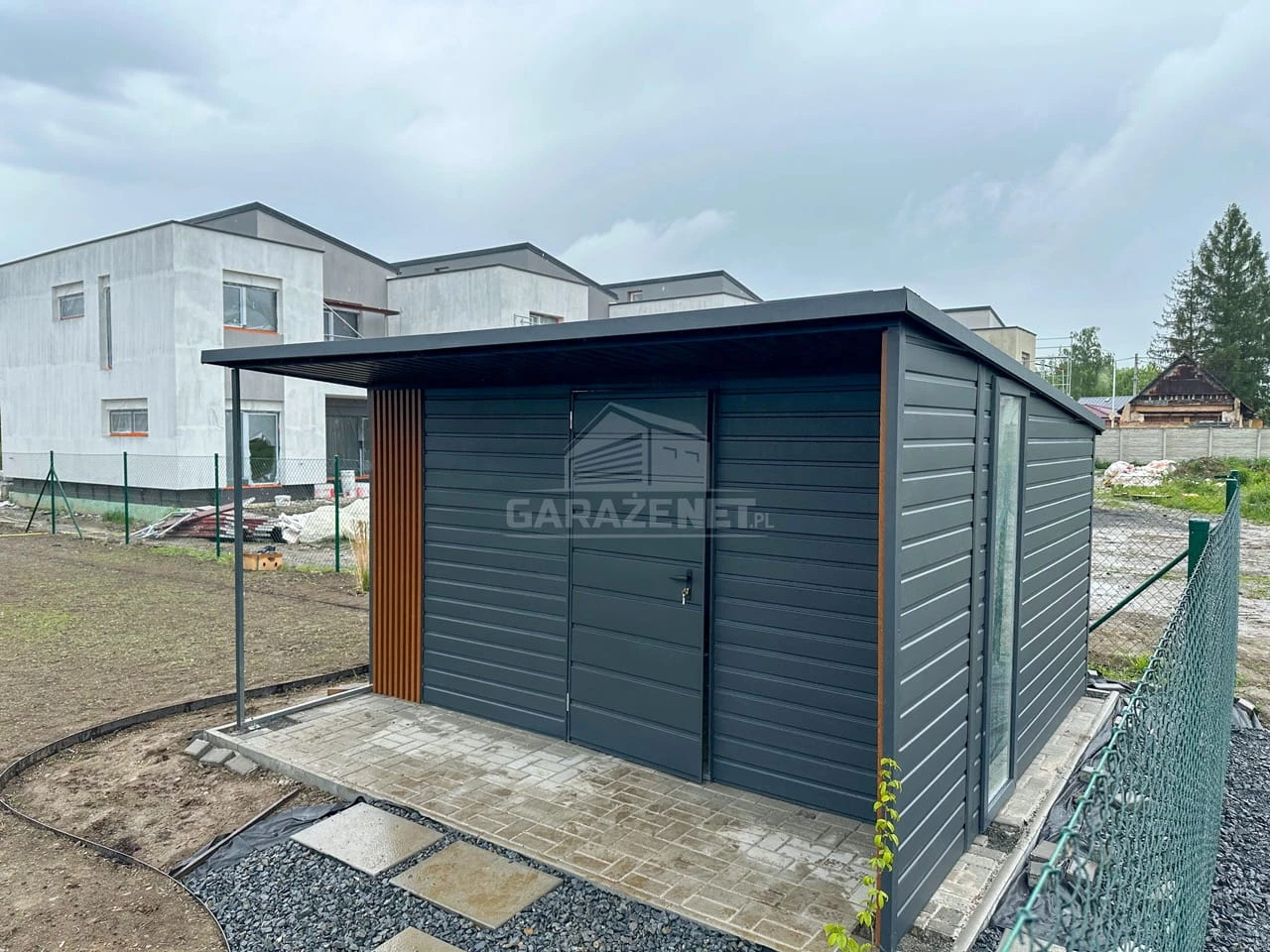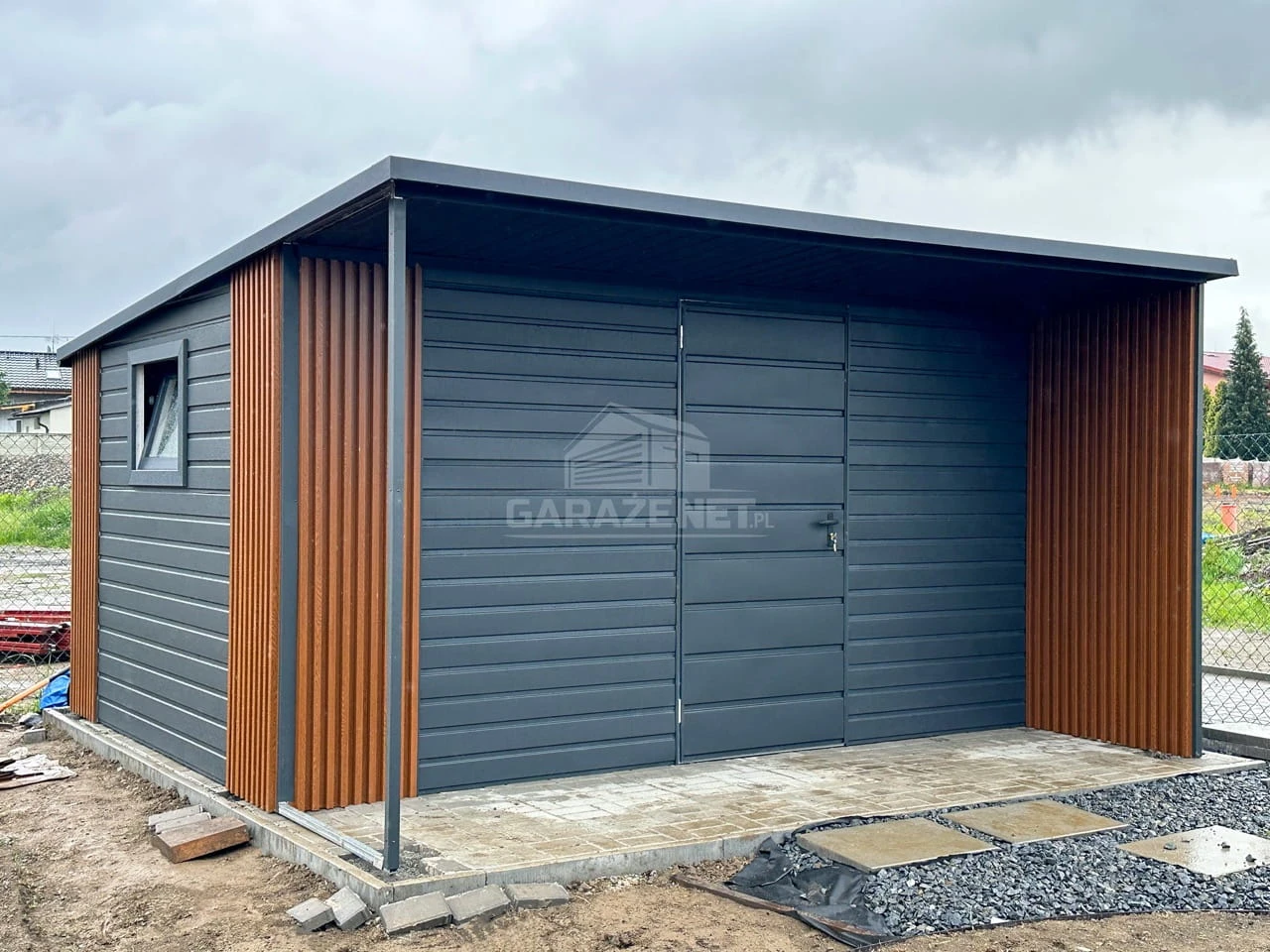 SCHOWEK – DOMEK OGRODOWY 4X3M – WIATA 4X1M – ANTRACYT – DACH SPAD W TYŁ – PODBITKA – ZABUDOWA LAMELAMI TS1158