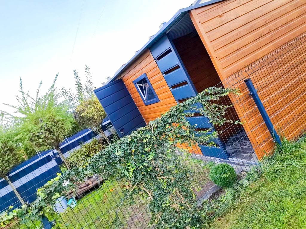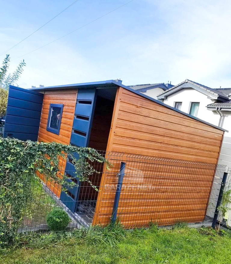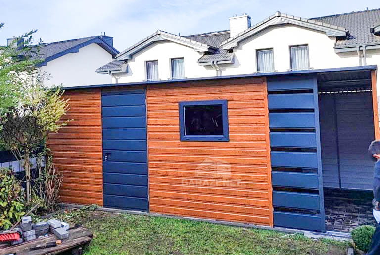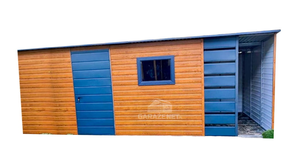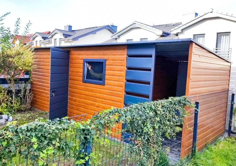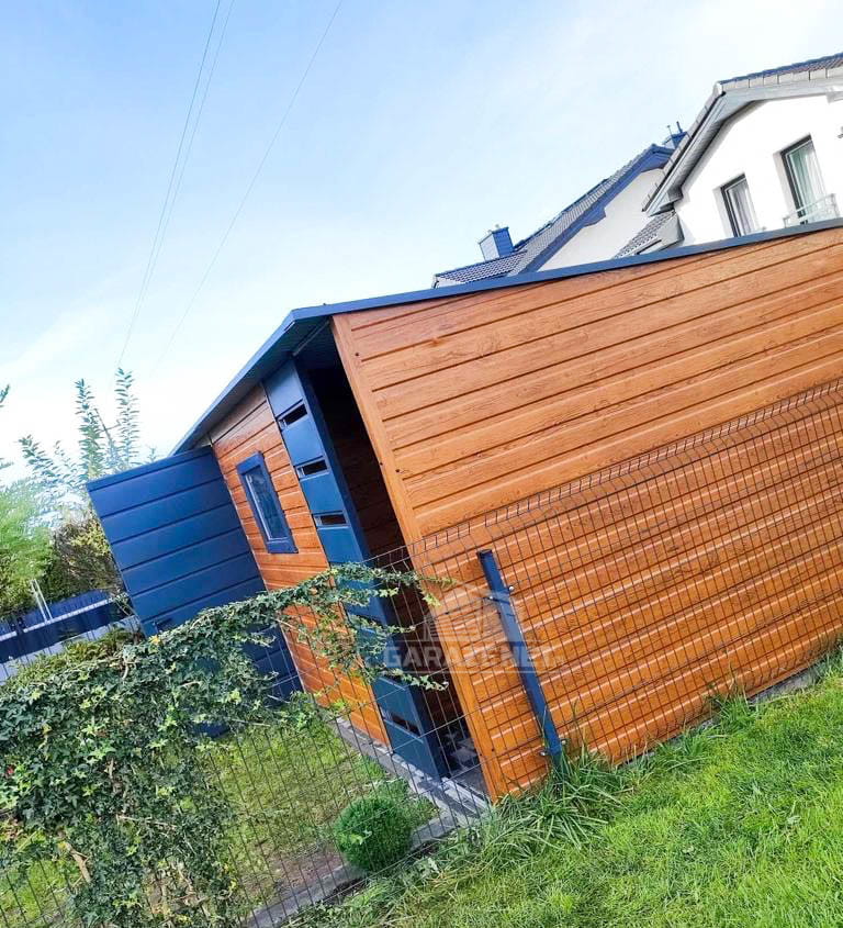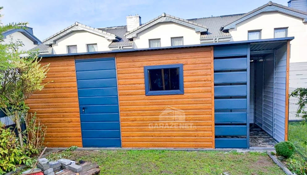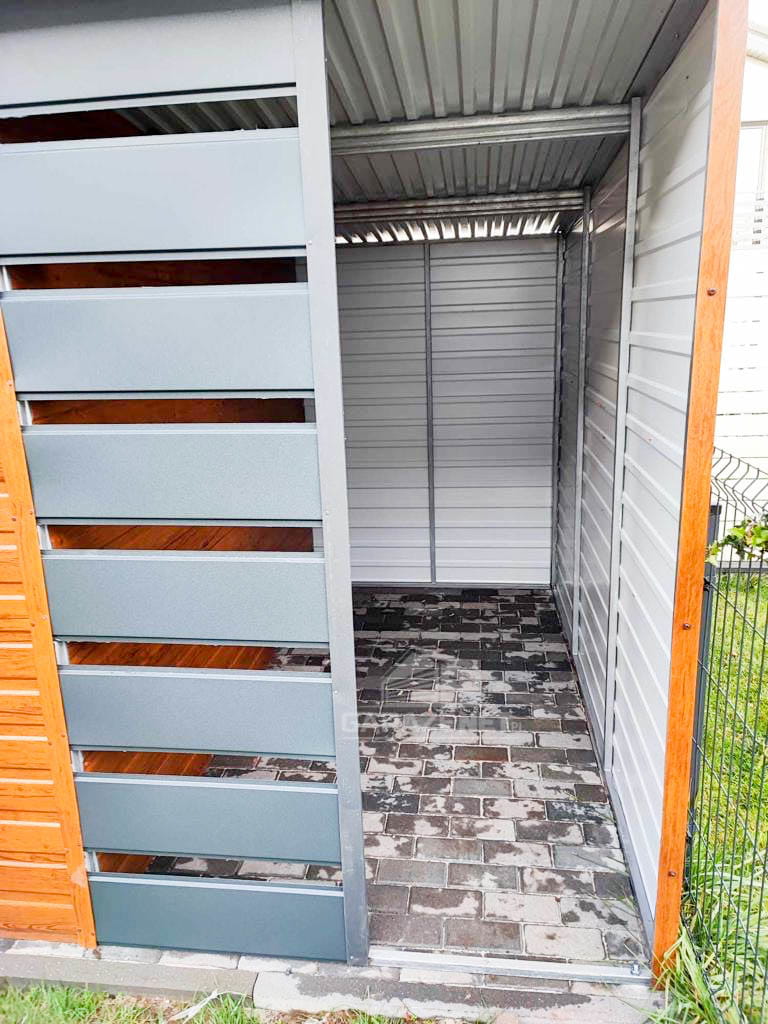 SCHOWEK - DOMEK OGRODOWY 5X3M + WIATA 1M SPAD W TYŁ JASNY ORZECH 5X3 GB336