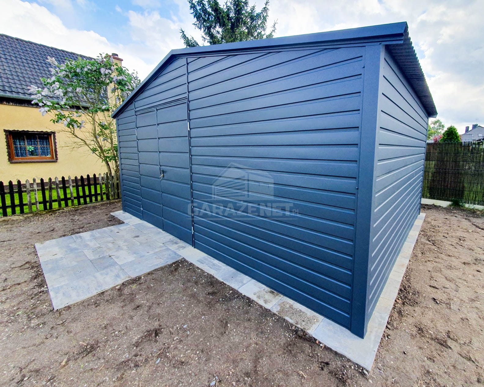 SCHOWEK - DOMEK OGRODOWY 5X4M - BRAMA DWUSKRZYDŁOWA - ANTRACYT - DACH DWUSPADOWY TS723