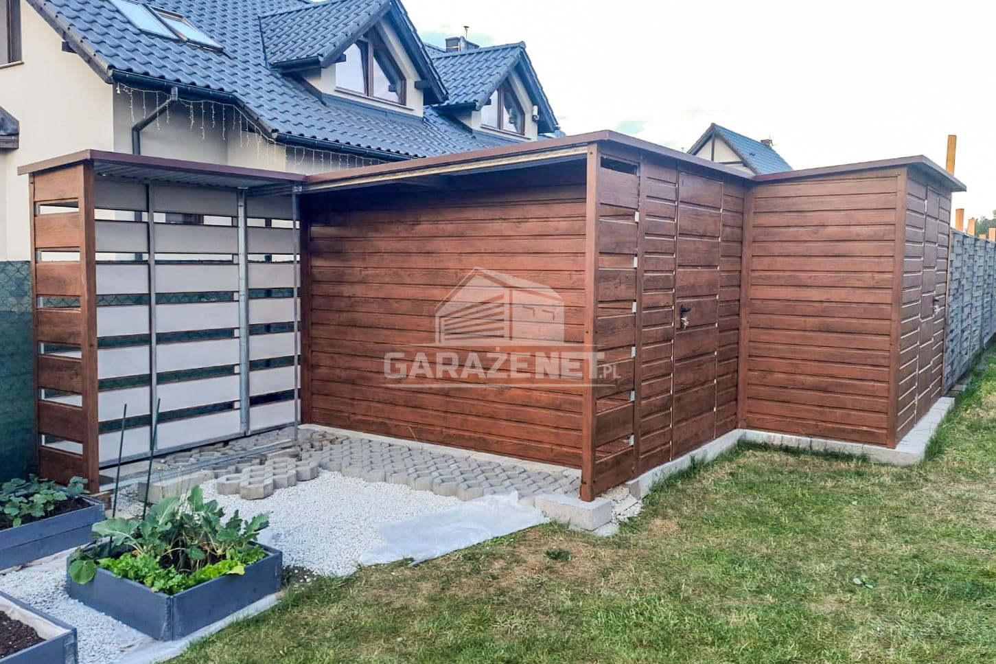 - Wiata 0,7x3 m zabudowana panelami Jasny Orzech
